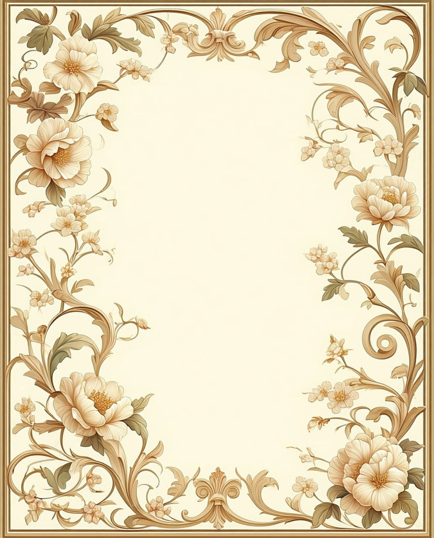 Artisan Inspired Mouse with Vintage Beige Garden Motif and Scroll Border(Beige)