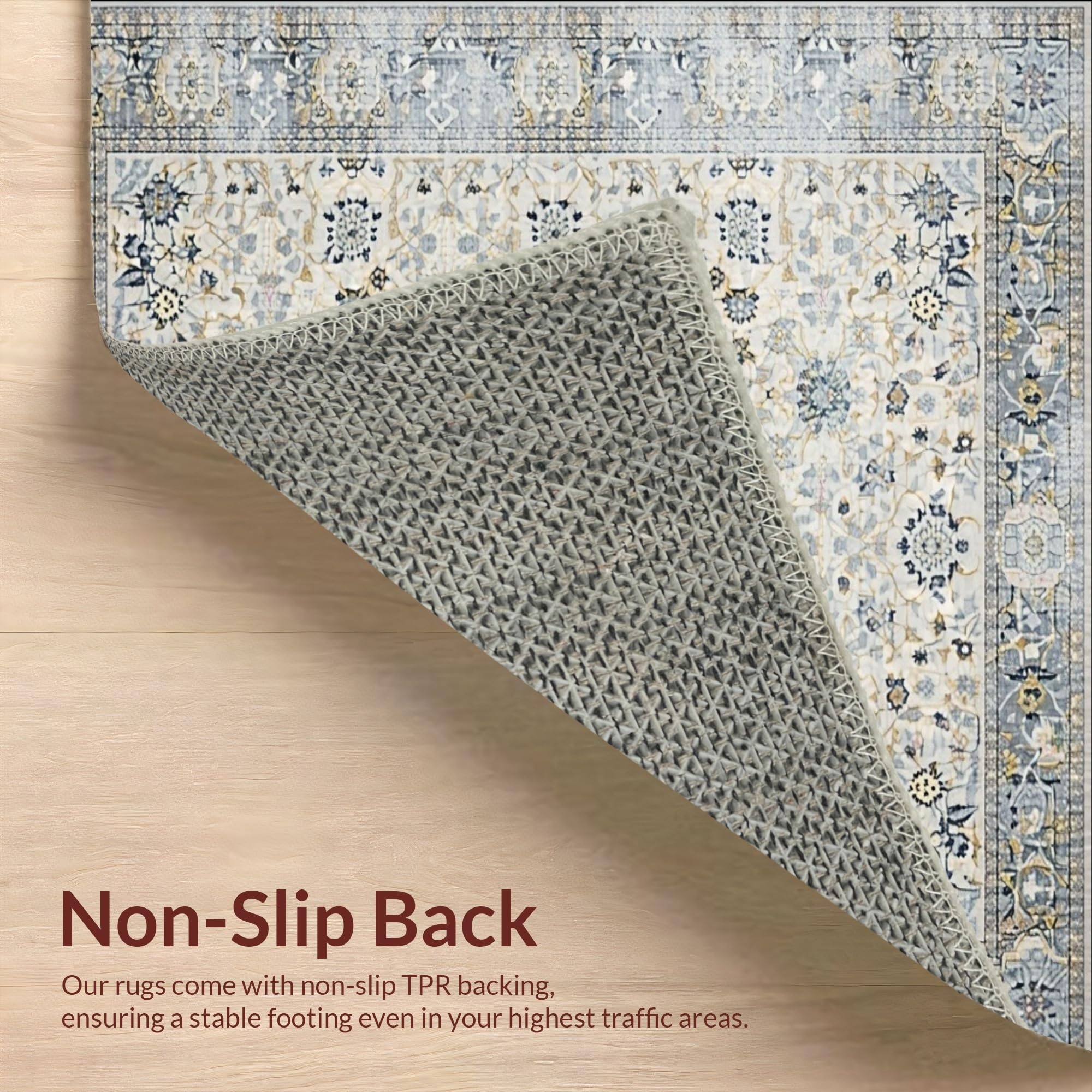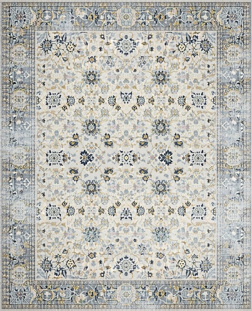 Ultra Soft Area Rug, Non Slip, Stain Resistant, Washable Area Rugs for Living Room, Bedroom, Artisan Mosaic Area with Timeworn Floral Geometry and Subtle Borders(Beige) Overview: