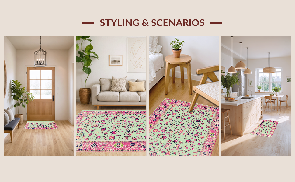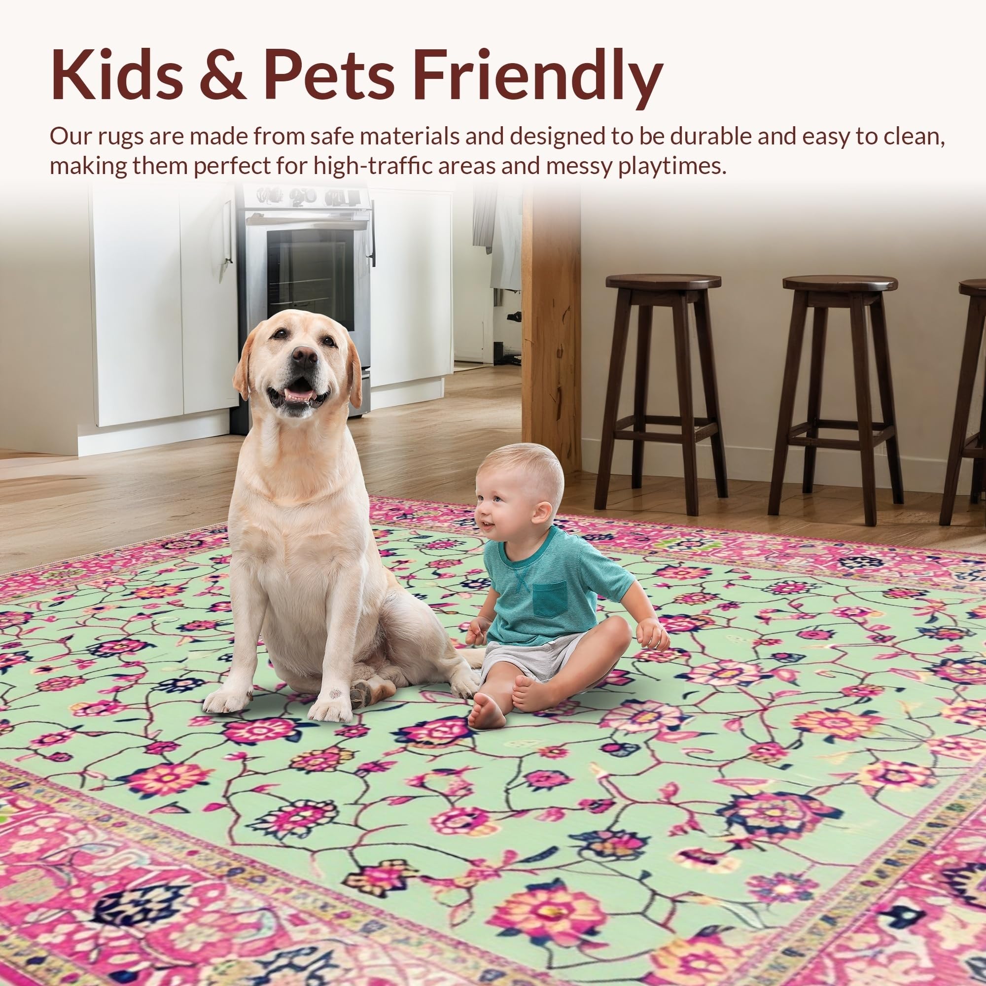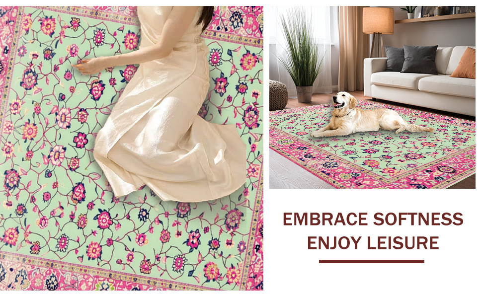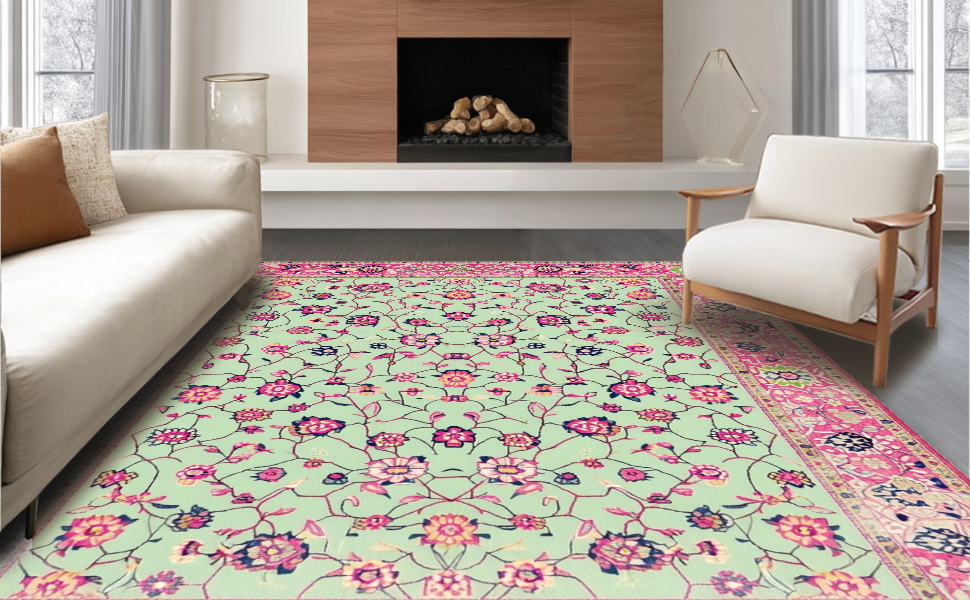 Ultra Soft Area Rug, Non Slip, Stain Resistant, Washable Area Rugs for Living Room, Bedroom, Artisan Pastel Floral Pattern(Ivory) Overview: