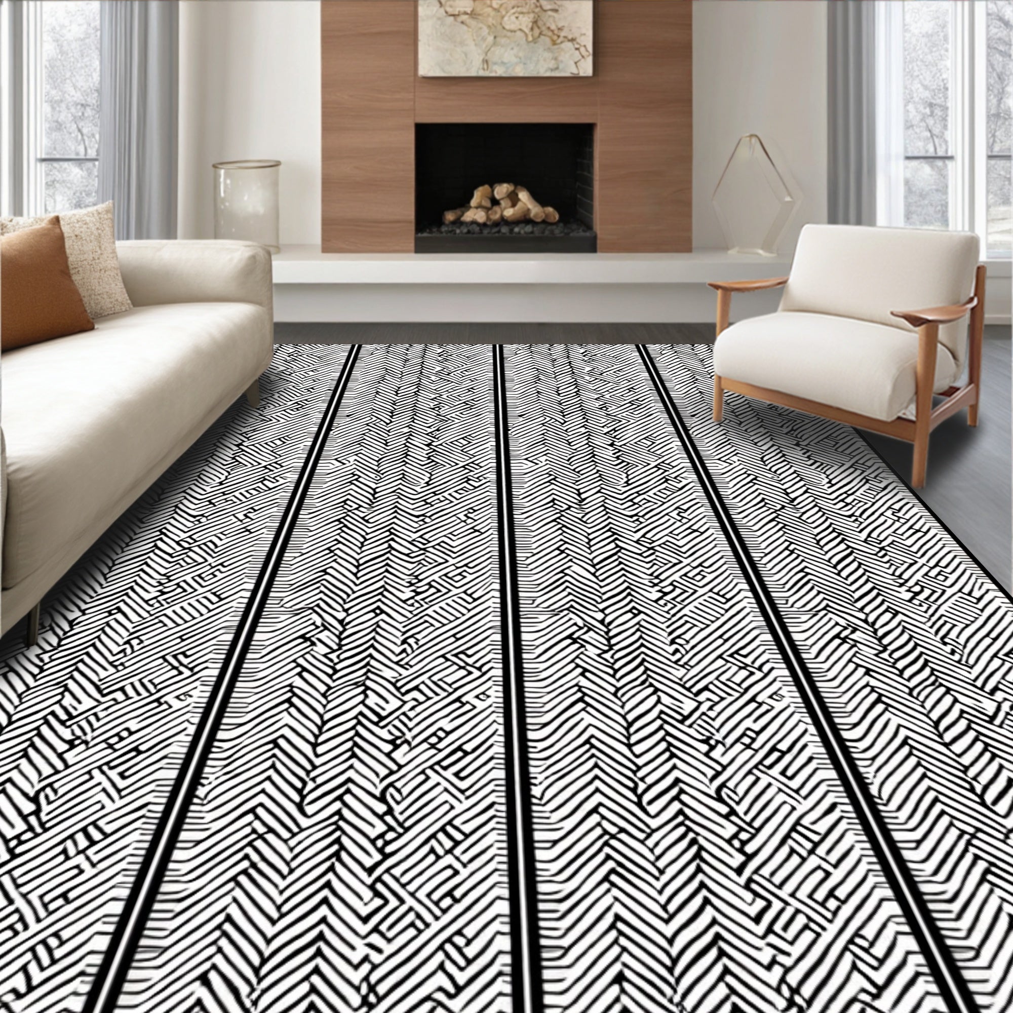 Flatwoven High Traffic Area Rug, Artisan Stripe Minimalist Monochrome Motif, Non Slip, Stain Resistant, Washable Area Rugs for Living Room, Bedroom (Black) Overview: