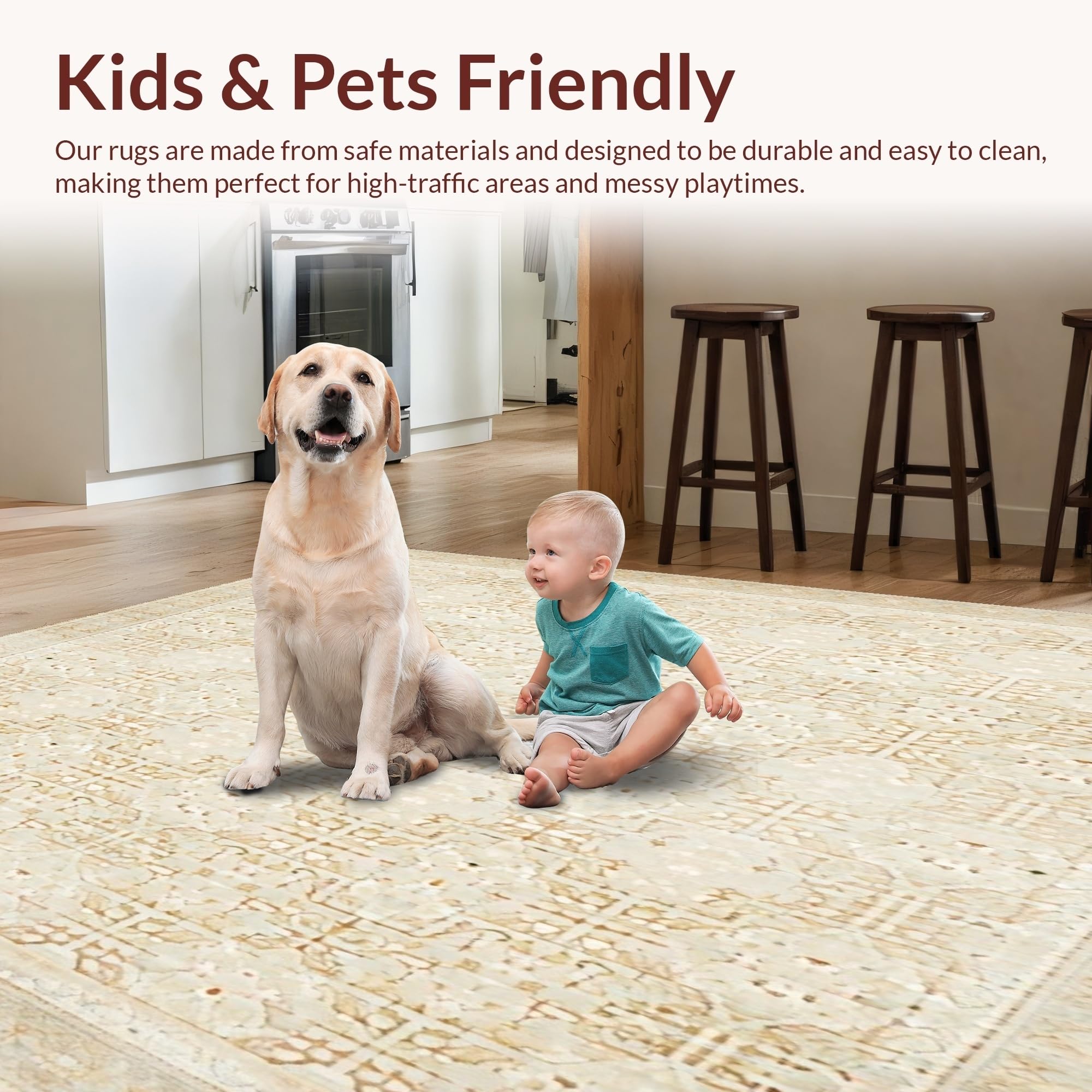Ultra Soft Area Rug, Non Slip, Stain Resistant, Washable Area Rugs for Living Room, Bedroom, Artisan Trellis Area with Faded Latticework and Vintage Inspired Detailing(Beige) Overview: