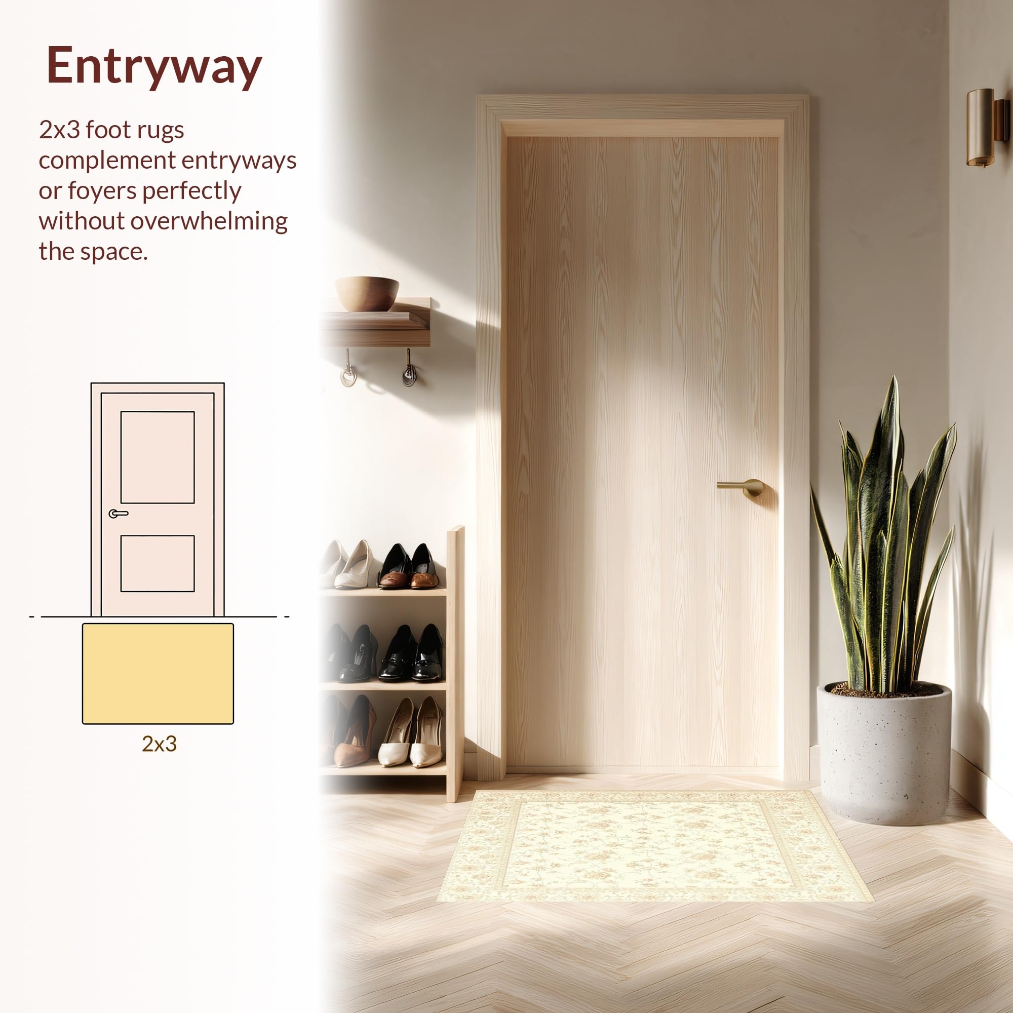 Ultra Soft Area Rug, Non Slip, Stain Resistant, Washable Area Rugs for Living Room, Bedroom, Artisanal Beige Bloom Area Harmonious Floral Scroll(Beige) Overview: