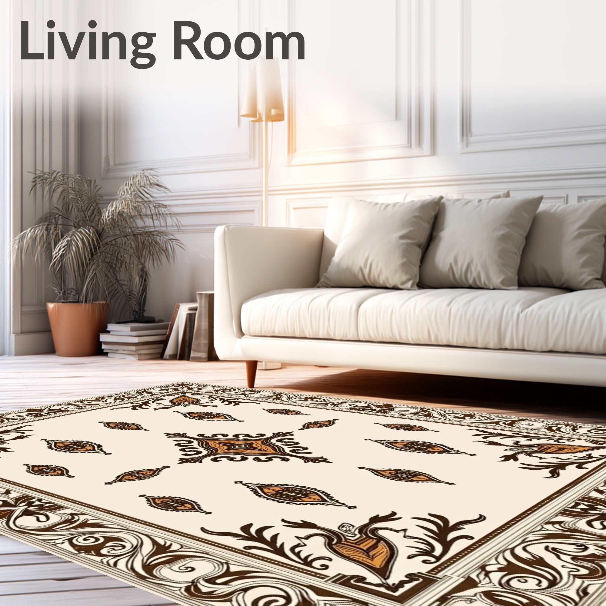 Ultra Soft Area Rug, Non Slip, Stain Resistant, Washable Area Rugs for Living Room, Bedroom, Artisanal Paisley Fade Proof Slip Resistant Compact Adornment(Ivory) Overview: