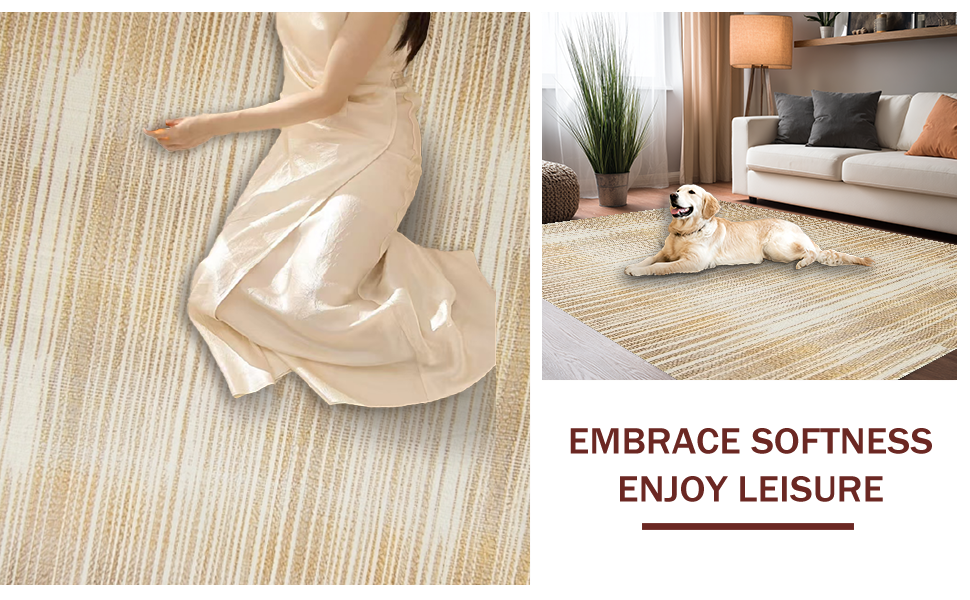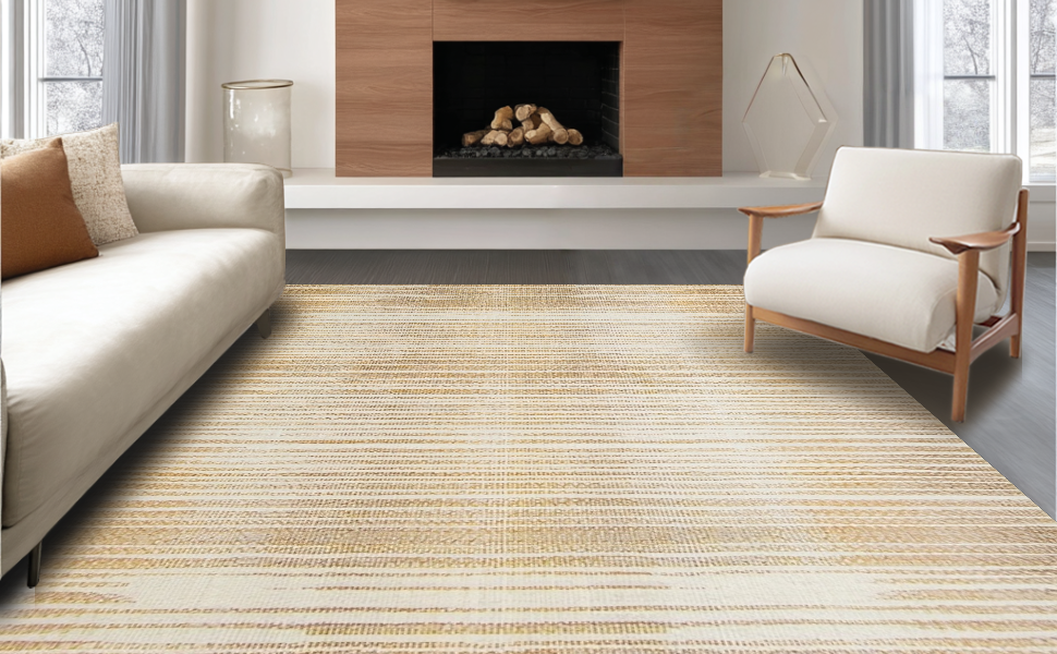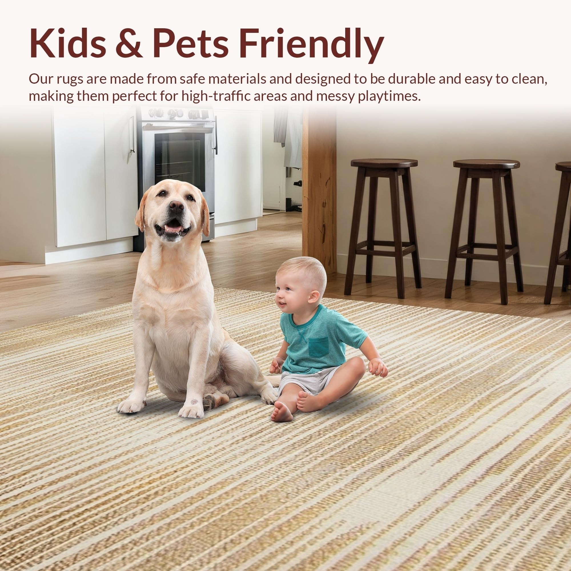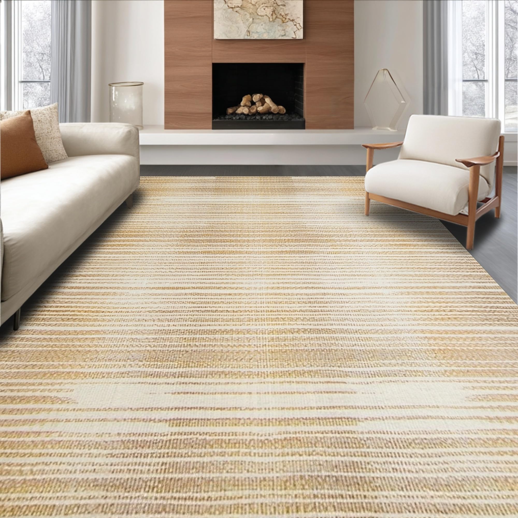 Ultra Soft Area Rug, Non Slip, Stain Resistant, Washable Area Rugs for Living Room, Bedroom, Artisanal Textured Linear Motif(Beige) Overview: