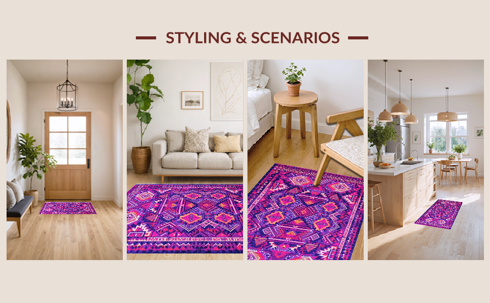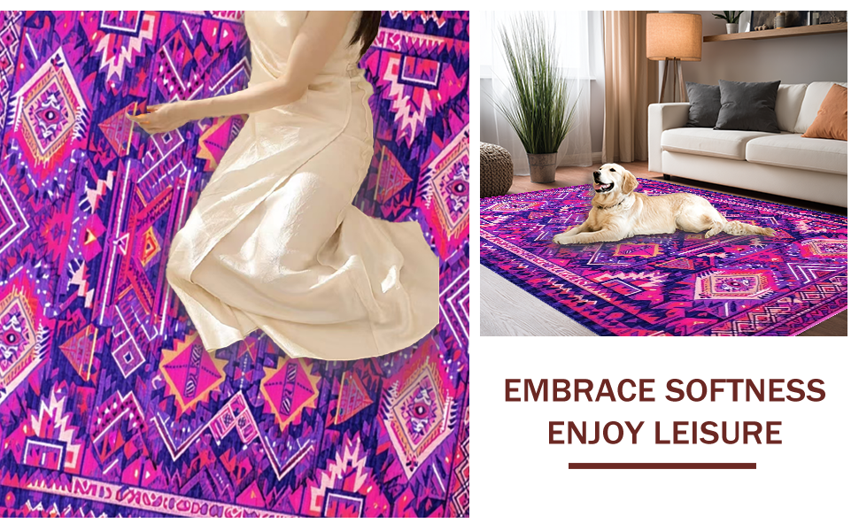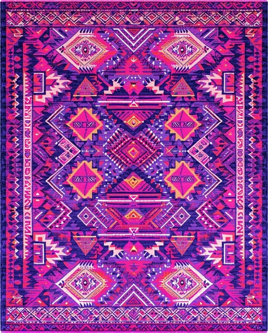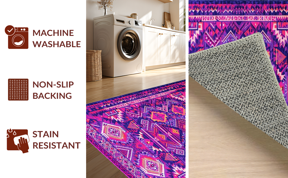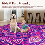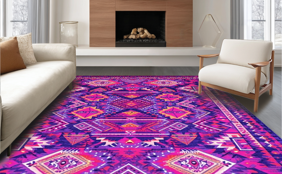 Ultra Soft Area Rug, Non Slip, Stain Resistant, Washable Area Rugs for Living Room, Bedroom, Artistic Aztec Color Burst(Pink) Overview: