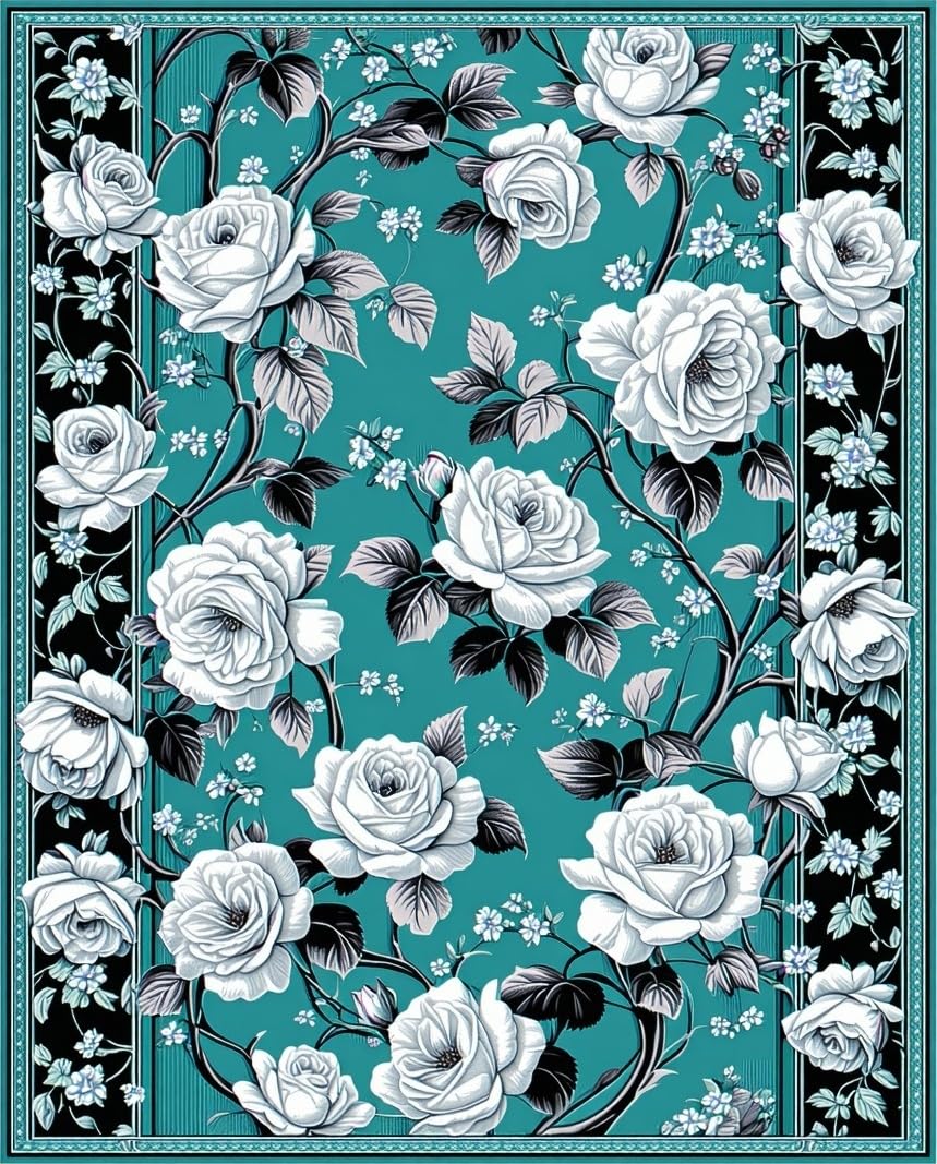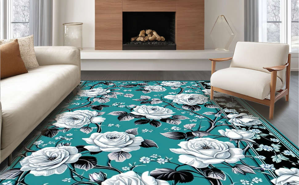 Ultra Soft Area Rug, Non Slip, Stain Resistant, Washable Area Rugs for Living Room, Bedroom, Artistic Black and Teal Flourish(Green) Overview: