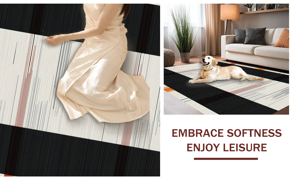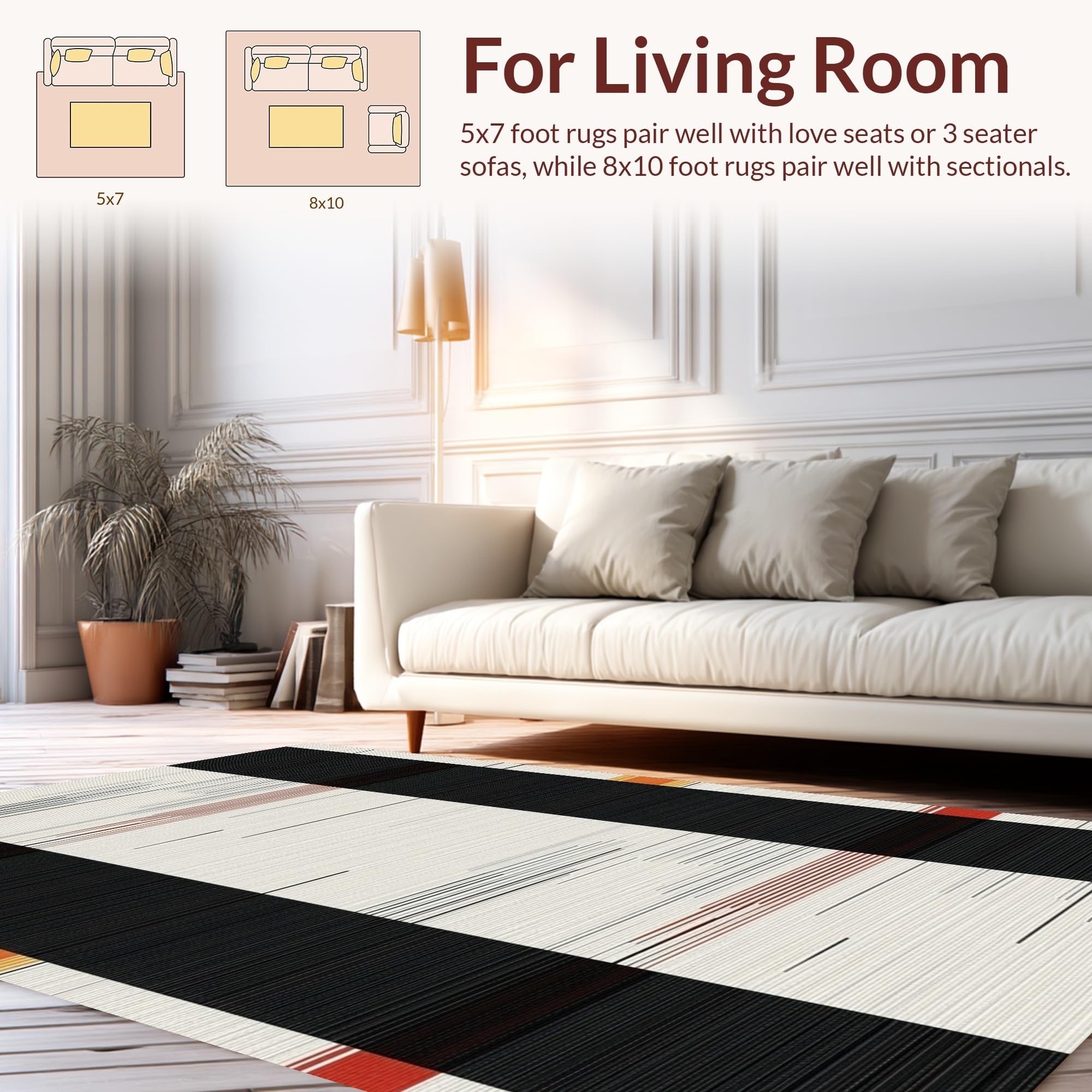 Ultra Soft Area Rug, Non Slip, Stain Resistant, Washable Area Rugs for Living Room, Bedroom, Artistic Black and White Graphic Style(Gray) Overview: