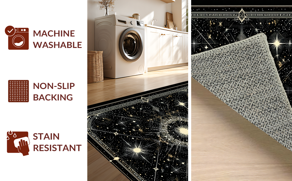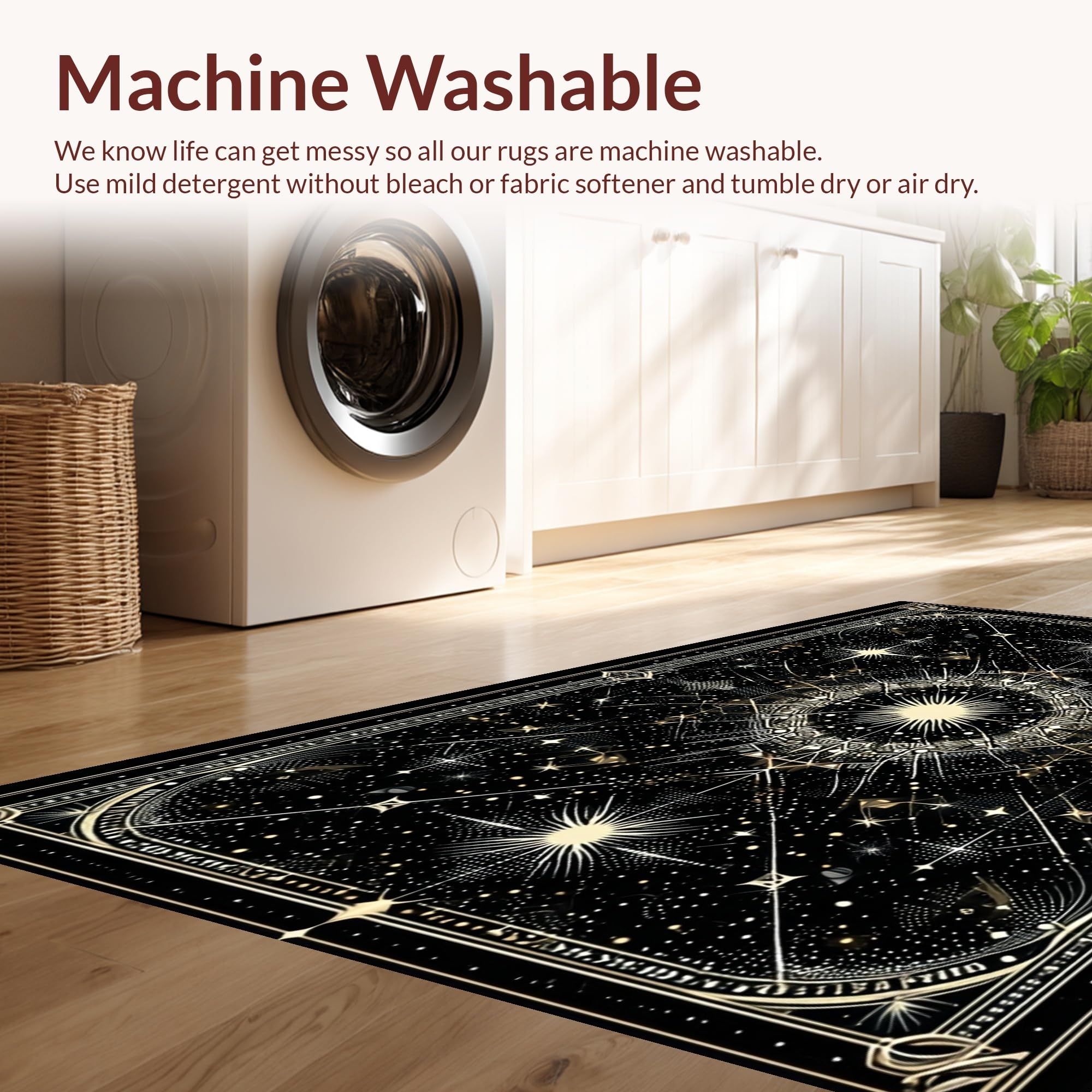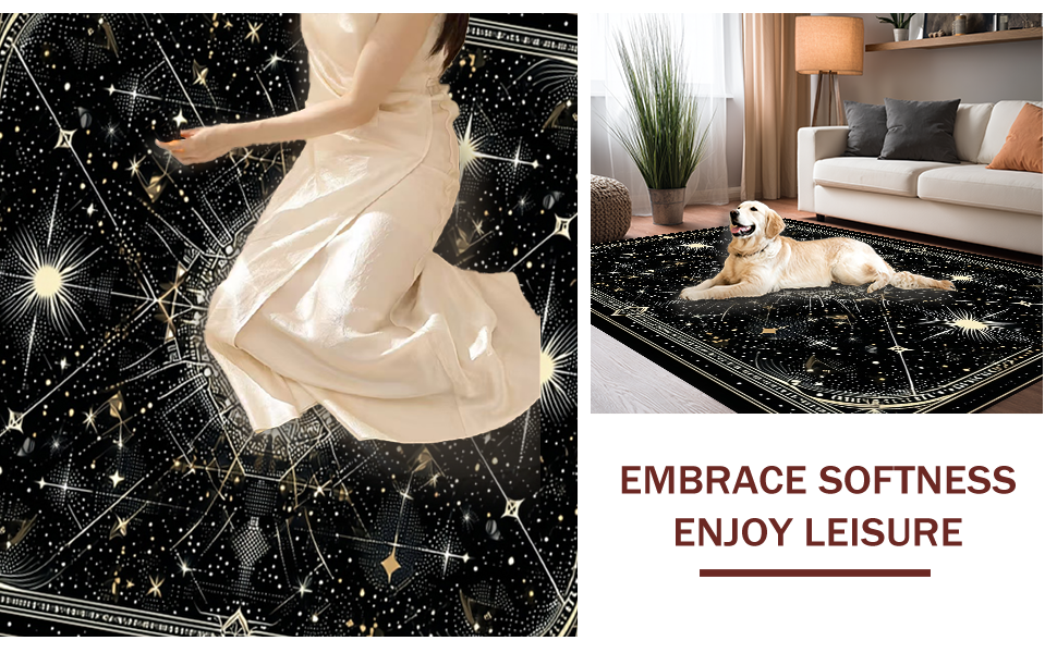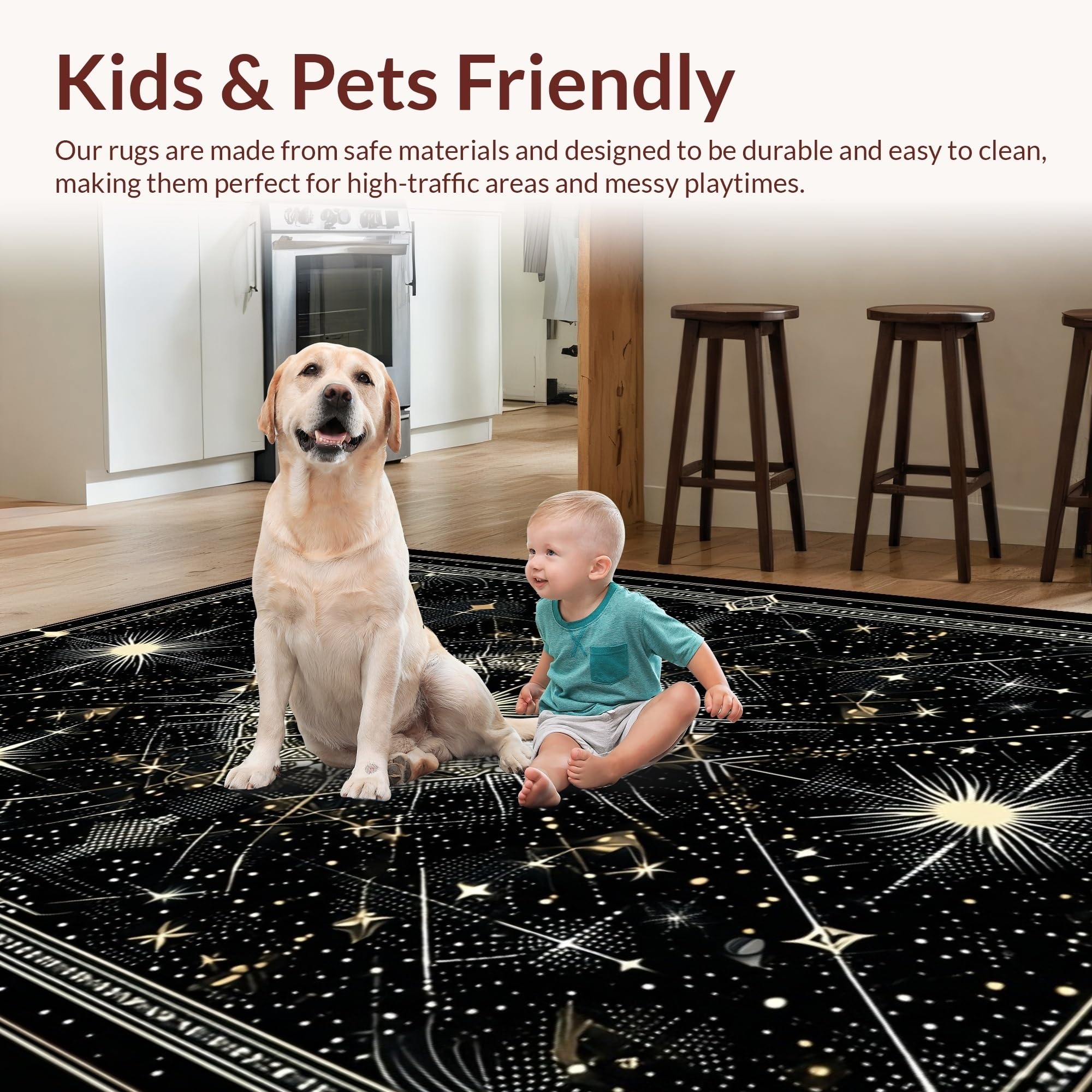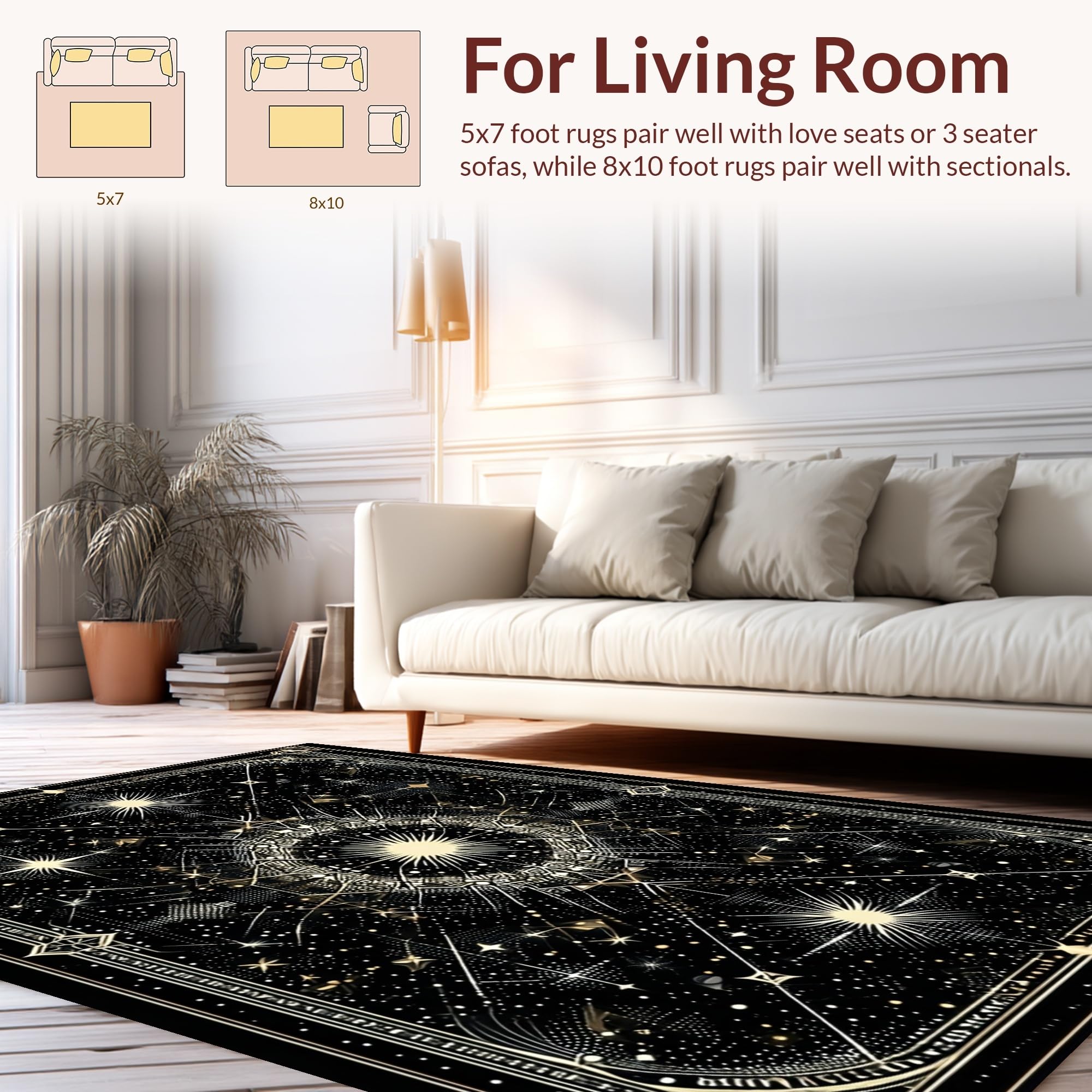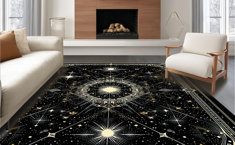 Ultra Soft Area Rug, Non Slip, Stain Resistant, Washable Area Rugs for Living Room, Bedroom, Artistic Celestial Lattice Composition(Black) Overview: