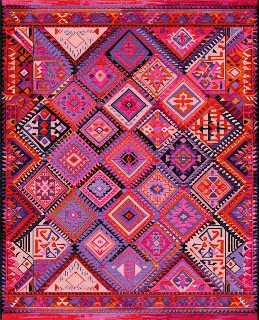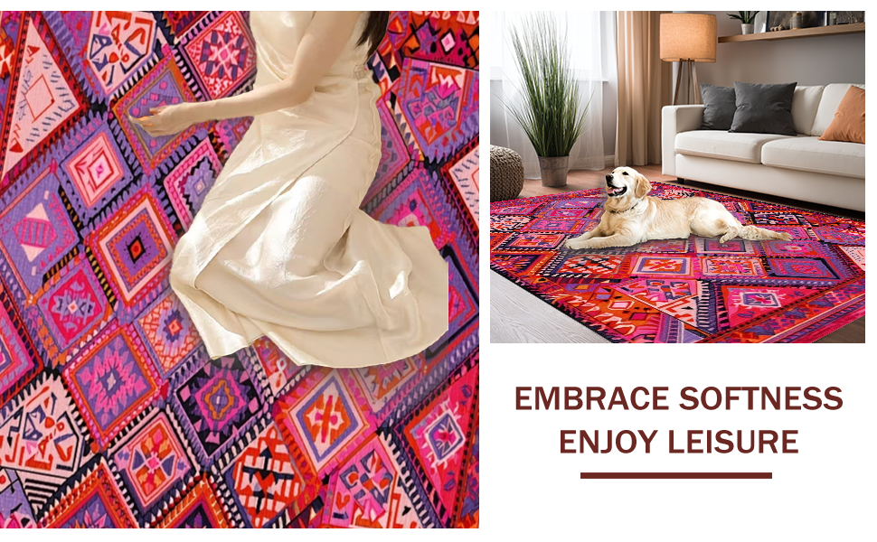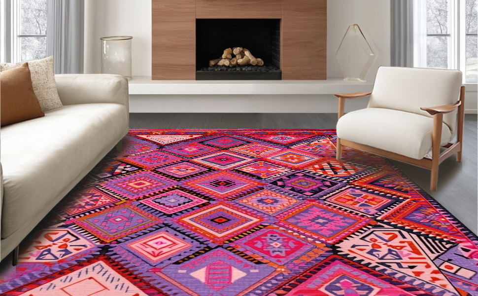 Ultra Soft Area Rug, Non Slip, Stain Resistant, Washable Area Rugs for Living Room, Bedroom, Artistic Color Splash Geometric Design(Pink) Overview: