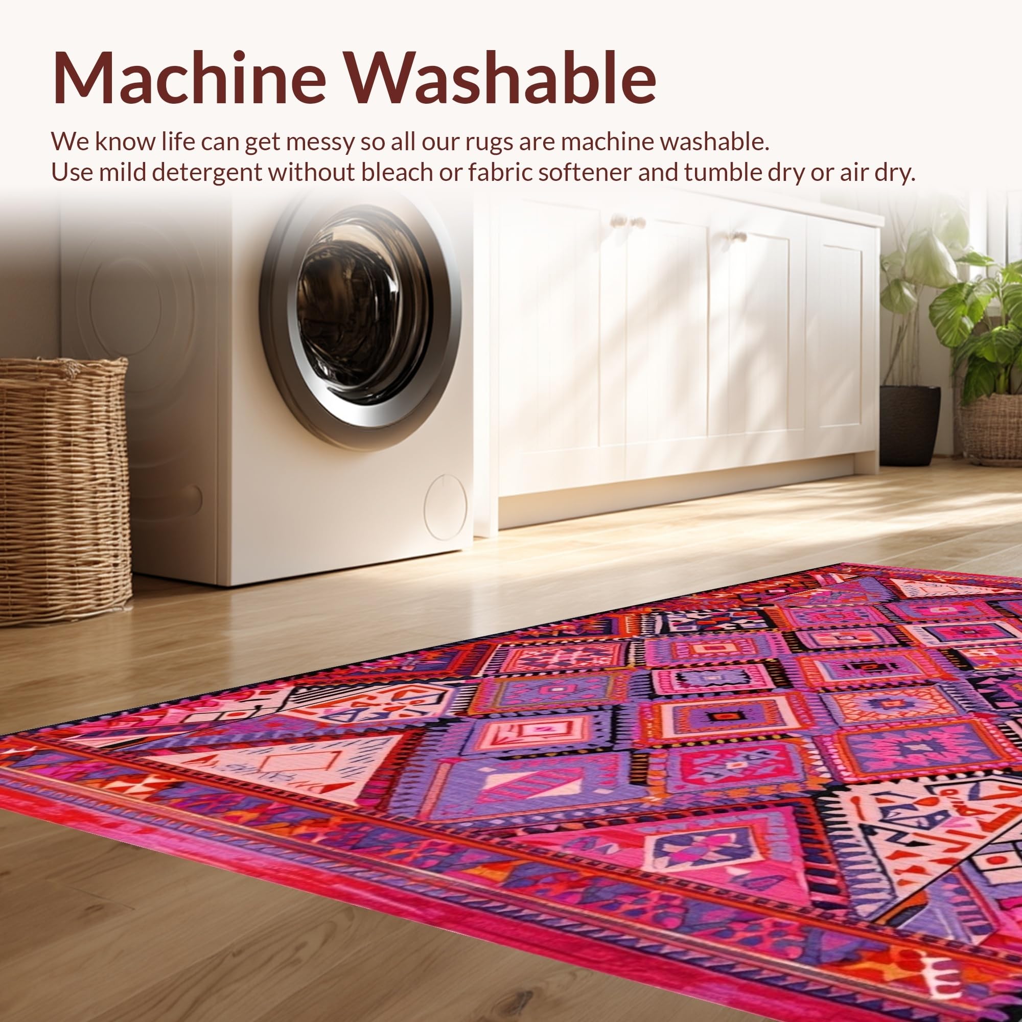 - Machine Washable: Our rugs can be easily thrown in the wash machine.