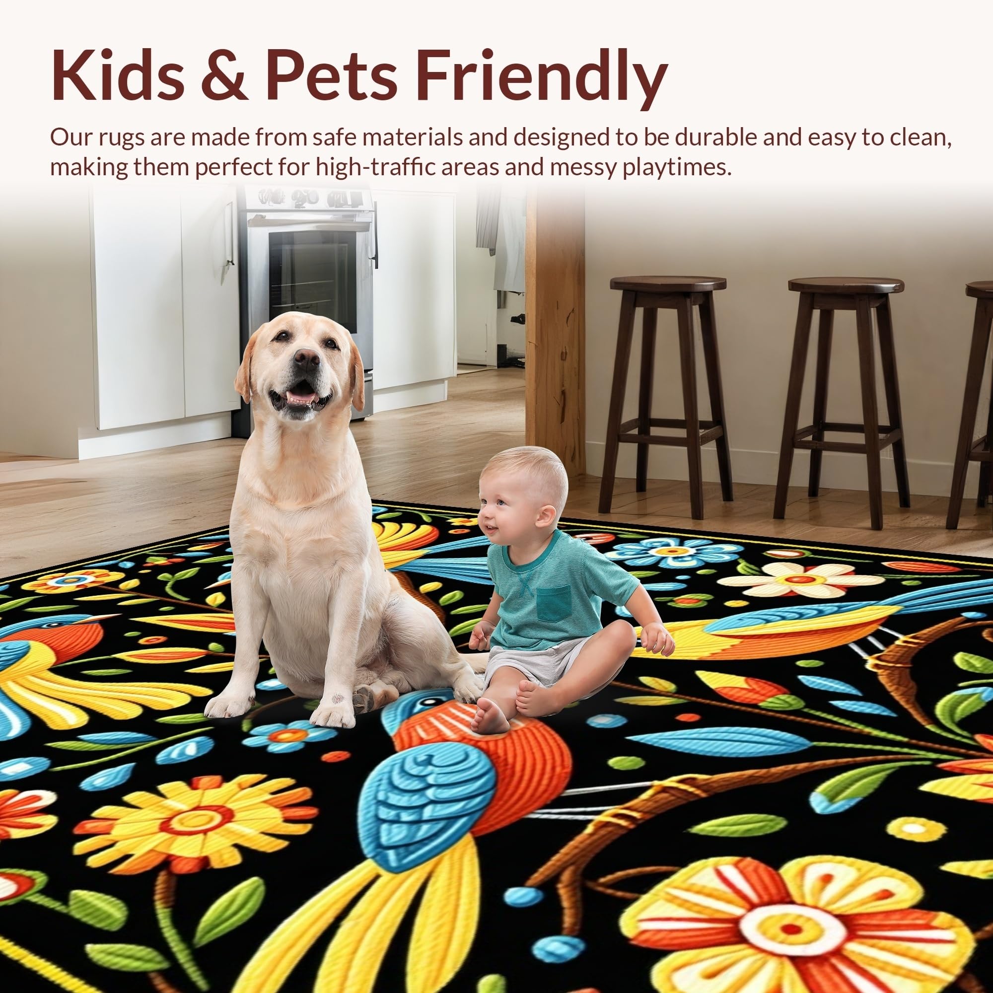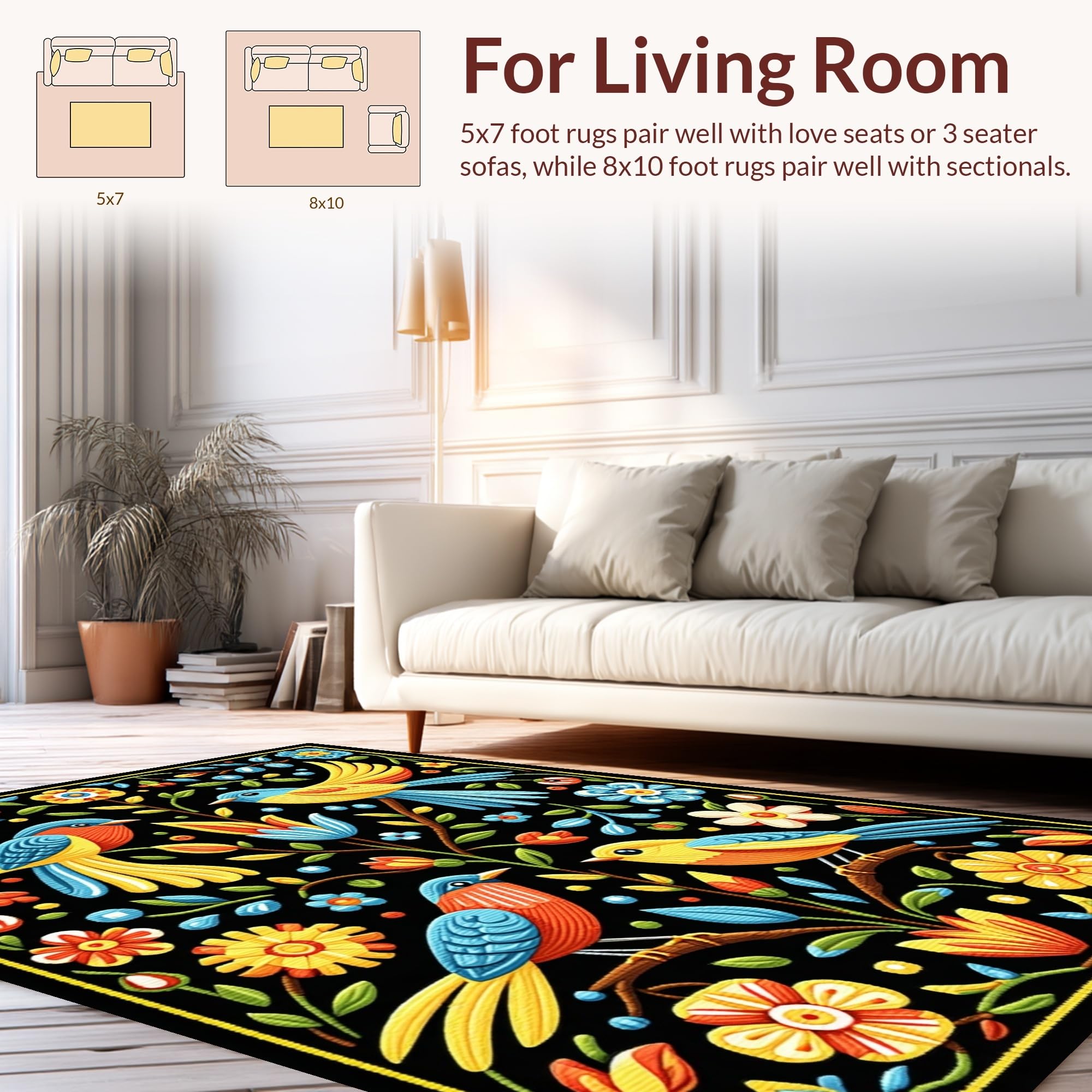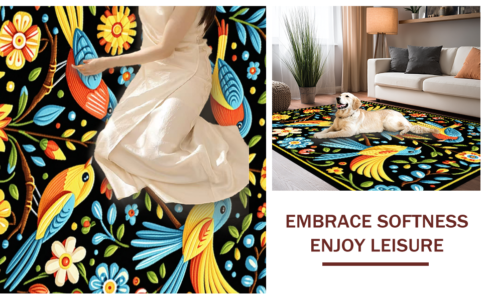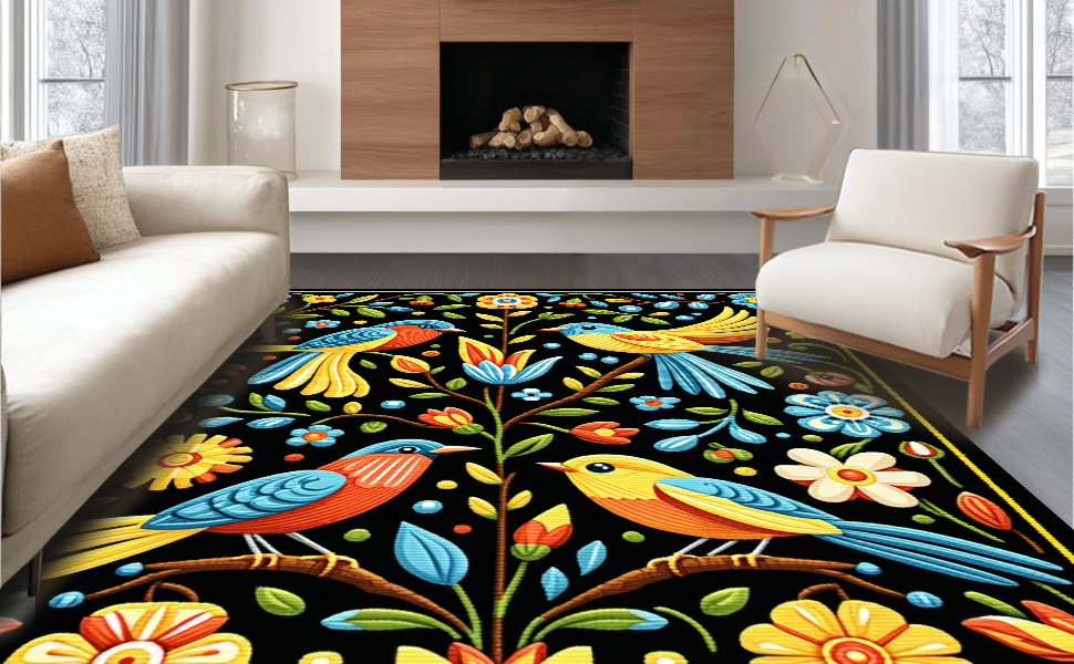 Ultra Soft Area Rug, Non Slip, Stain Resistant, Washable Area Rugs for Living Room, Bedroom, Artistic Colorful Nature Pattern(Black) Overview: