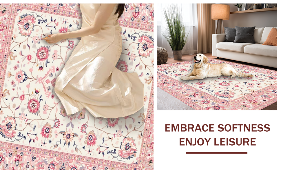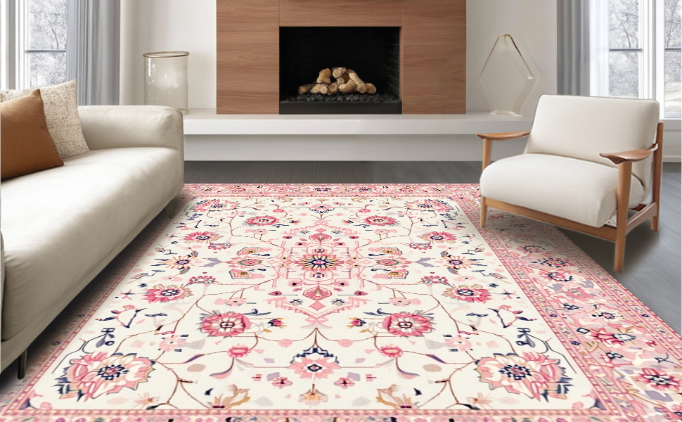 Ultra Soft Area Rug, Non Slip, Stain Resistant, Washable Area Rugs for Living Room, Bedroom, Artistic Creamy Petal Motif(Beige) Overview: