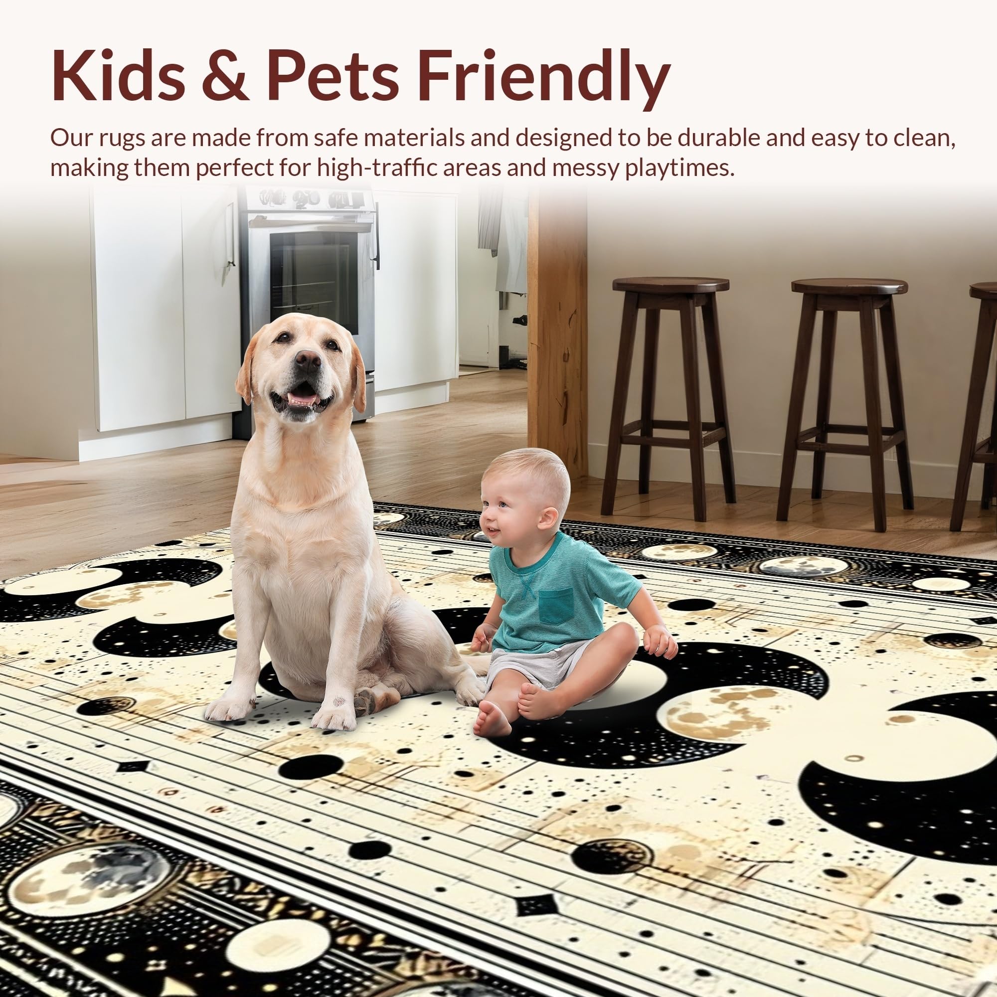 Ultra Soft Area Rug, Non Slip, Stain Resistant, Washable Area Rugs for Living Room, Bedroom, Artistic Creamy Phase Pattern(Beige) Overview: