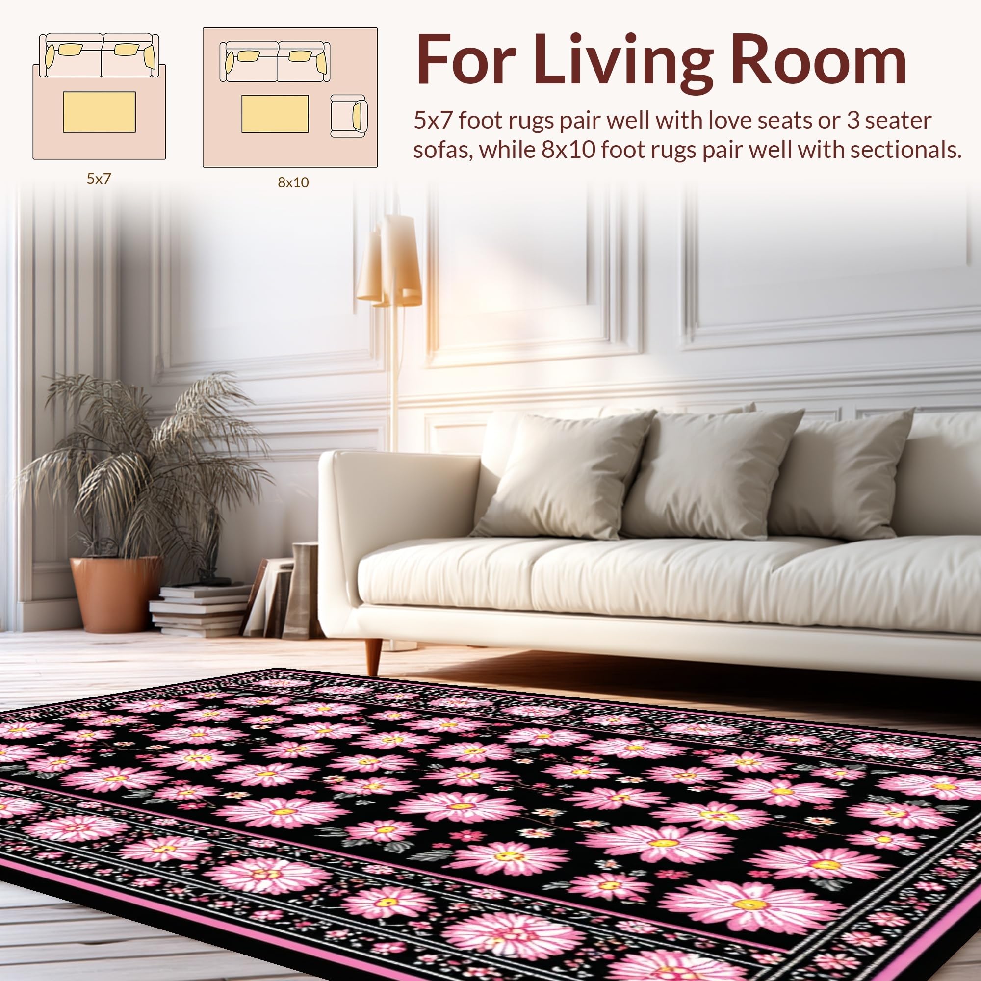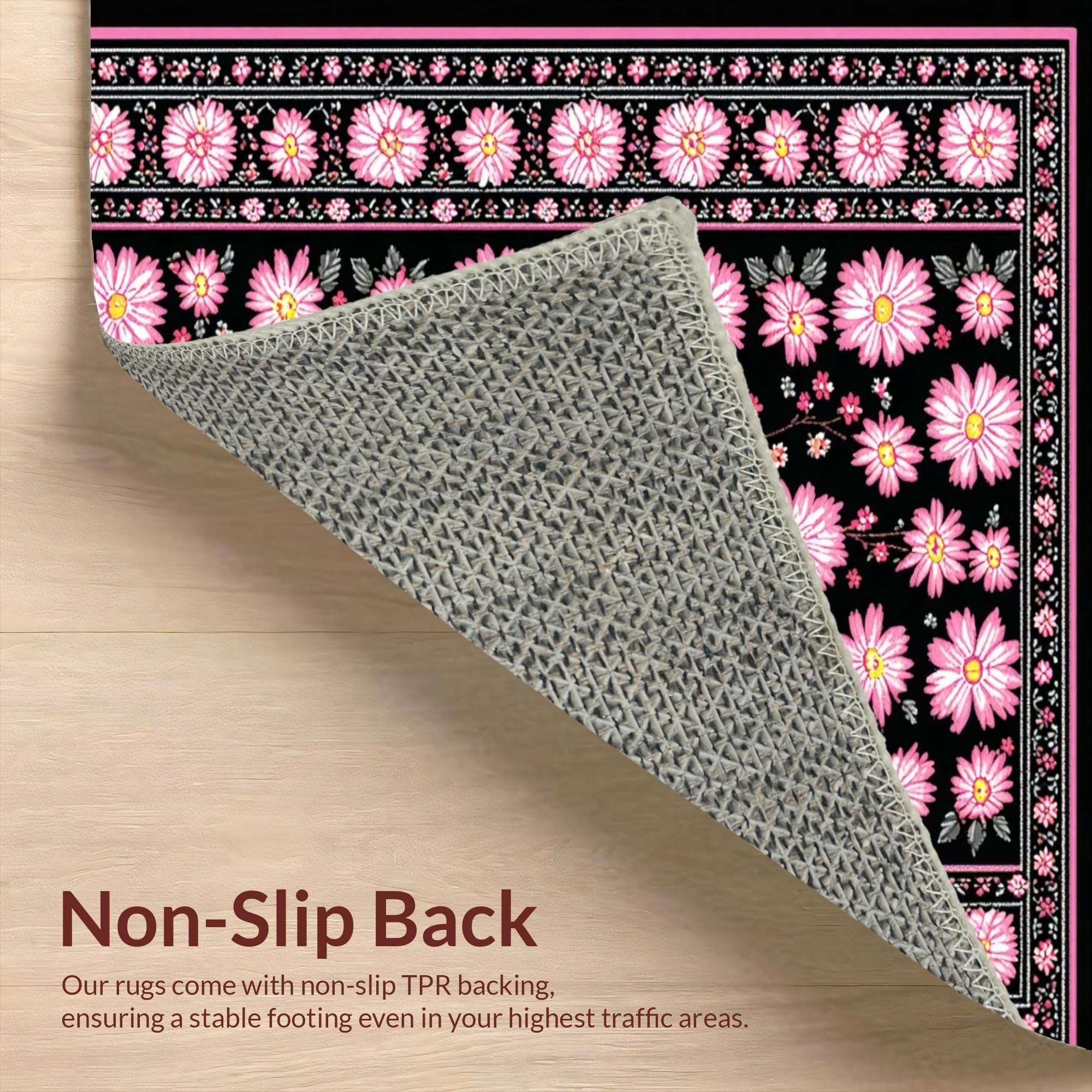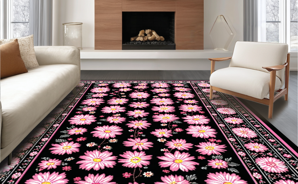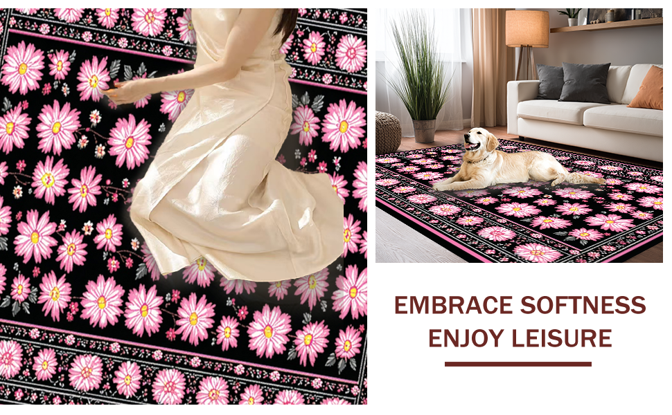 Ultra Soft Area Rug, Non Slip, Stain Resistant, Washable Area Rugs for Living Room, Bedroom, Artistic Criss-Cross Floral Layout(Pink) Overview: