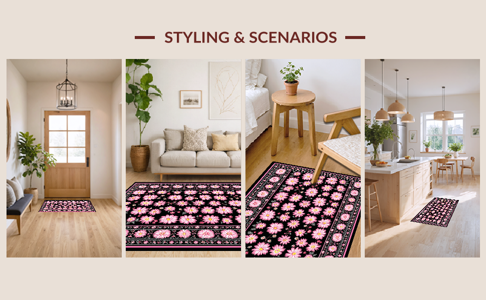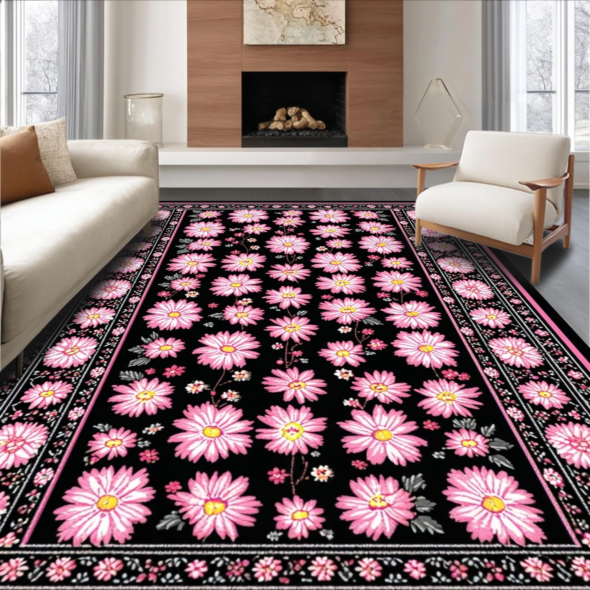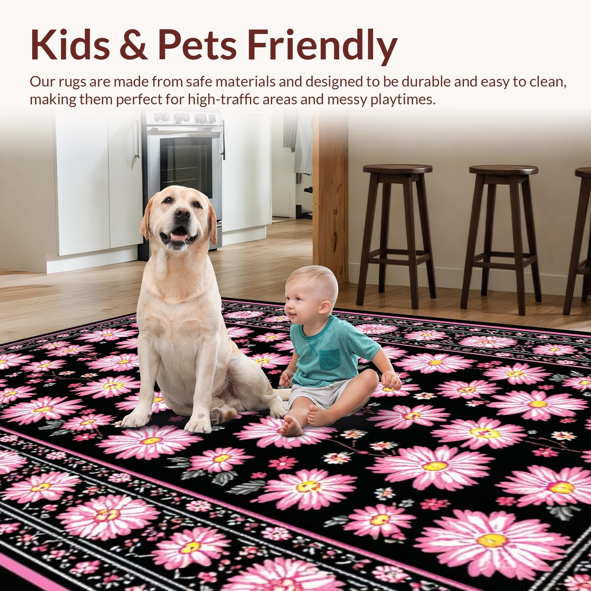 Ultra Soft Area Rug, Non Slip, Stain Resistant, Washable Area Rugs for Living Room, Bedroom, Artistic Criss-Cross Floral Layout(Pink) Overview: