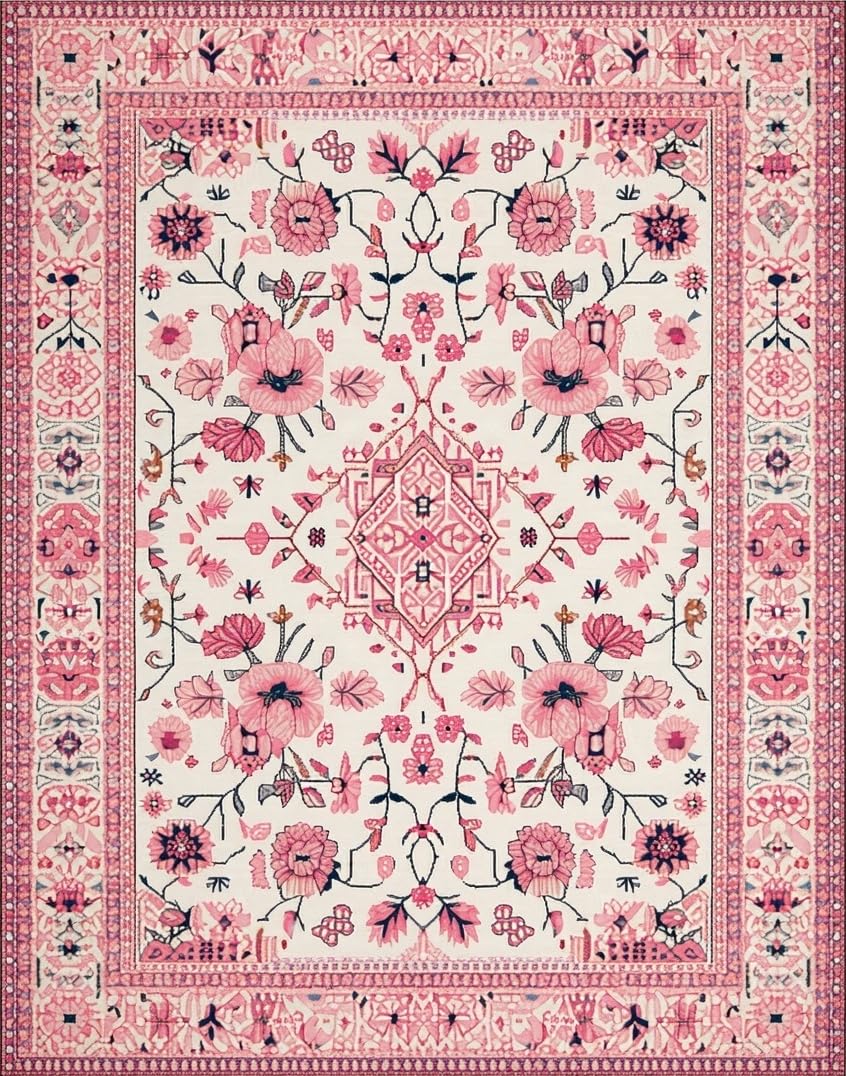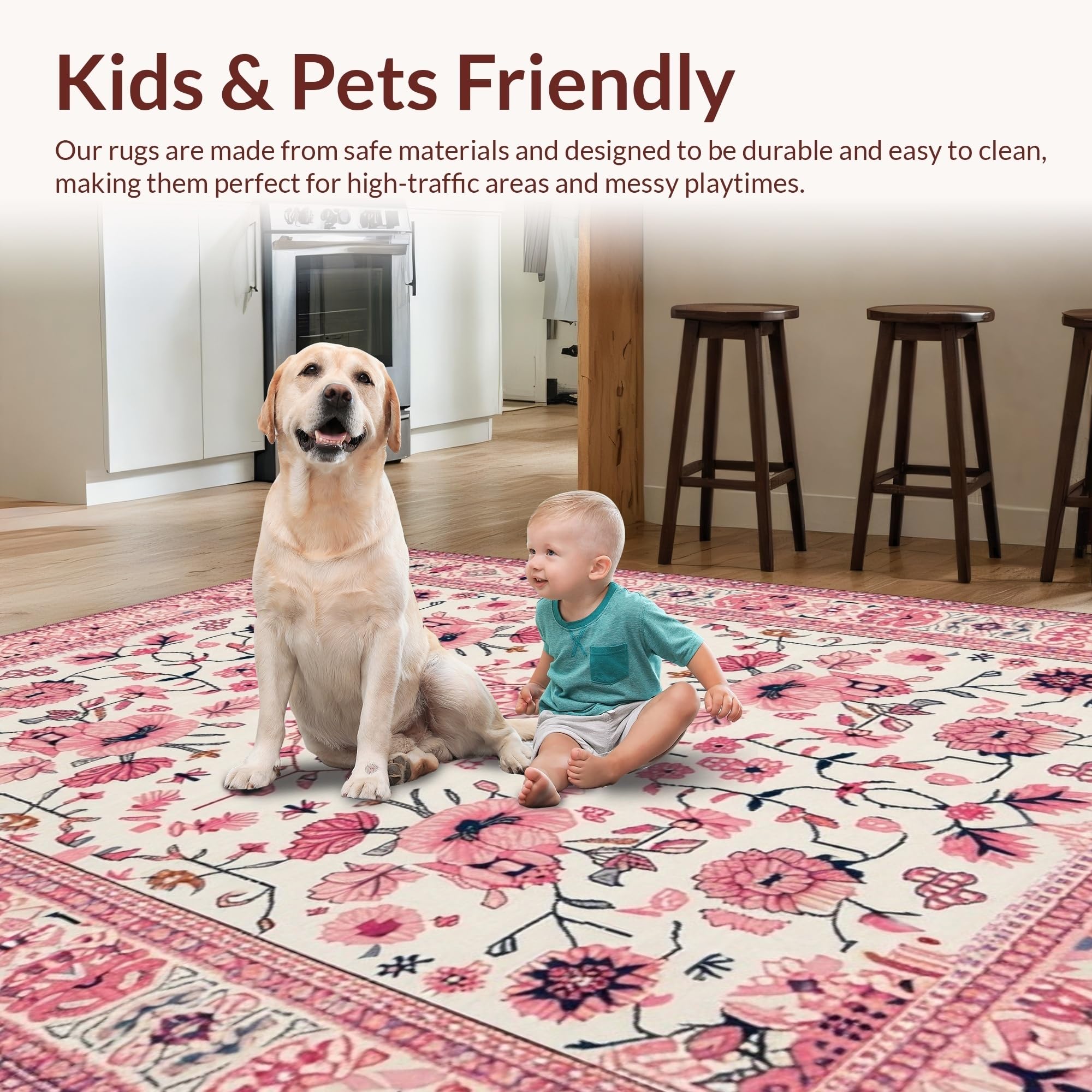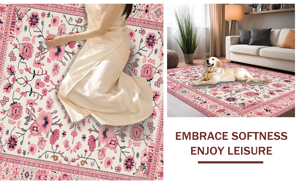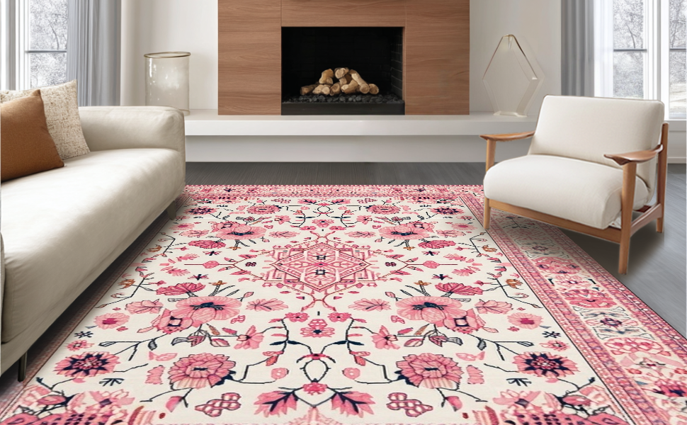Ultra Soft Area Rug, Non Slip, Stain Resistant, Washable Area Rugs for Living Room, Bedroom, Artistic Dreamy Blossom Print(Pink) Overview: