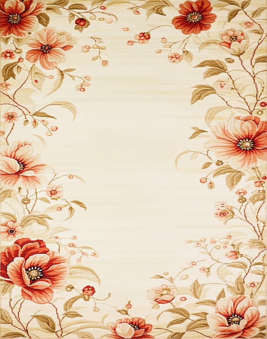 Artistic Floral Area Non Skid Backing Easy Clean Durable Low Pile(Beige)
