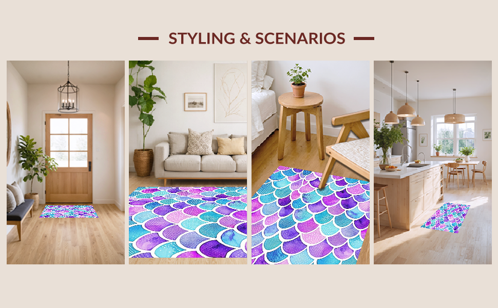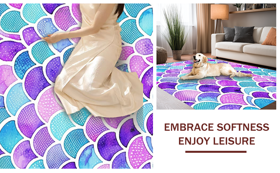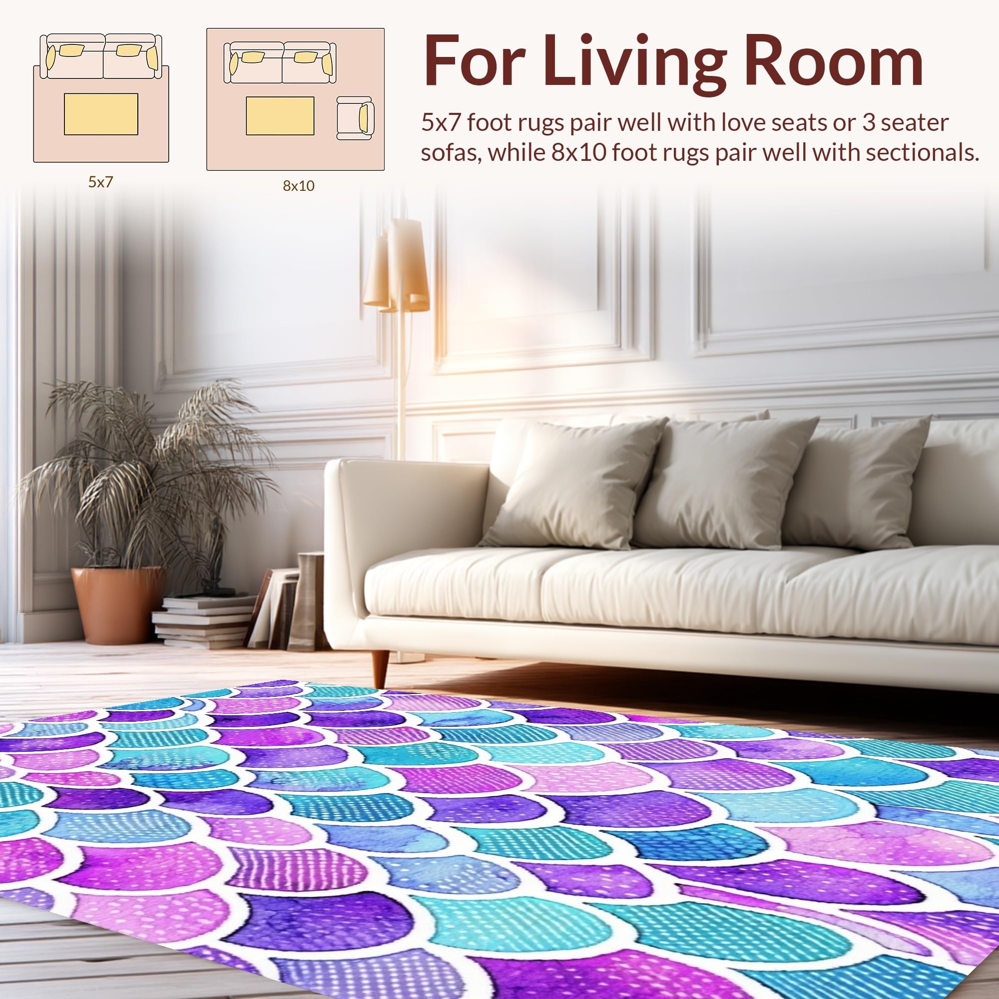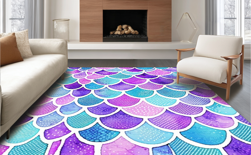 Ultra Soft Area Rug, Non Slip, Stain Resistant, Washable Area Rugs for Living Room, Bedroom, Artistic Fluidic Scale Composition(Purple) Overview: