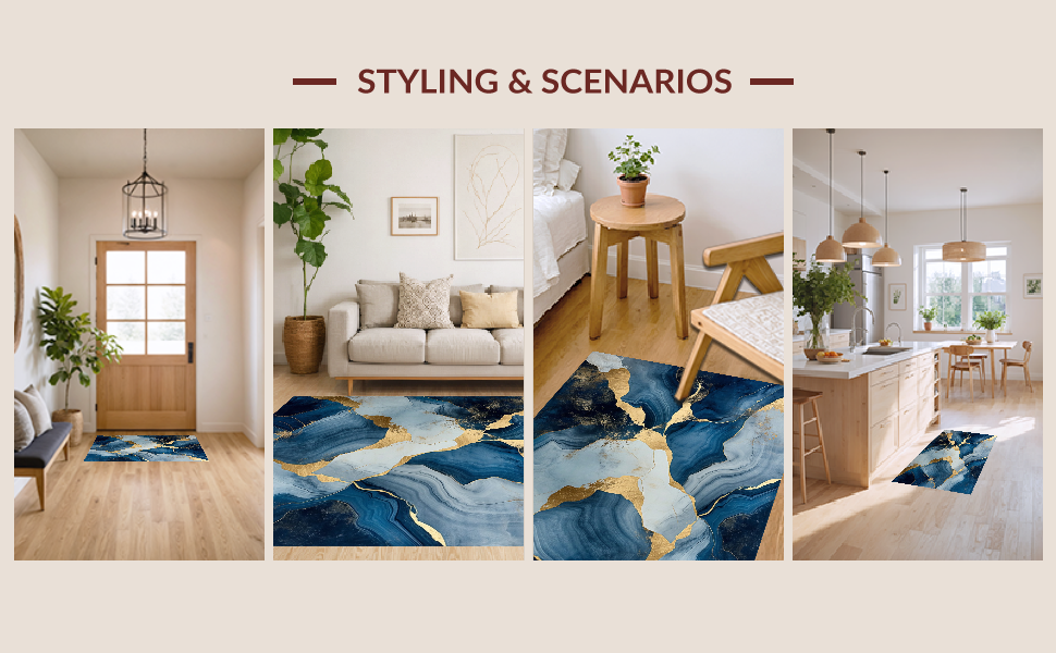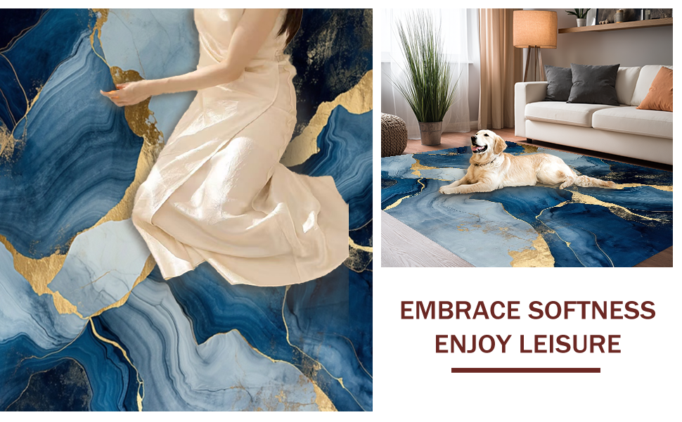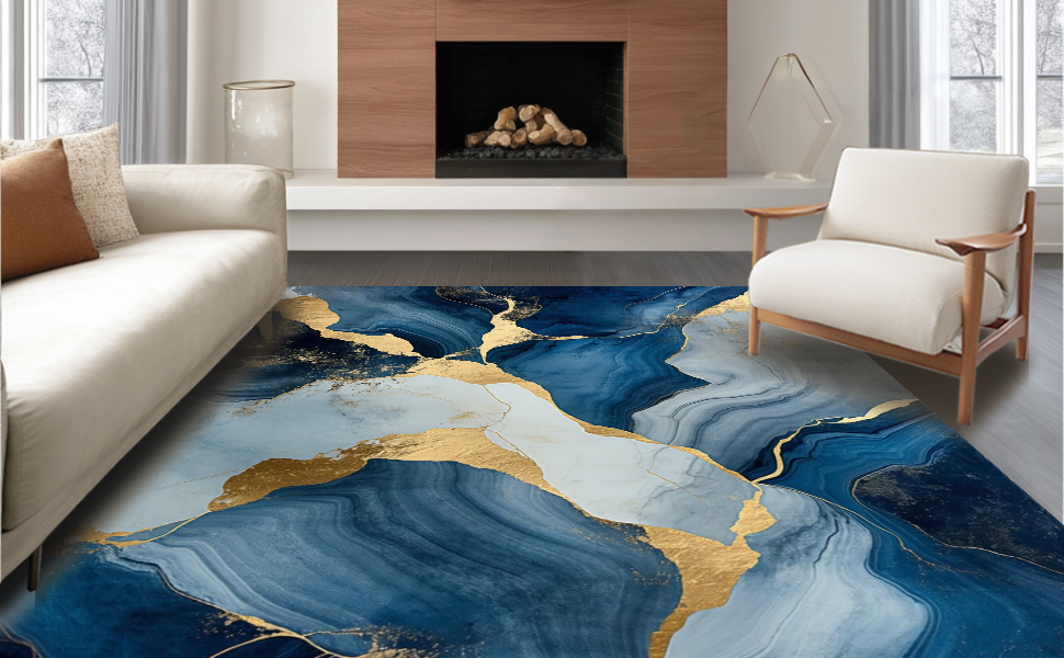 Ultra Soft Area Rug, Non Slip, Stain Resistant, Washable Area Rugs for Living Room, Bedroom, Artistic Geometric Fusion Palette(Blue) Overview: