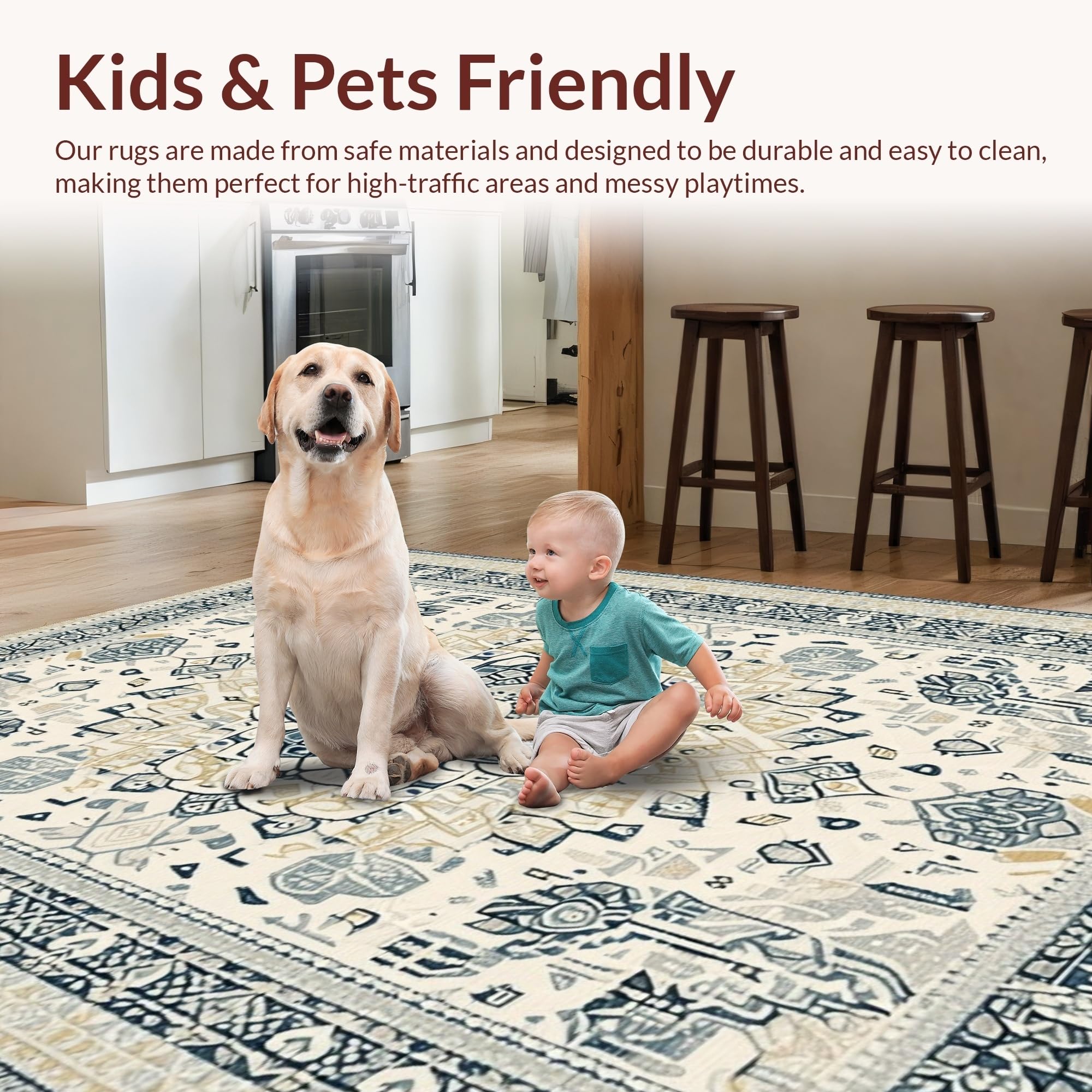 Ultra Soft Area Rug, Non Slip, Stain Resistant, Washable Area Rugs for Living Room, Bedroom, Artistic Geometric Medallion Style(Beige) Overview: