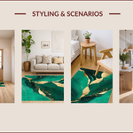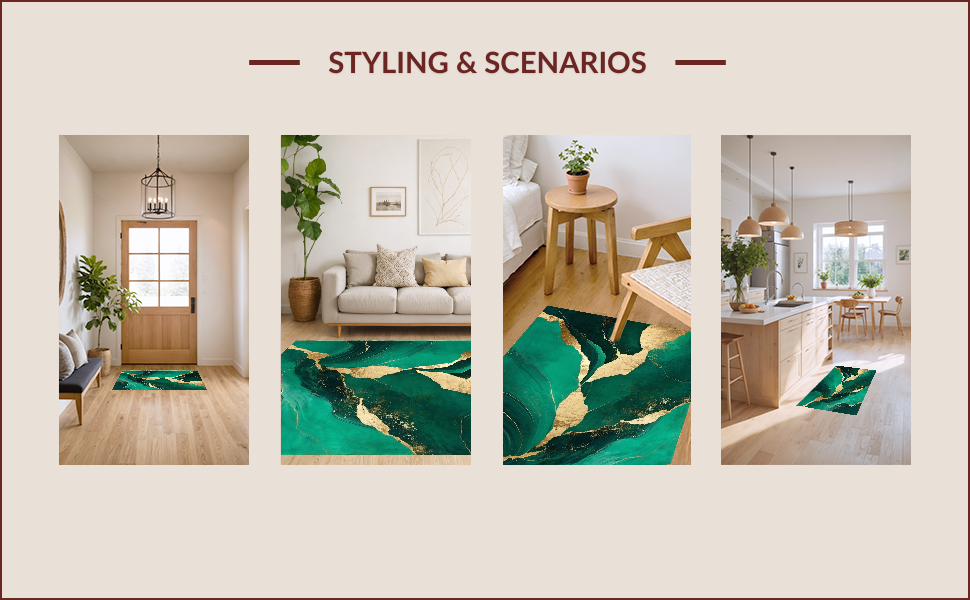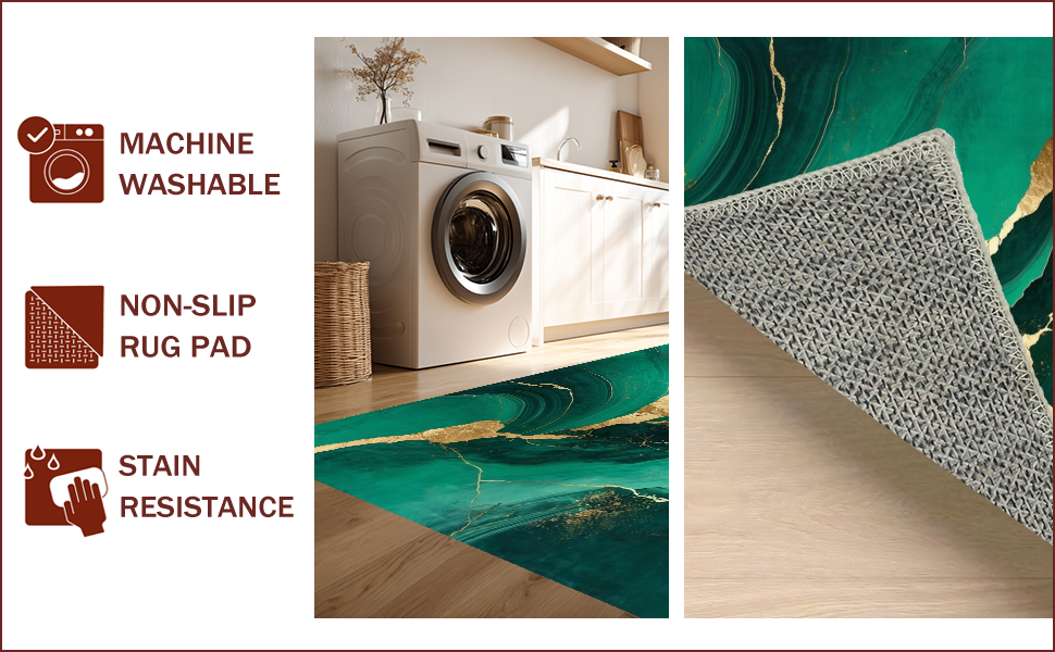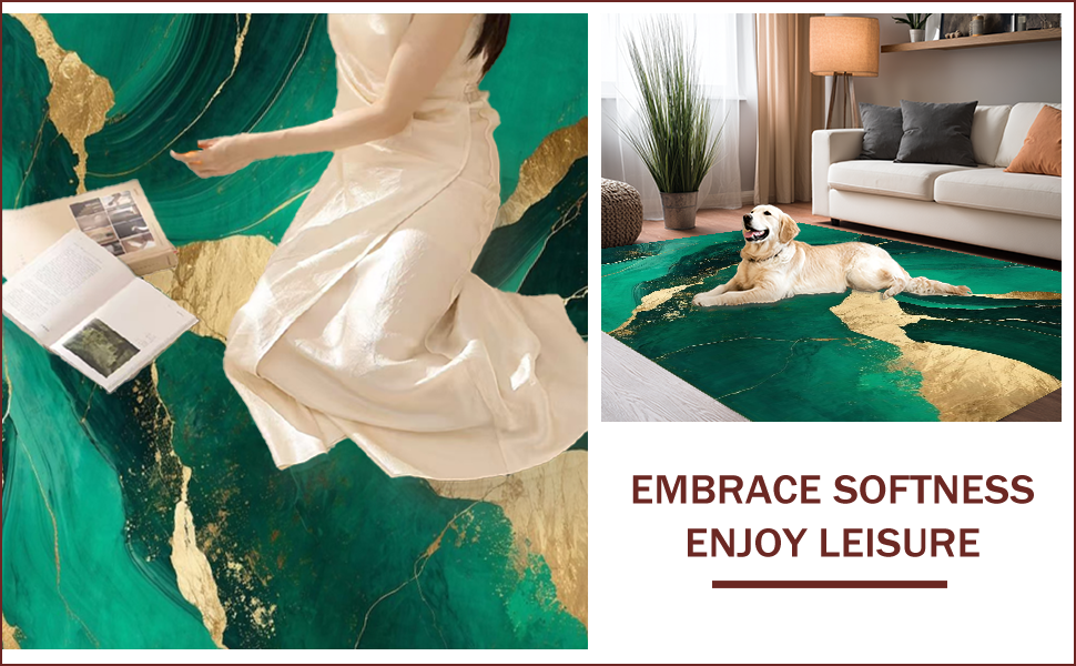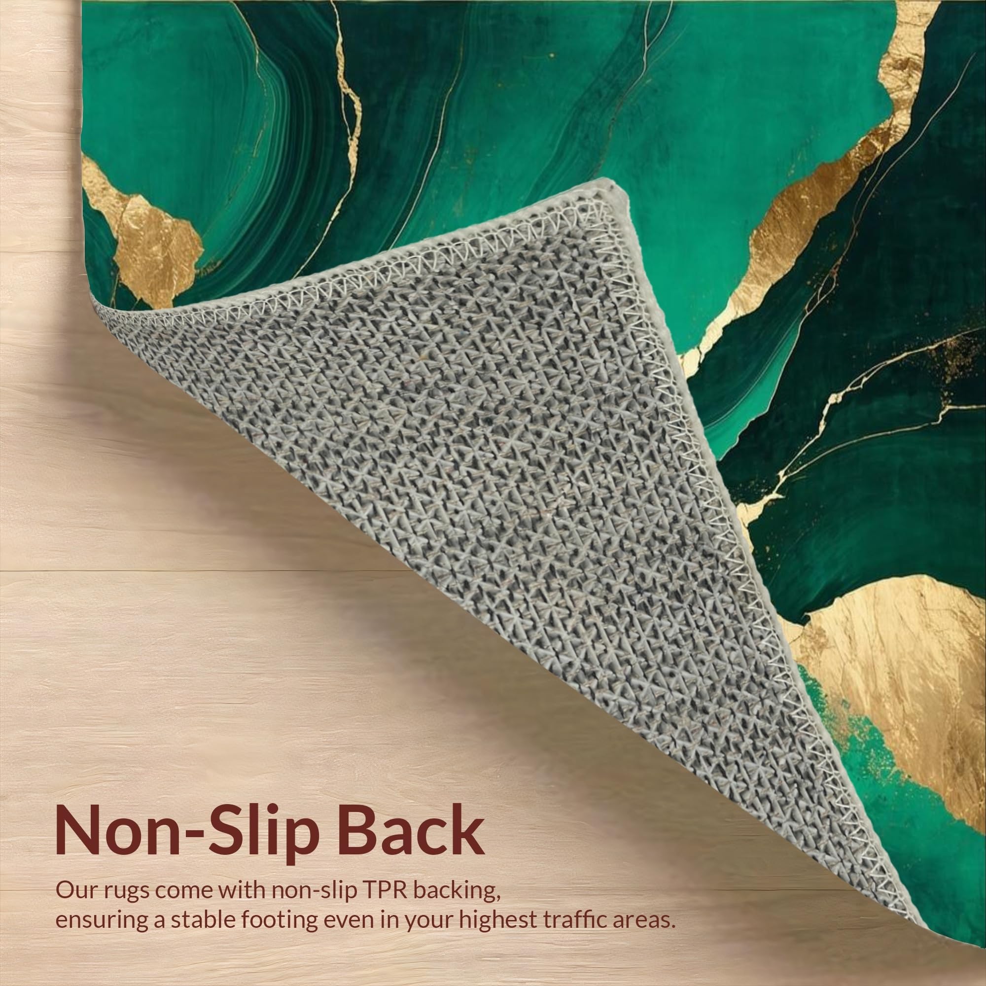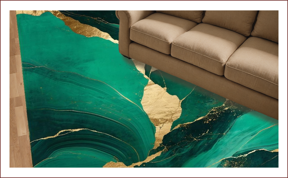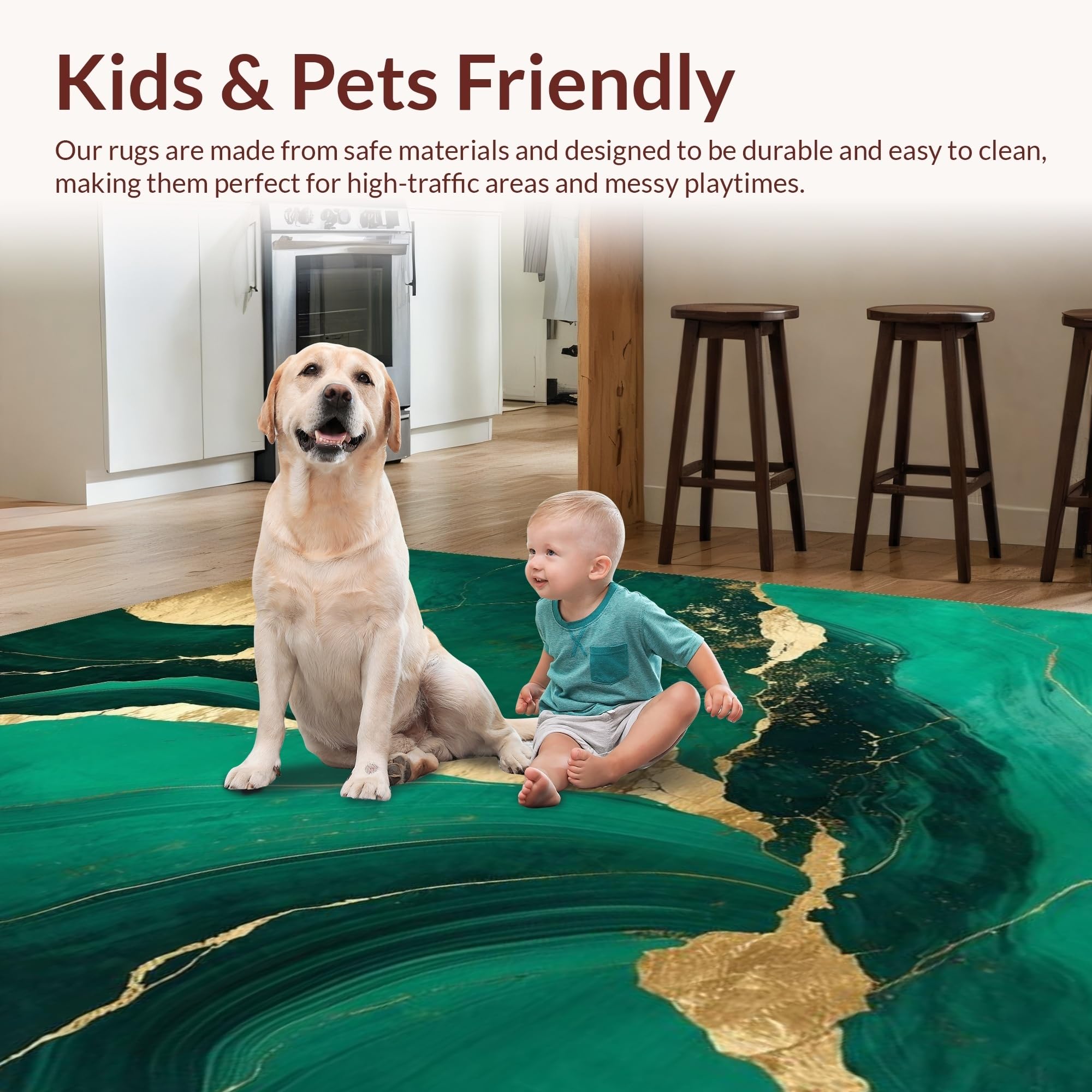 Ultra Soft Area Rug, Non Slip, Stain Resistant, Washable Area Rugs for Living Room, Bedroom, Artistic Gold Swirl Geometric Contrast(Green) Overview:
