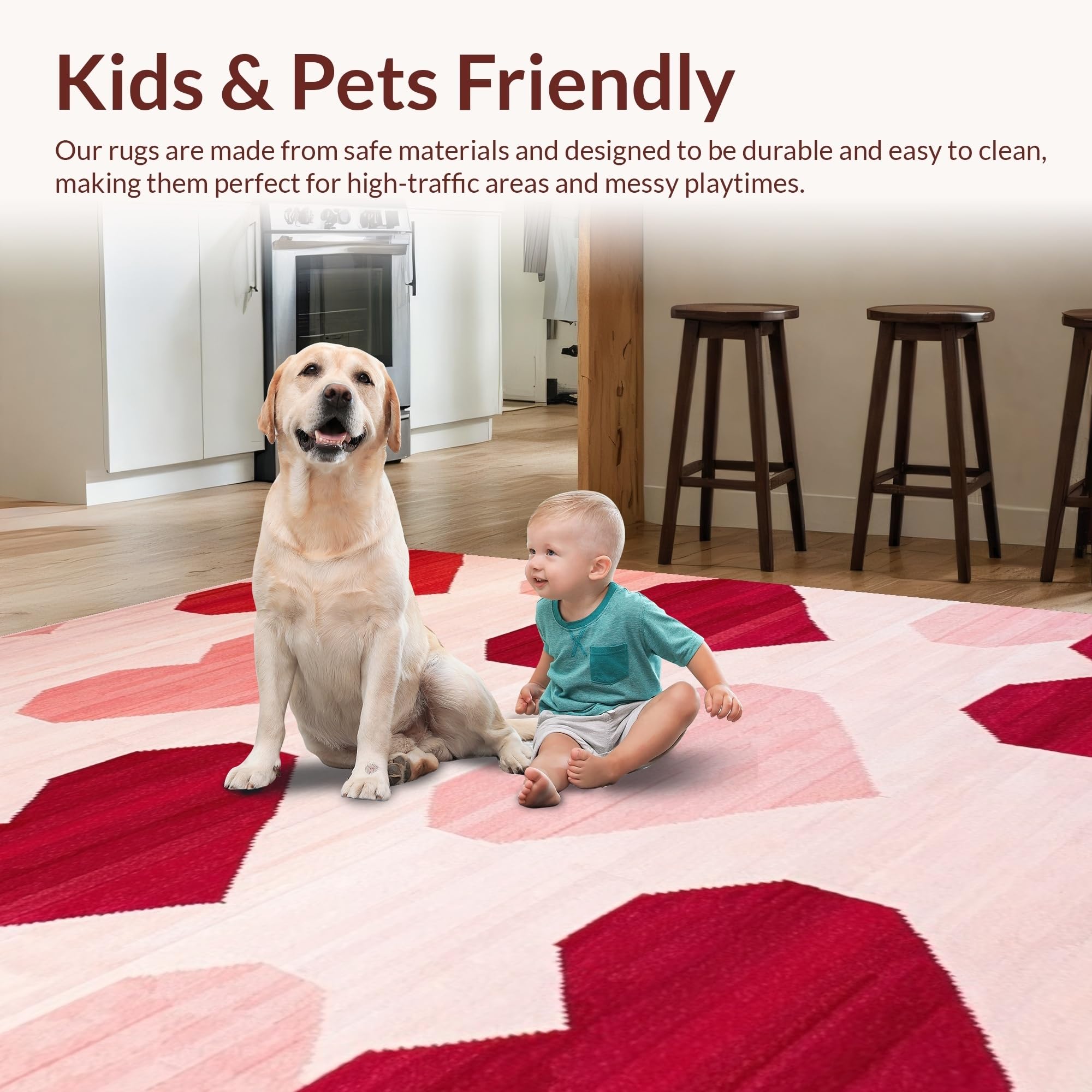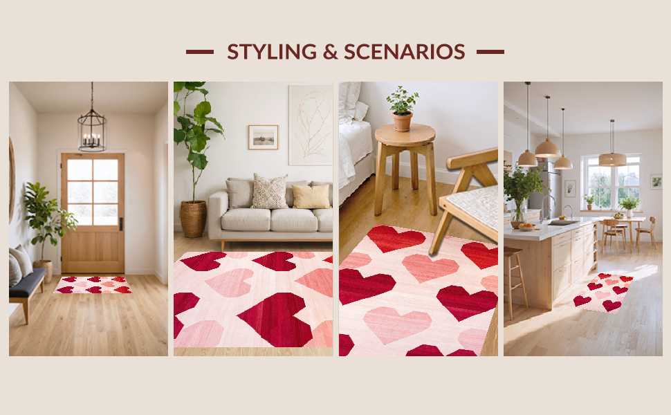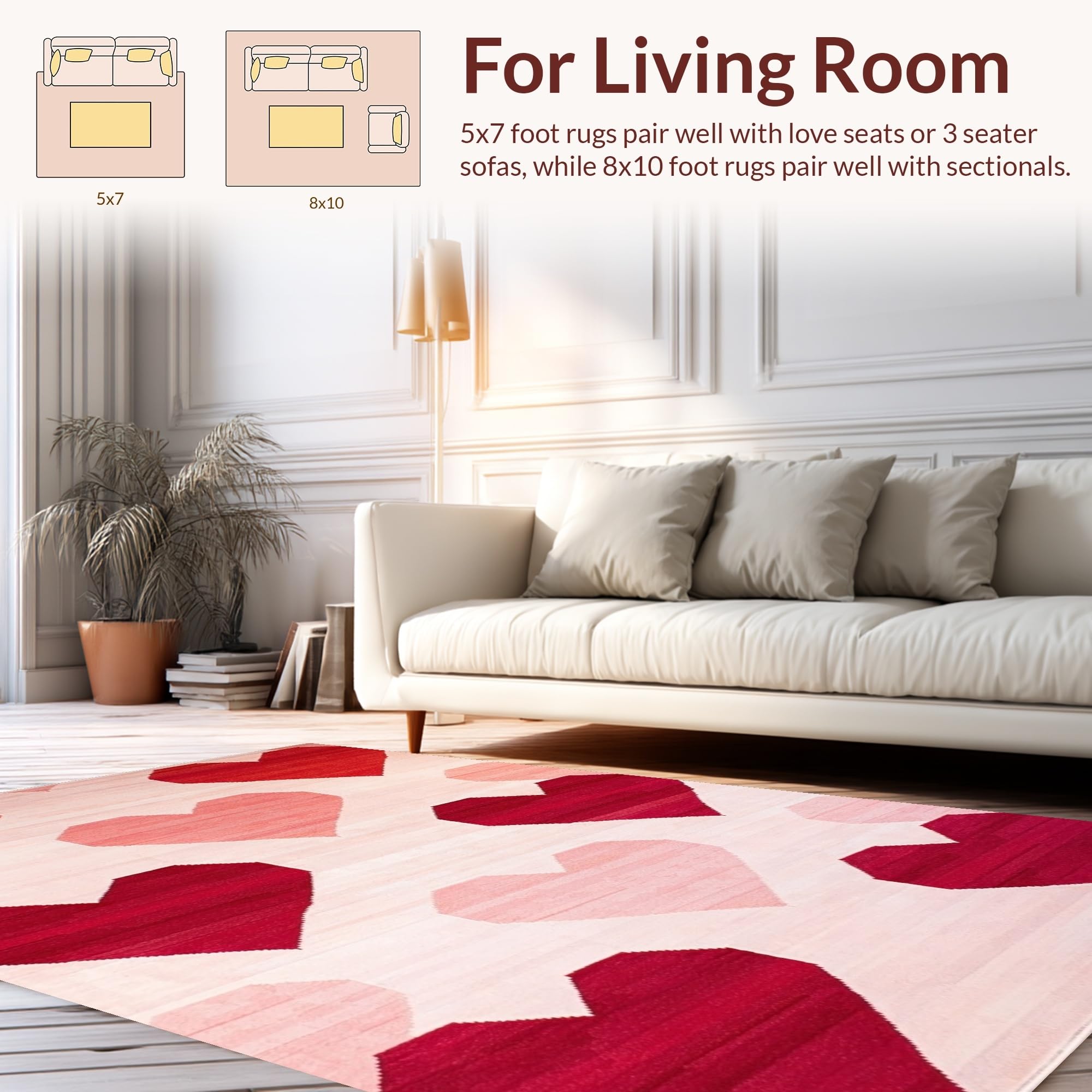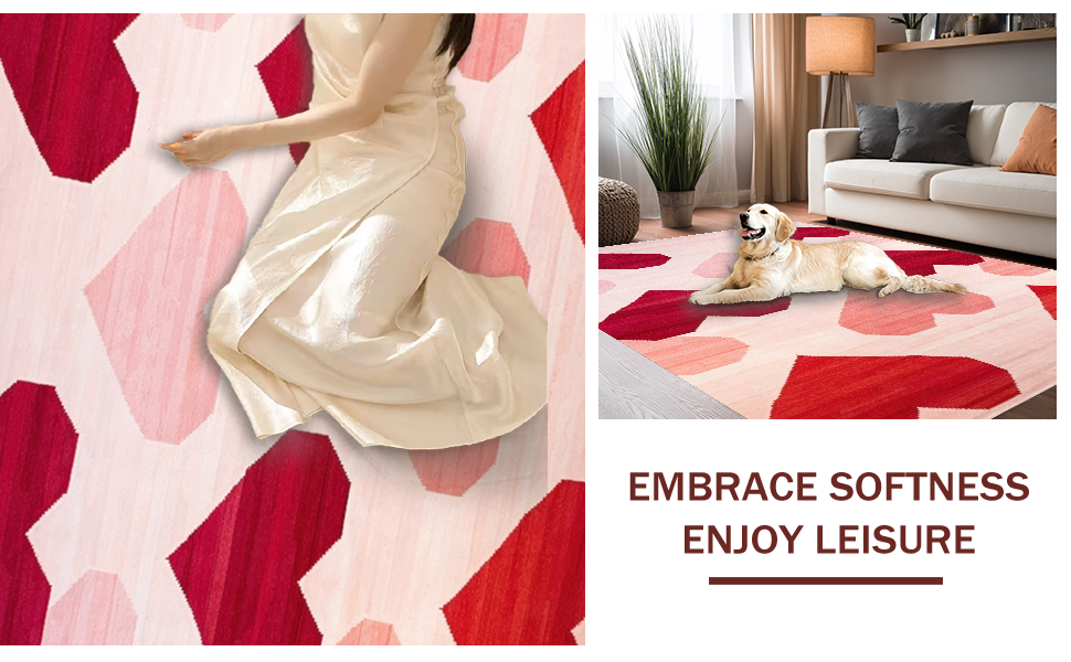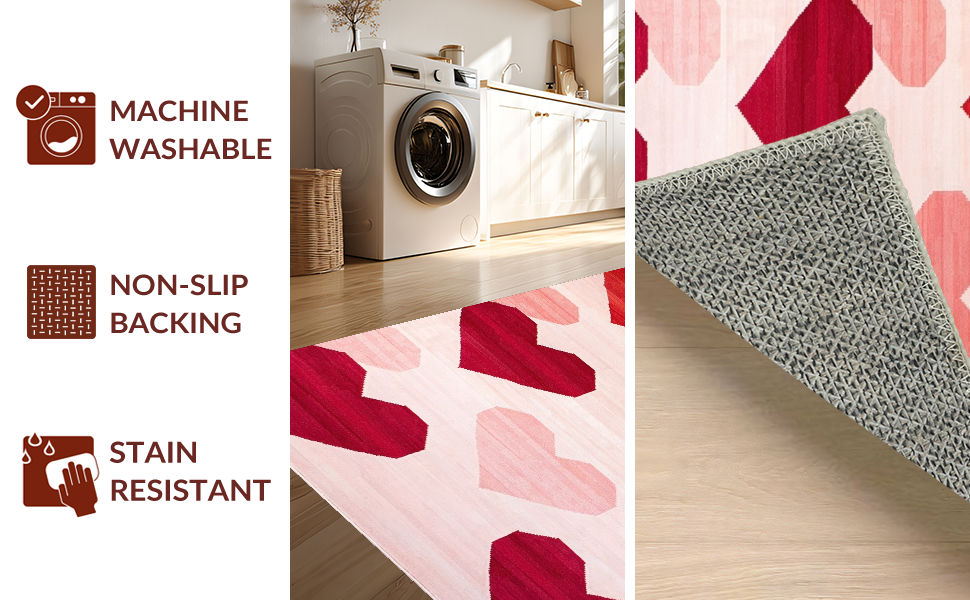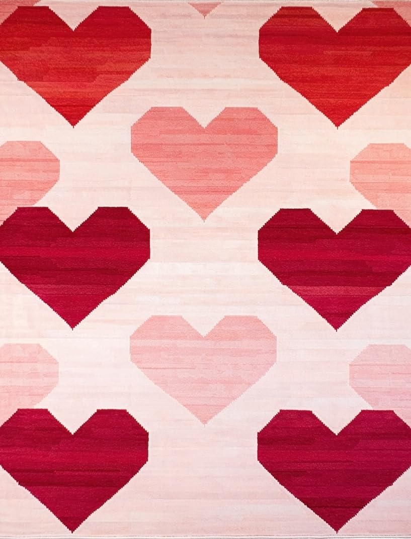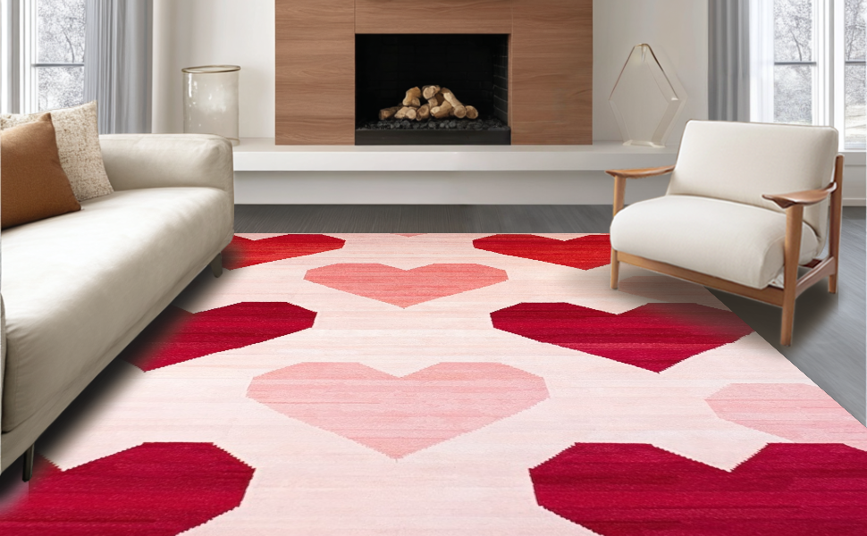 Ultra Soft Area Rug, Non Slip, Stain Resistant, Washable Area Rugs for Living Room, Bedroom, Artistic Heart Fusion Style(Red) Overview: