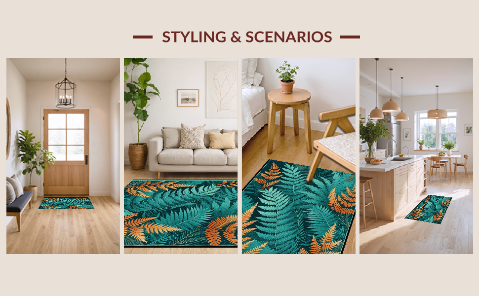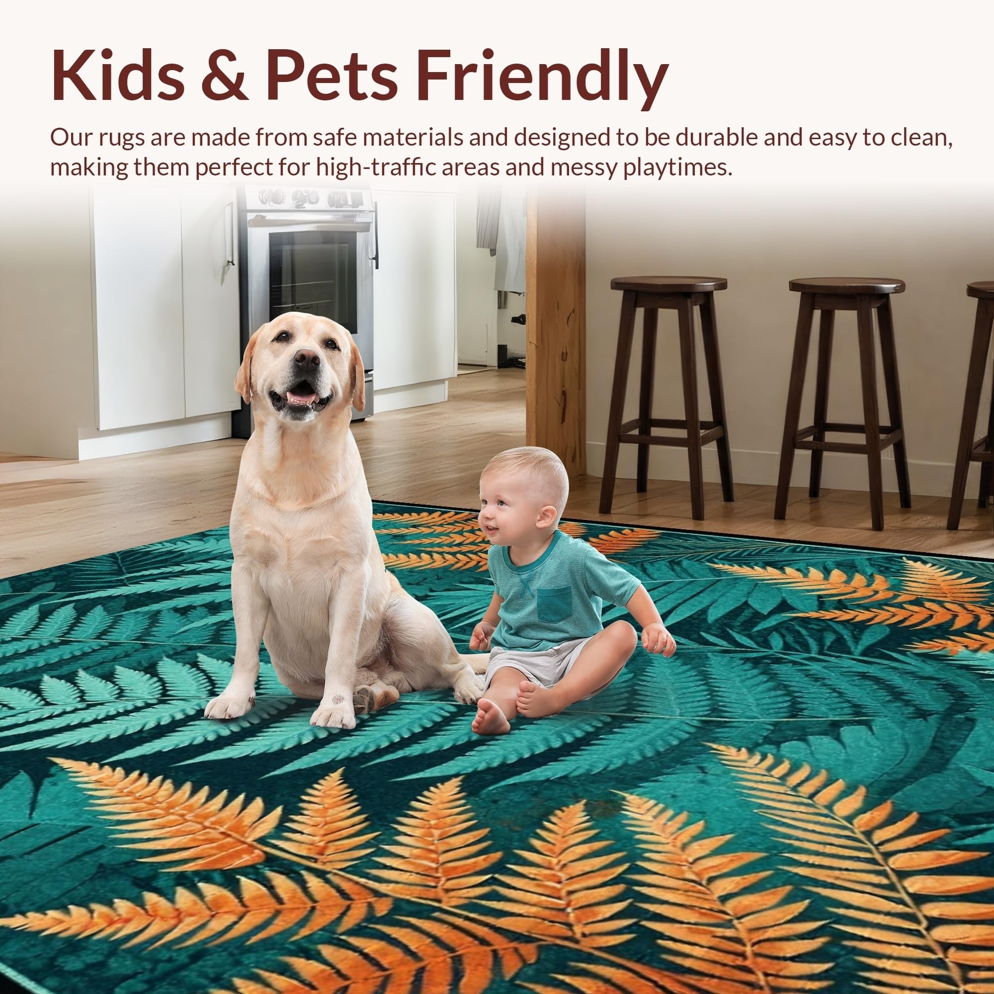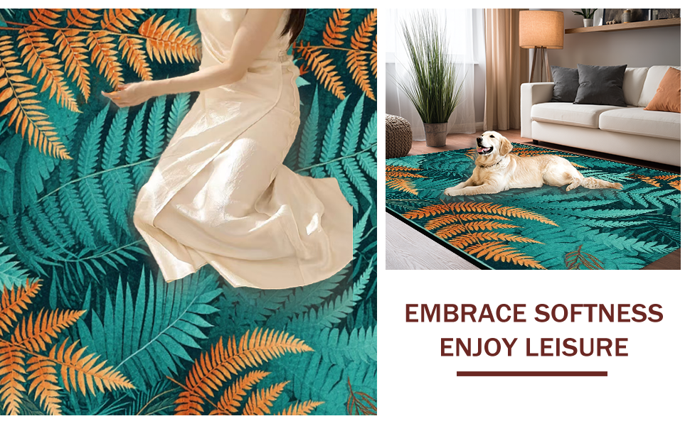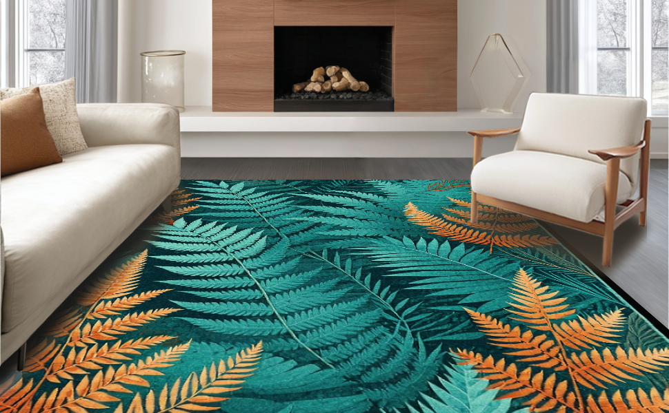 Ultra Soft Area Rug, Non Slip, Stain Resistant, Washable Area Rugs for Living Room, Bedroom, Artistic Irregular Shape Floral Elements(Green) Overview: