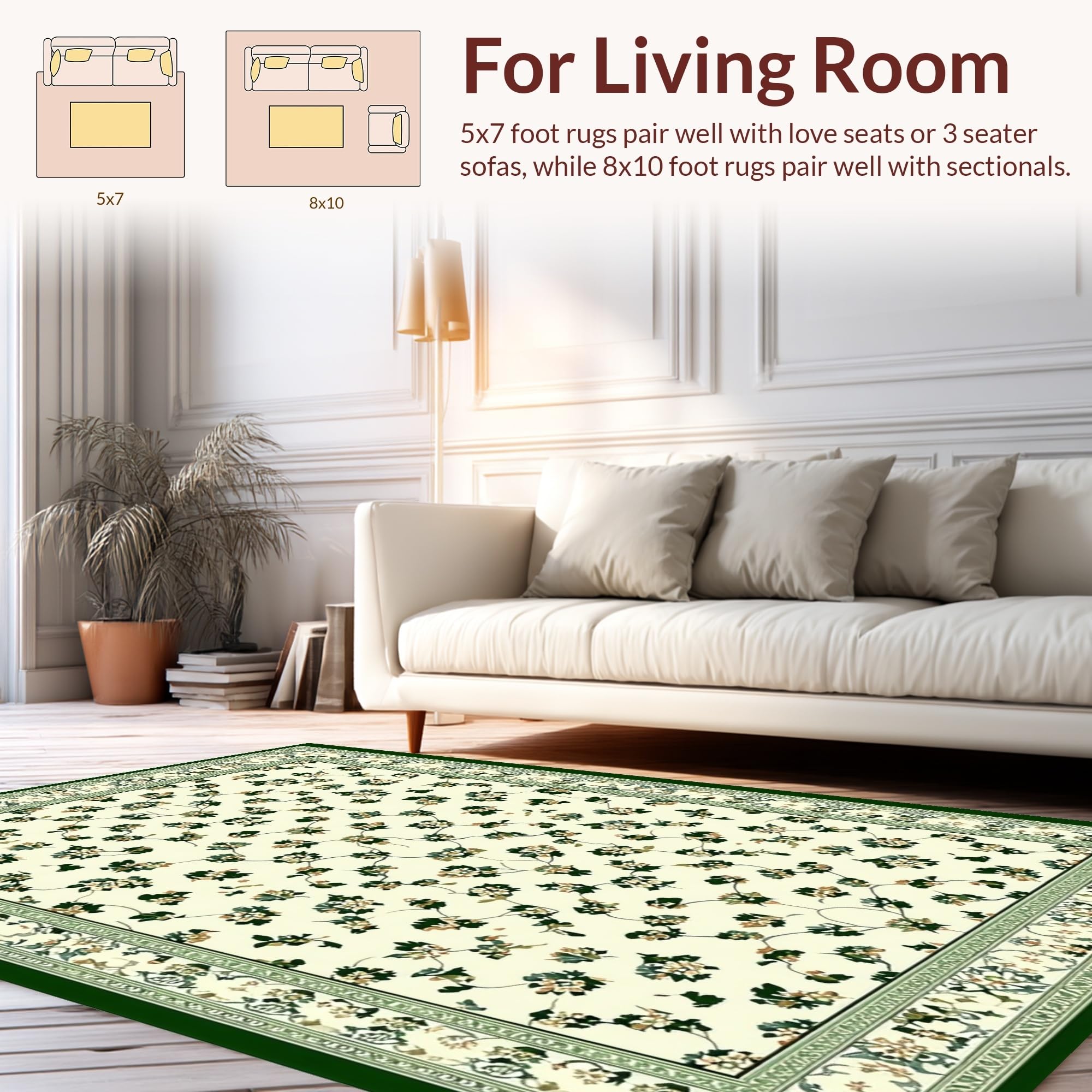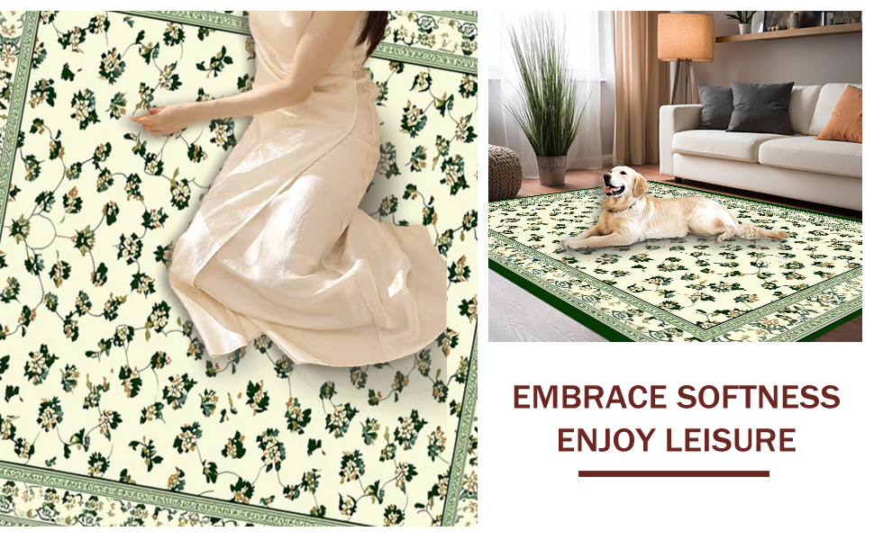 Ultra Soft Area Rug, Non Slip, Stain Resistant, Washable Area Rugs for Living Room, Bedroom, Artistic Leafy Arrangement(Ivory) Overview: