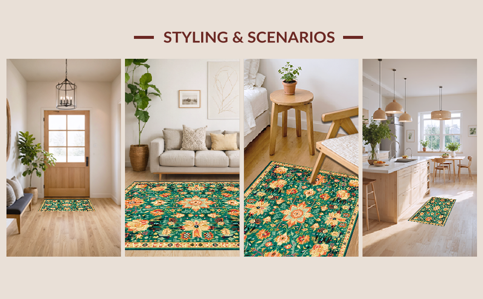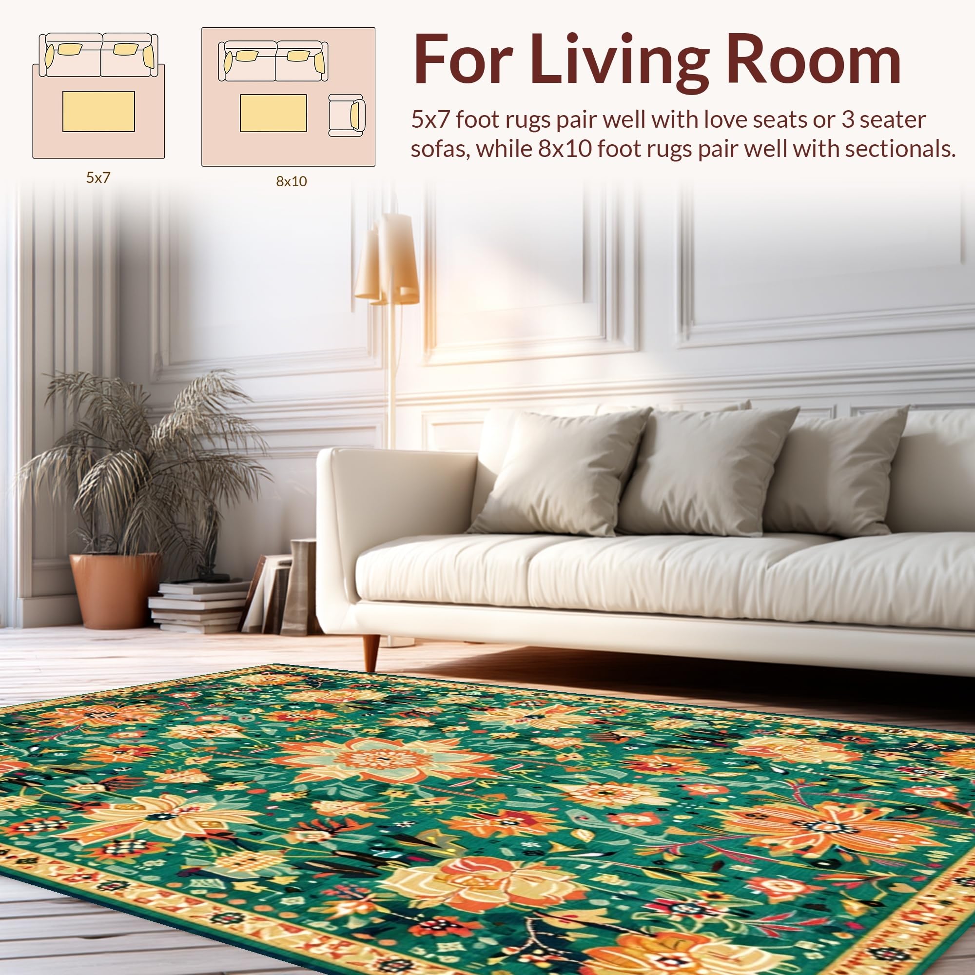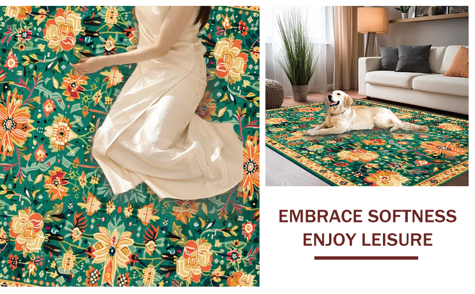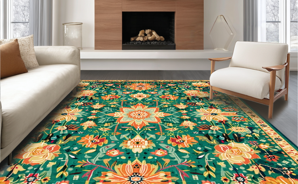 Ultra Soft Area Rug, Non Slip, Stain Resistant, Washable Area Rugs for Living Room, Bedroom, Artistic Low Pile Nature Scene(Green) Overview: