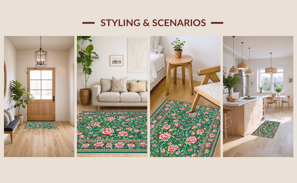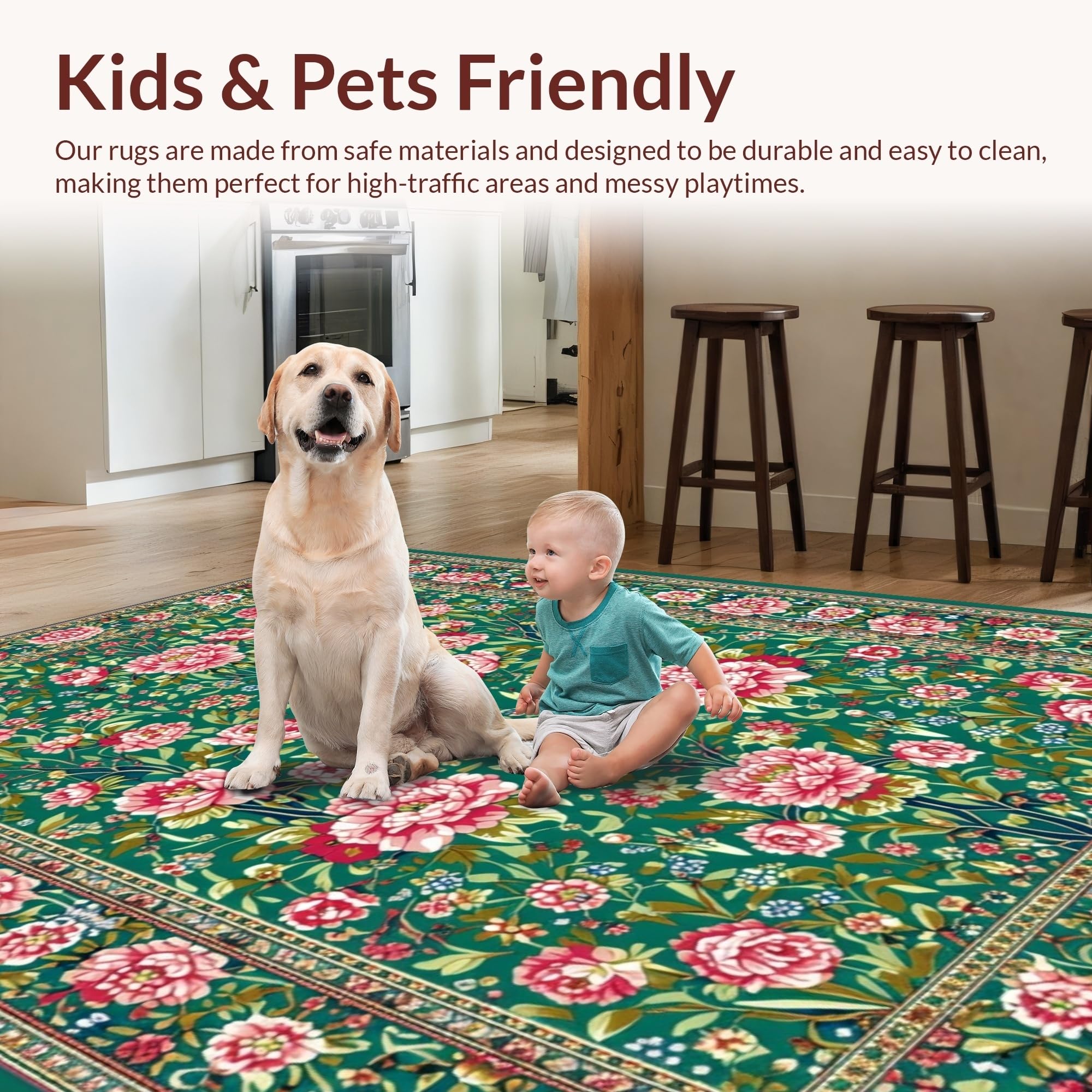 Ultra Soft Area Rug, Non Slip, Stain Resistant, Washable Area Rugs for Living Room, Bedroom, Artistic Maximalist Bloom Motif(Green) Overview: