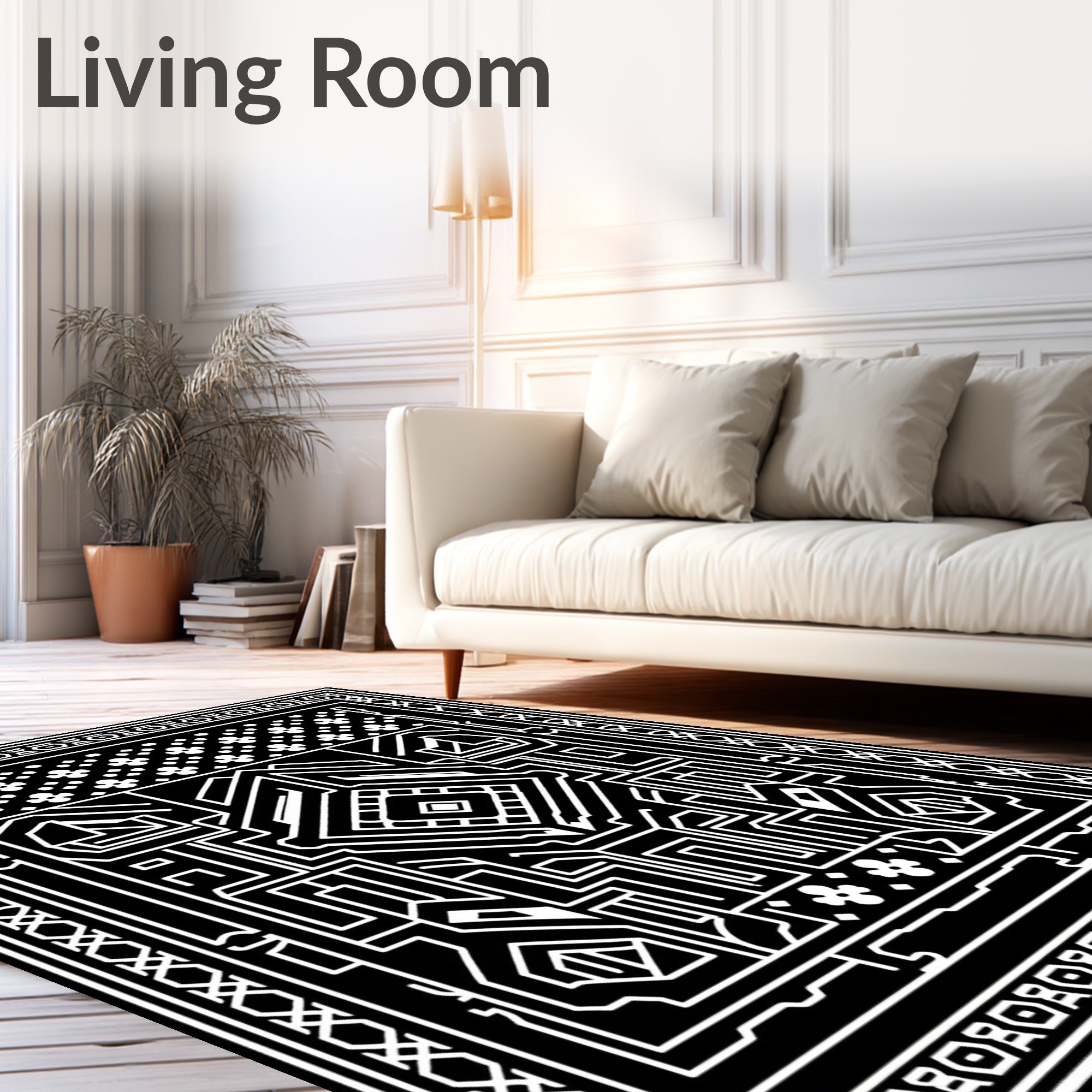Ultra Soft Area Rug, Non Slip, Stain Resistant, Washable Area Rugs for Living Room, Bedroom, Artistic Maze Trellis Heritage Vintage(Black) Overview:
