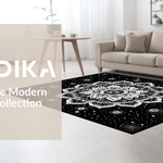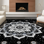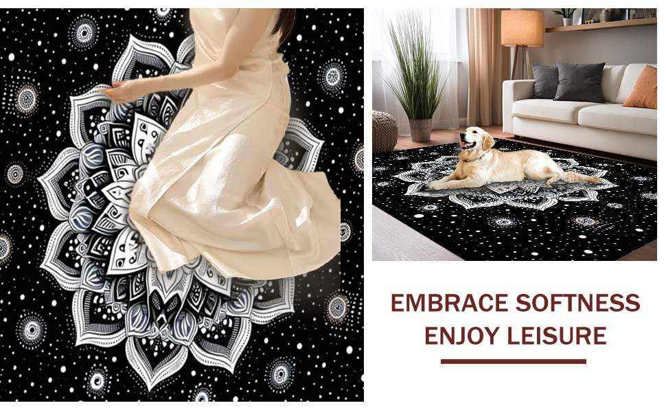 Ultra Soft Area Rug, Non Slip, Stain Resistant, Washable Area Rugs for Living Room, Bedroom, Artistic Monochrome Circular Design(Black) Overview: