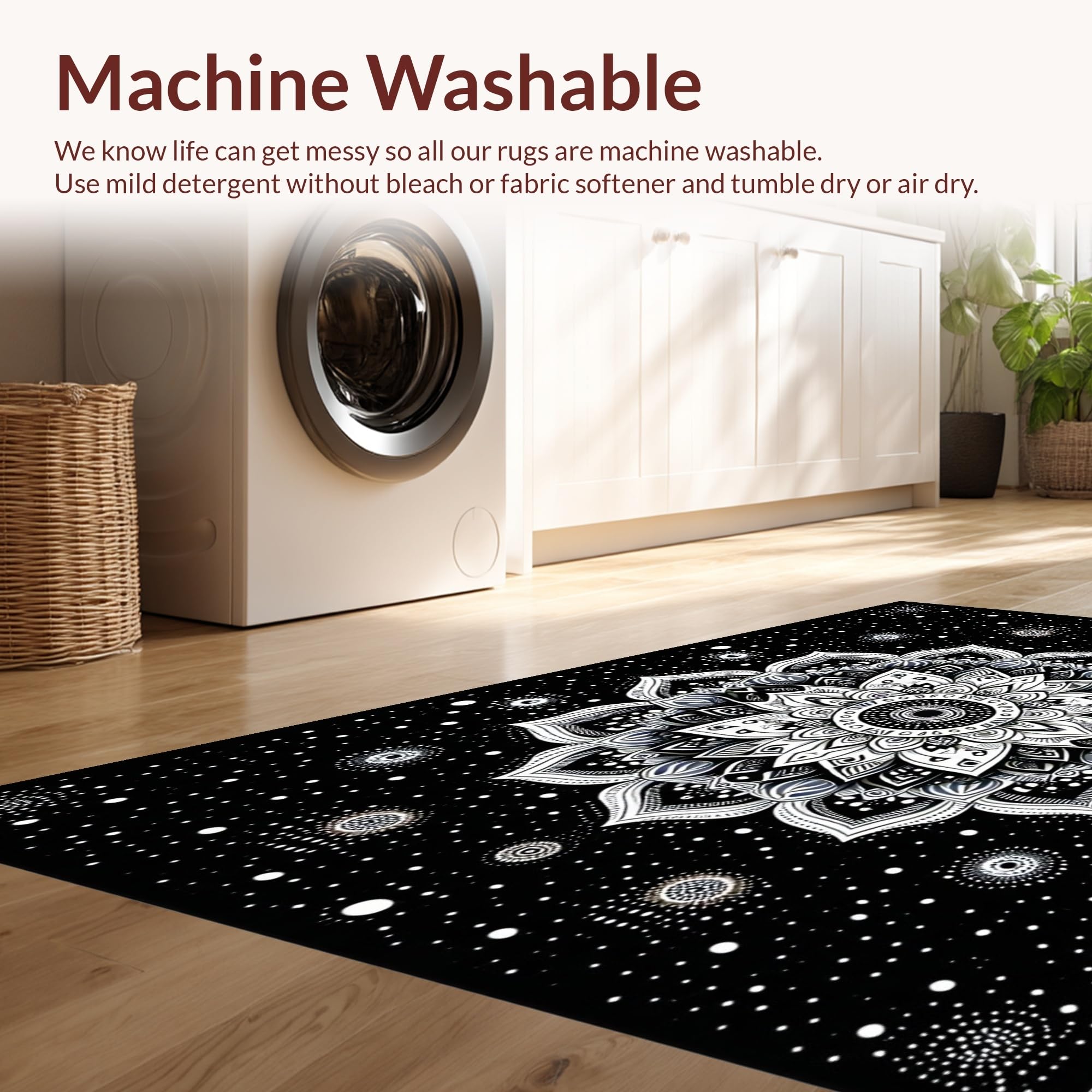 - Machine Washable: Our rugs can be easily thrown in the wash machine.