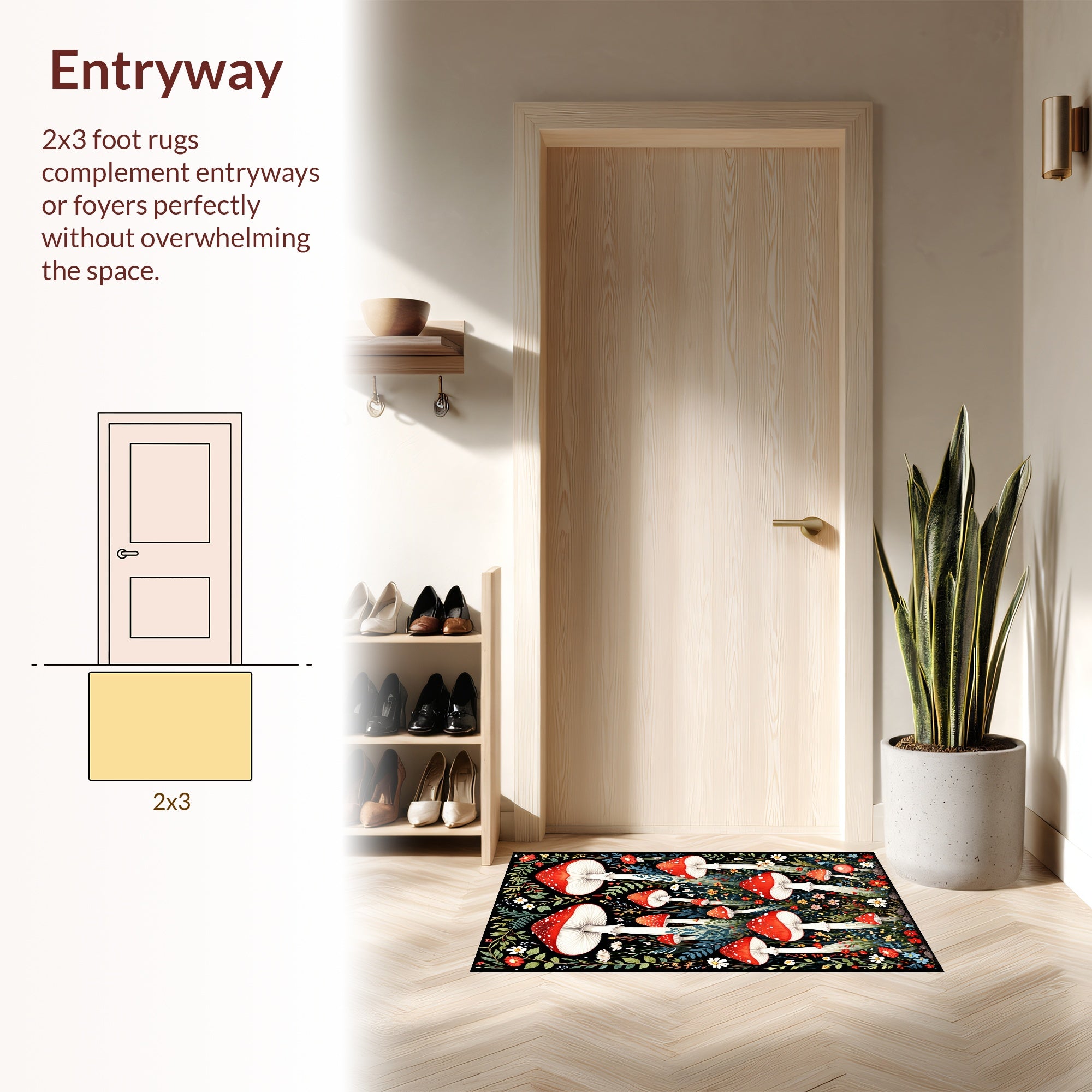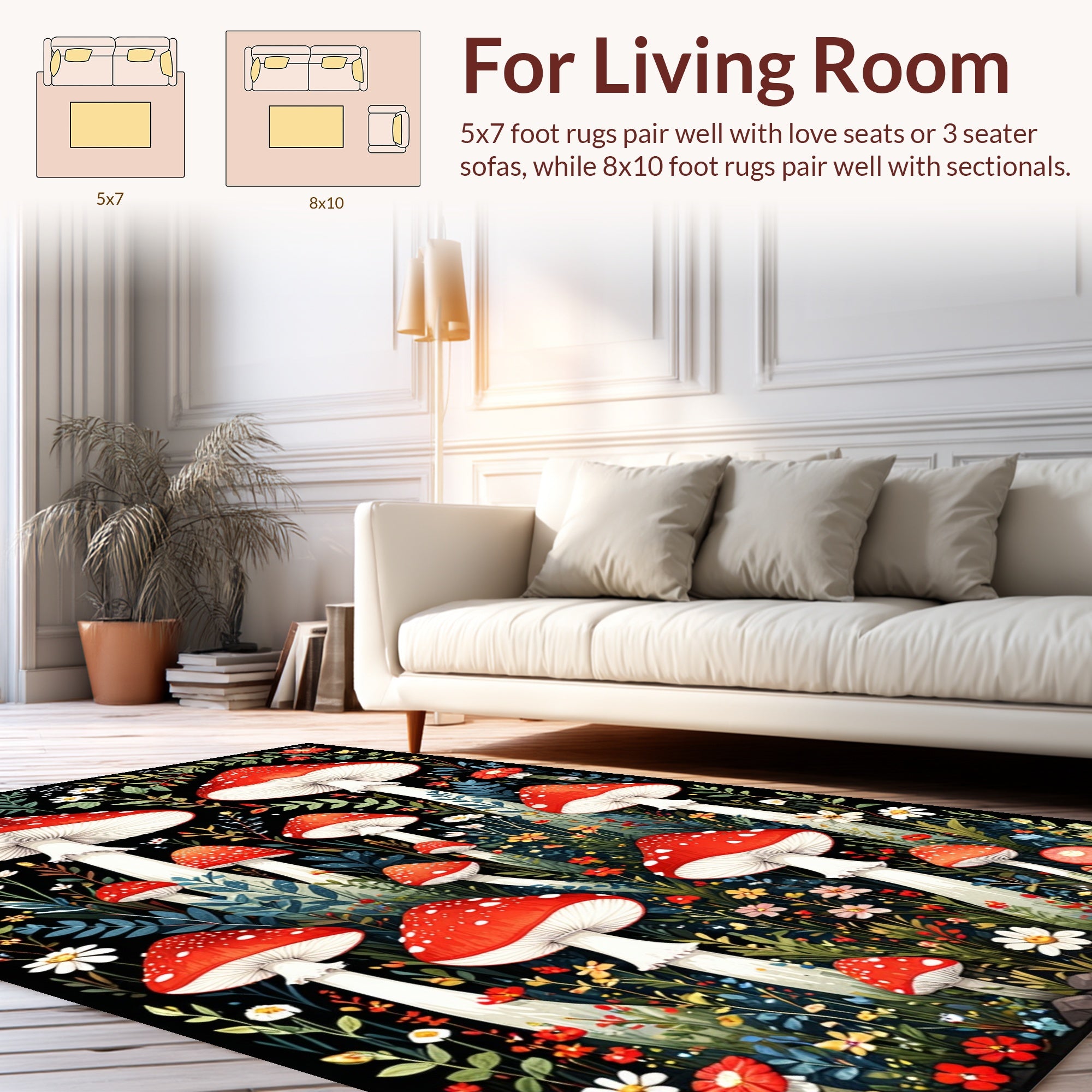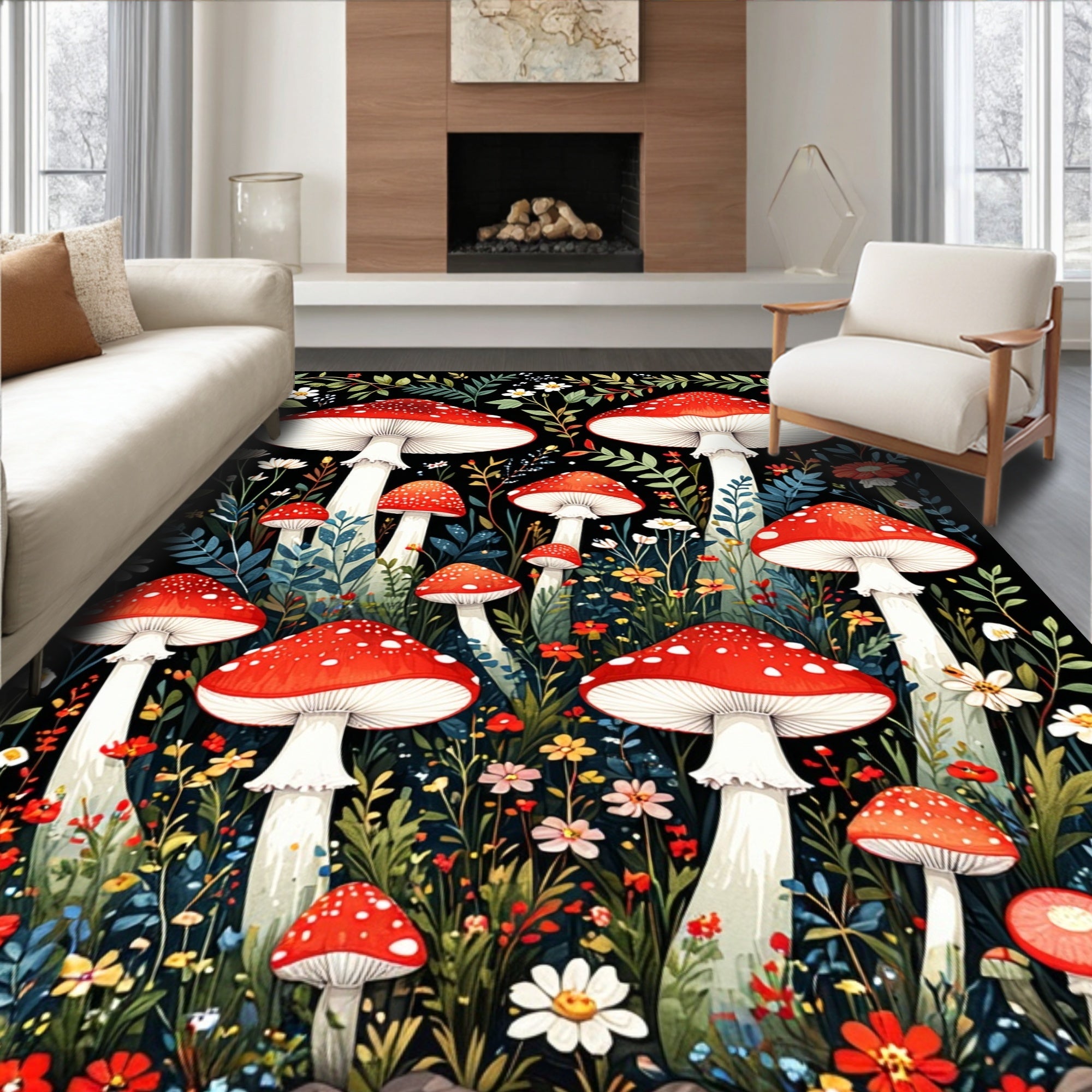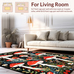 Flatwoven High Traffic Area Rug, Artistic Mushroom Inspired Composition, Non Slip, Stain Resistant, Washable Area Rugs for Living Room, Bedroom (Red) Overview: