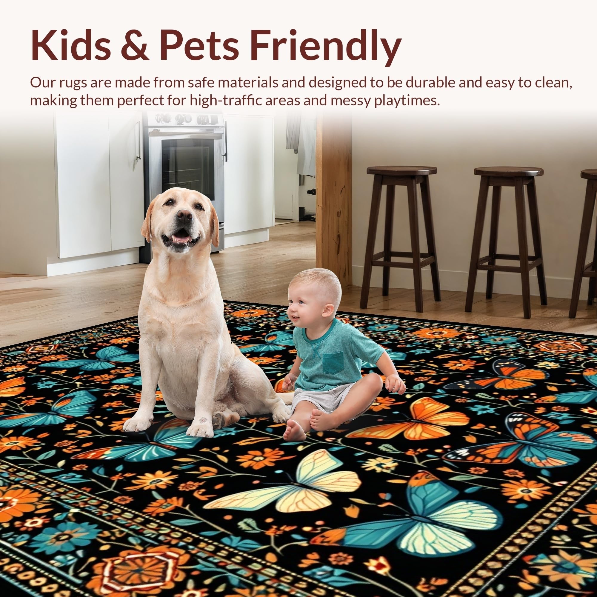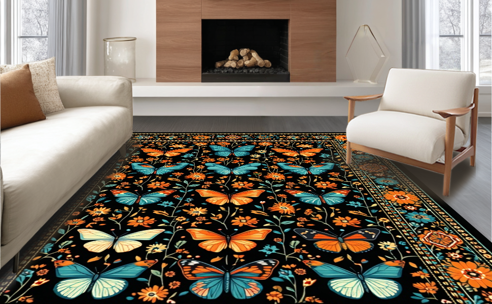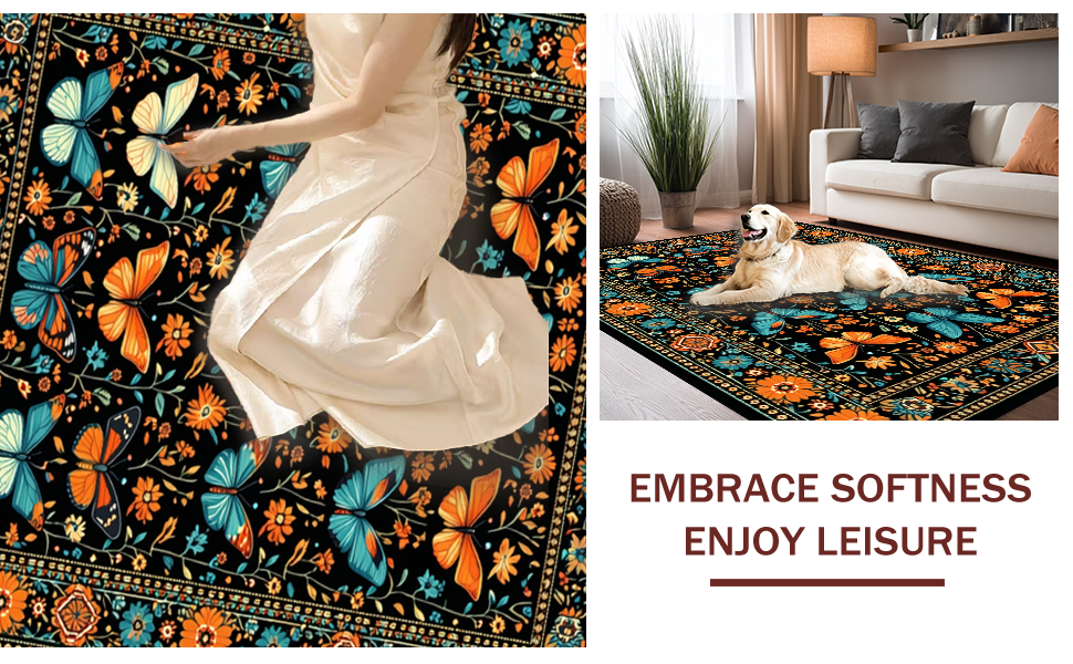 Ultra Soft Area Rug, Non Slip, Stain Resistant, Washable Area Rugs for Living Room, Bedroom, Artistic Nature-Inspired Artwork(Black) Overview: