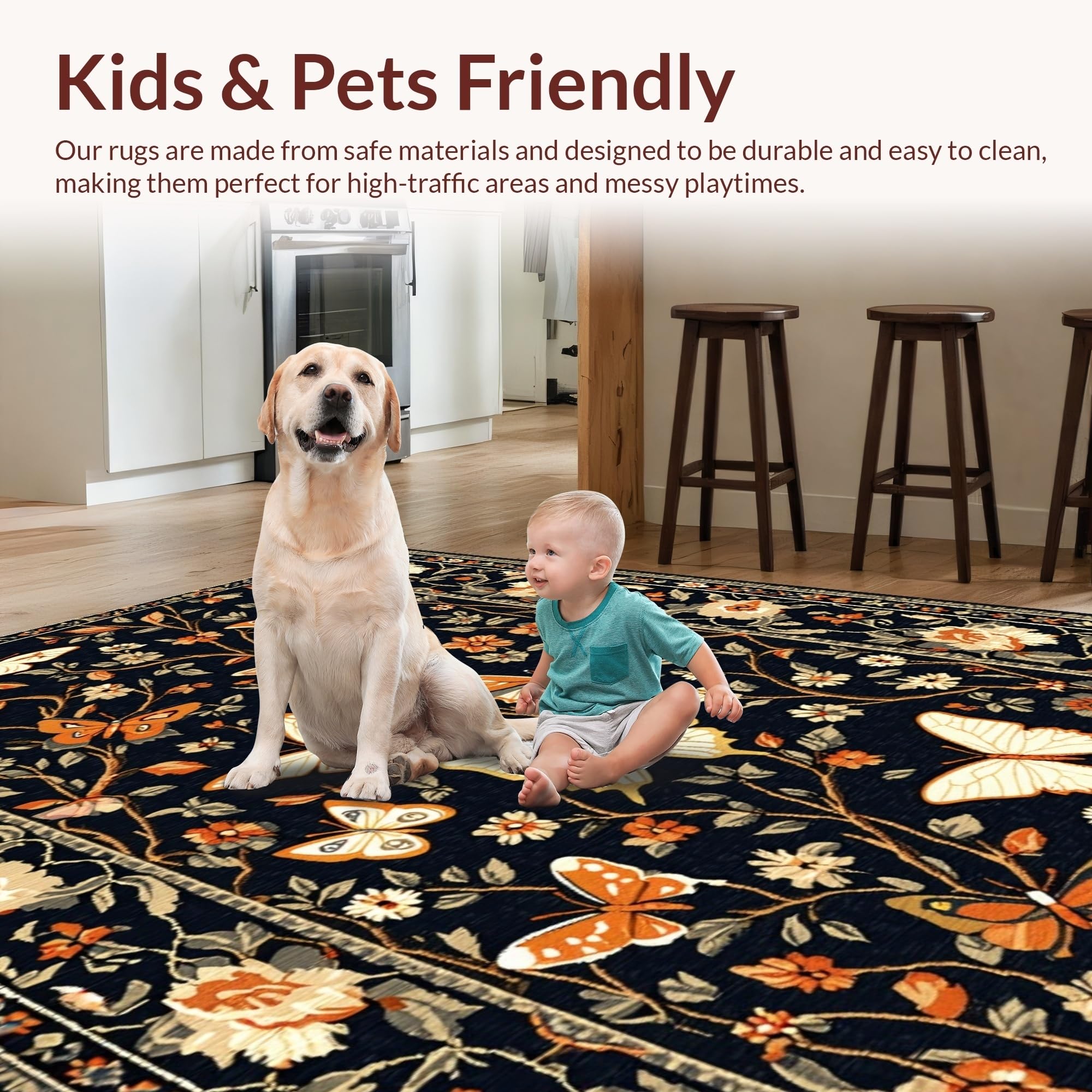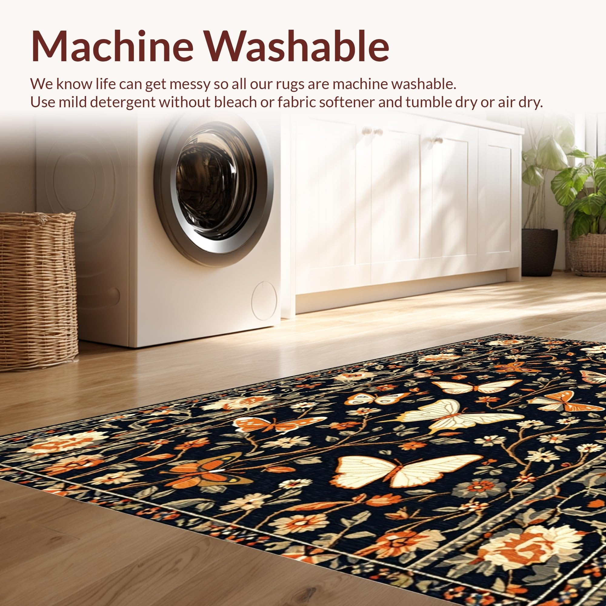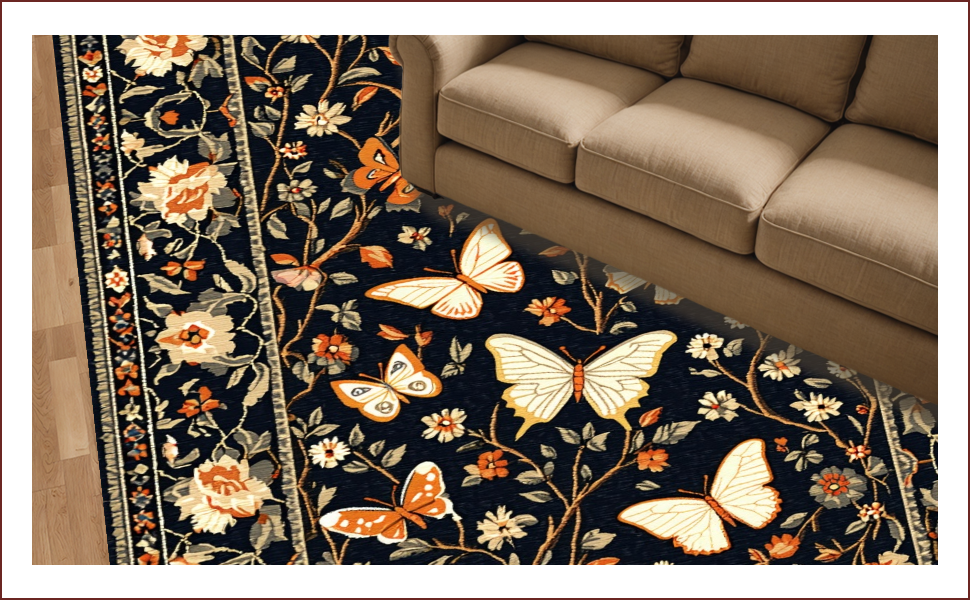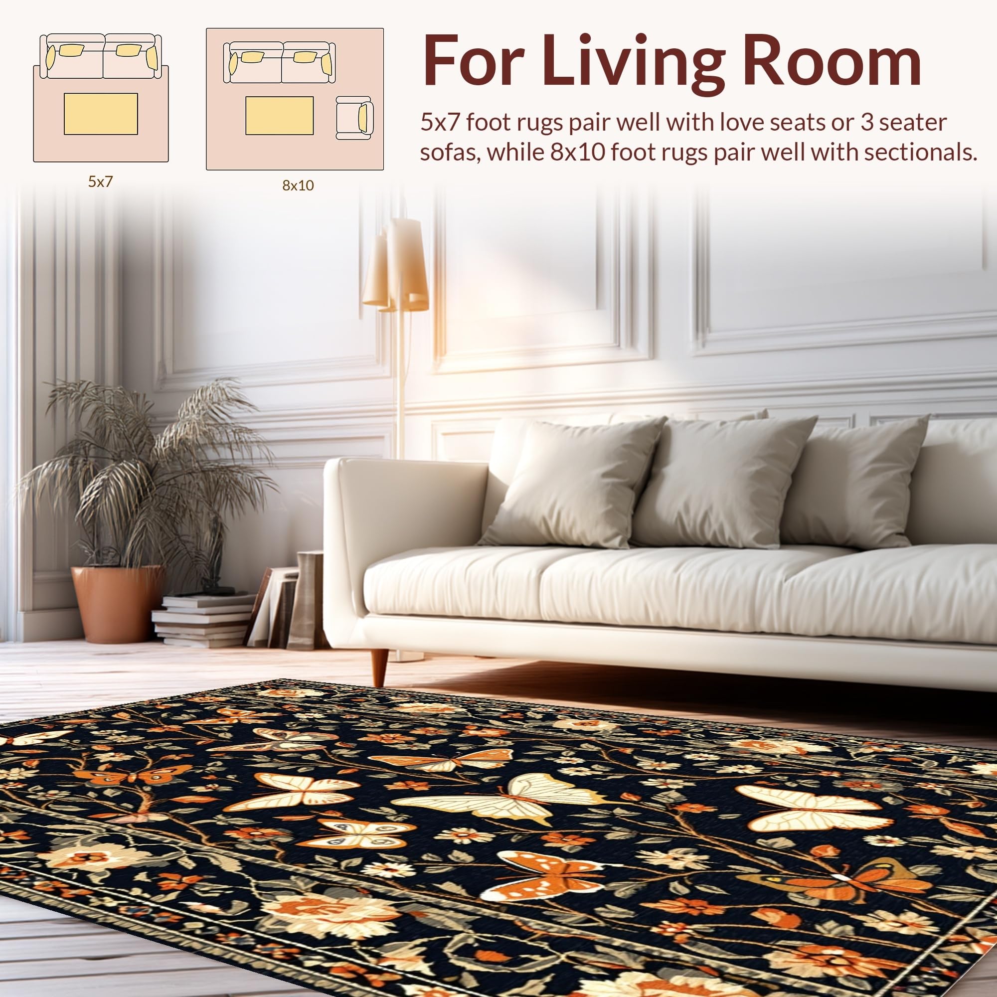 Ultra Soft Area Rug, Non Slip, Stain Resistant, Washable Area Rugs for Living Room, Bedroom, Artistic Nature-Inspired Butterfly Aesthetic(Black) Overview: