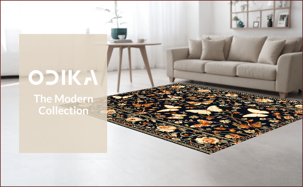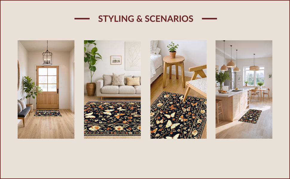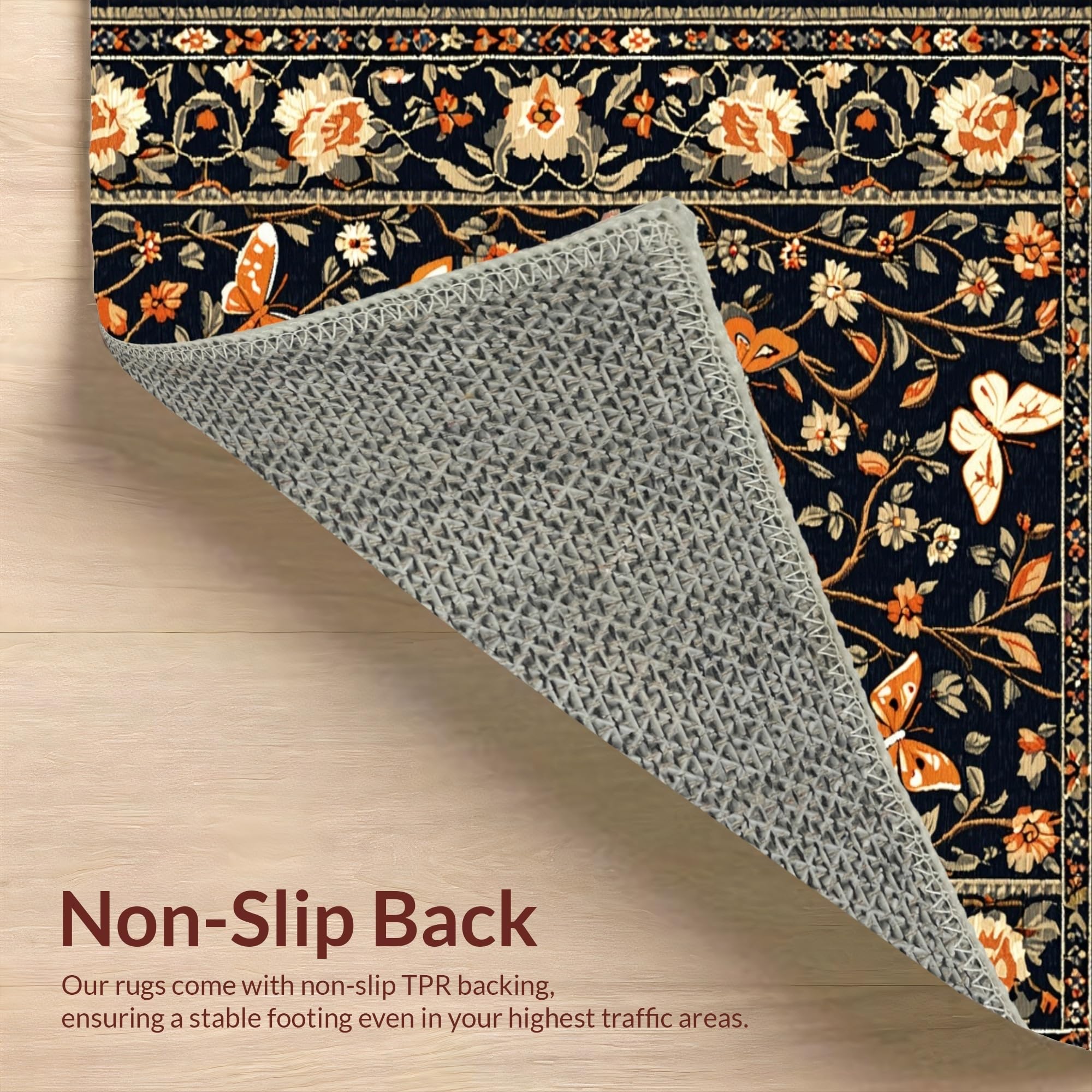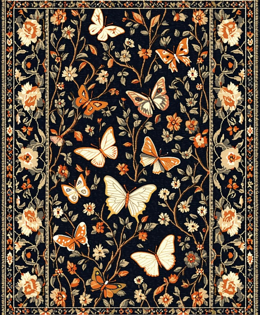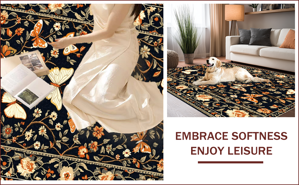 Ultra Soft Area Rug, Non Slip, Stain Resistant, Washable Area Rugs for Living Room, Bedroom, Artistic Nature-Inspired Butterfly Aesthetic(Black) Overview: