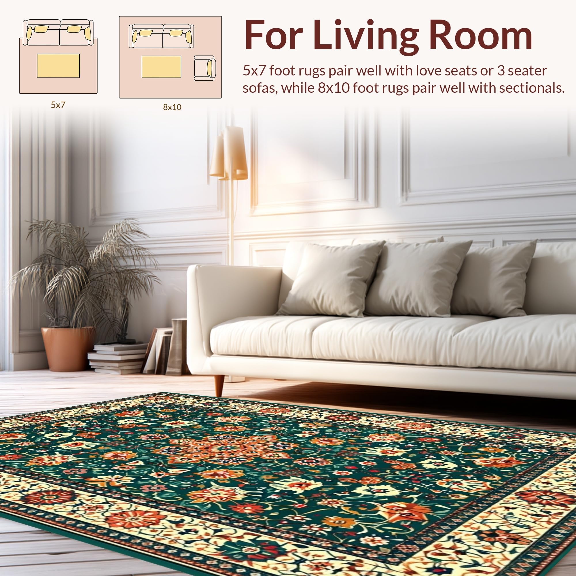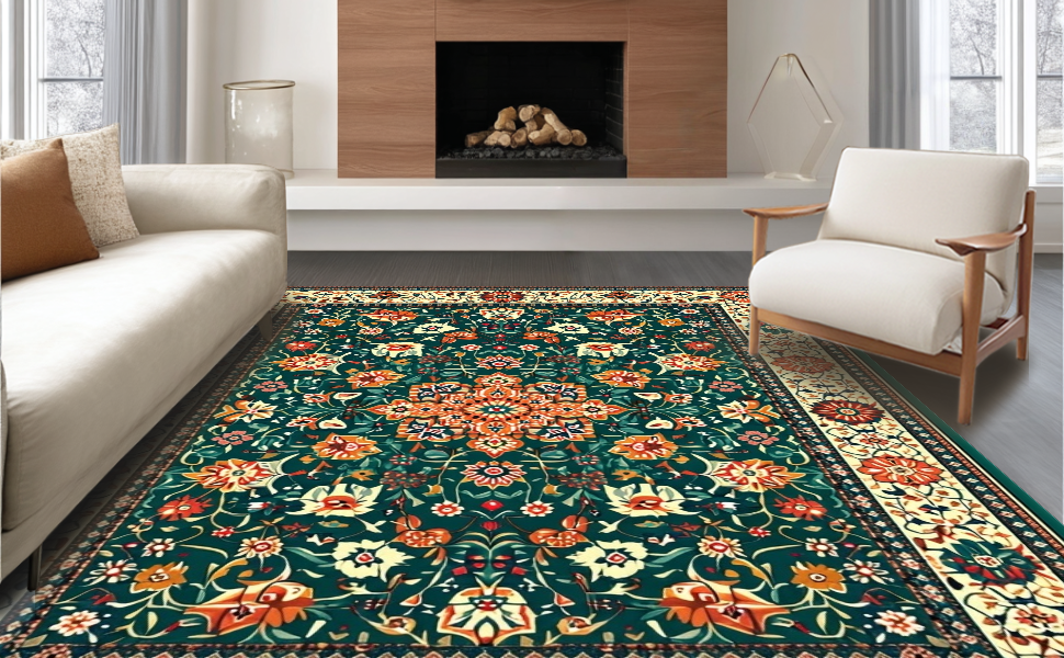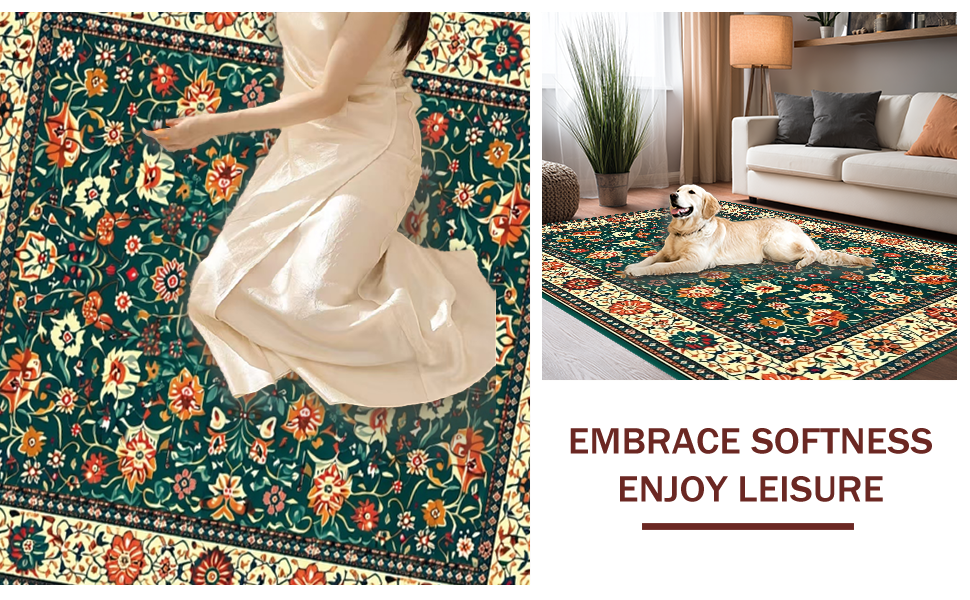Ultra Soft Area Rug, Non Slip, Stain Resistant, Washable Area Rugs for Living Room, Bedroom, Artistic Nature-Inspired Decorative Piece(Green) Overview: