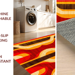 Ultra Soft Area Rug, Non Slip, Stain Resistant, Washable Area Rugs for Living Room, Bedroom, Artistic Retro Curved Motif(Red) Overview: