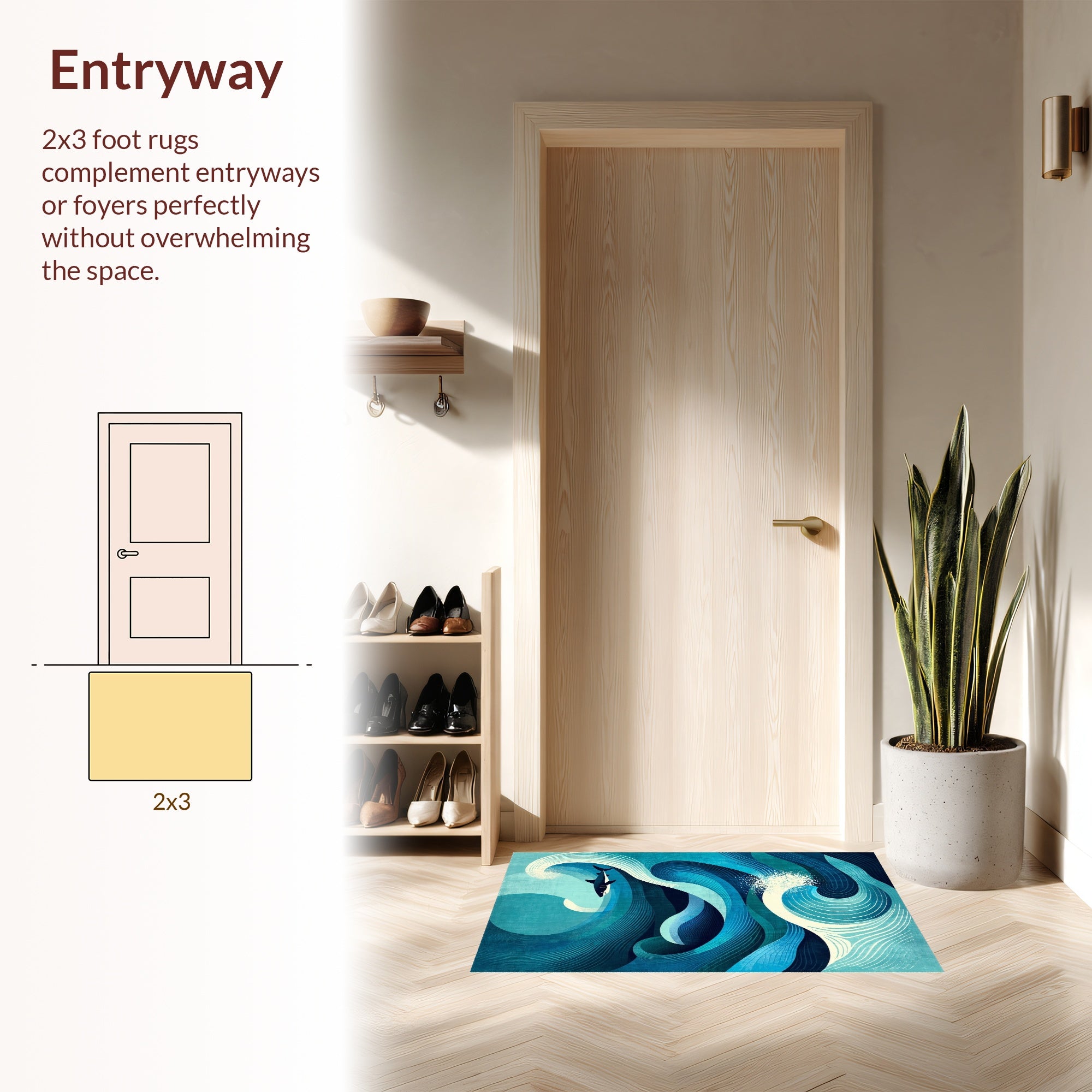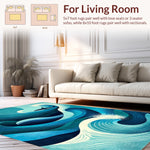 Ultra Soft Area Rug, Non Slip, Stain Resistant, Washable Area Rugs for Living Room, Bedroom, Artistic Shark Themed Carpet with Geometric Ocean Elements and Waves(Blue) Overview: