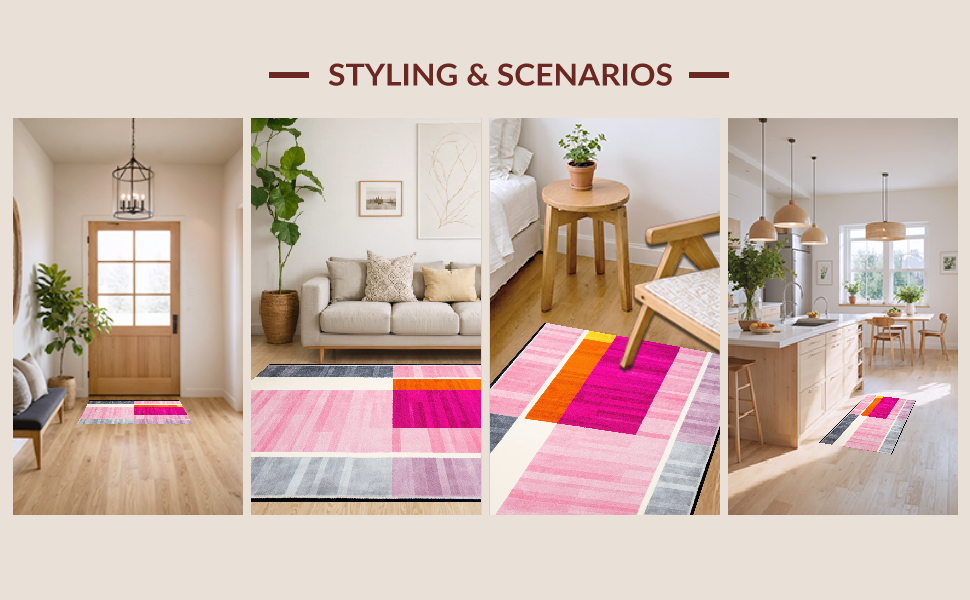 Ultra Soft Area Rug, Non Slip, Stain Resistant, Washable Area Rugs for Living Room, Bedroom, Artistic Soft Color Blocking(Pink) Overview: