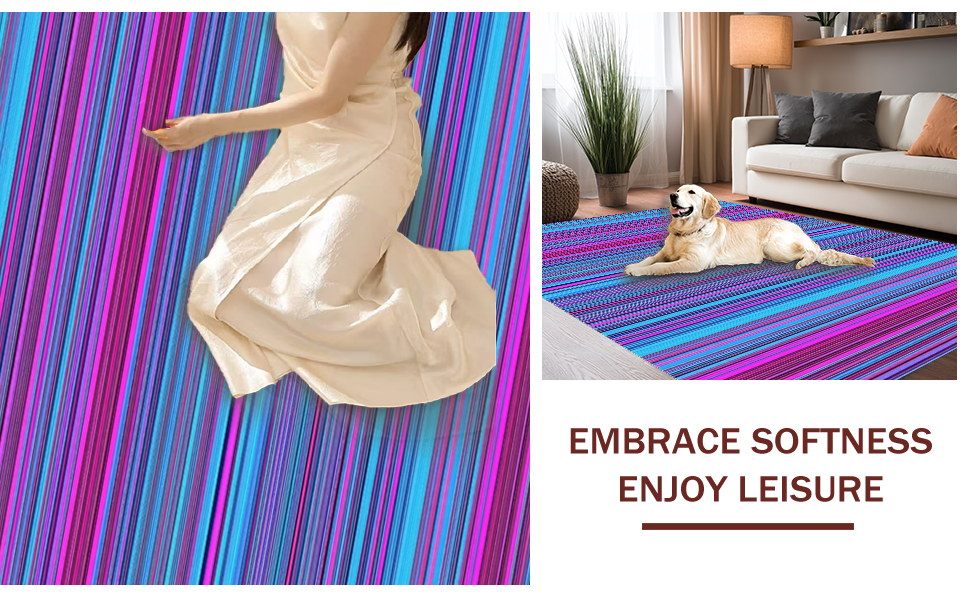 Ultra Soft Area Rug, Non Slip, Stain Resistant, Washable Area Rugs for Living Room, Bedroom, Artistic Striped Amorphous Design(Blue) Overview: