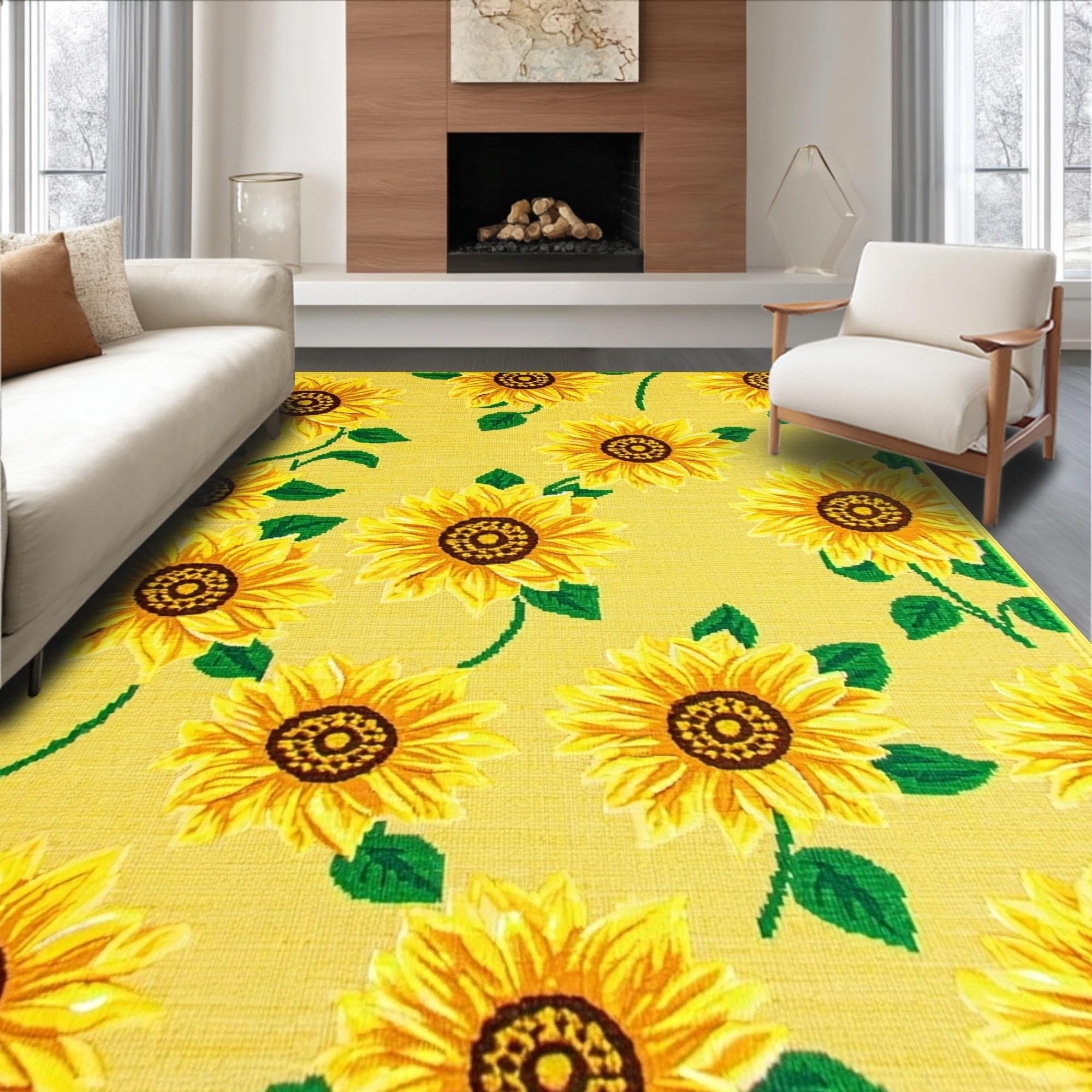 Ultra Soft Area Rug, Non Slip, Stain Resistant, Washable Area Rugs for Living Room, Bedroom, Artistic Sunflower Inspired Decor(Yellow) Overview: