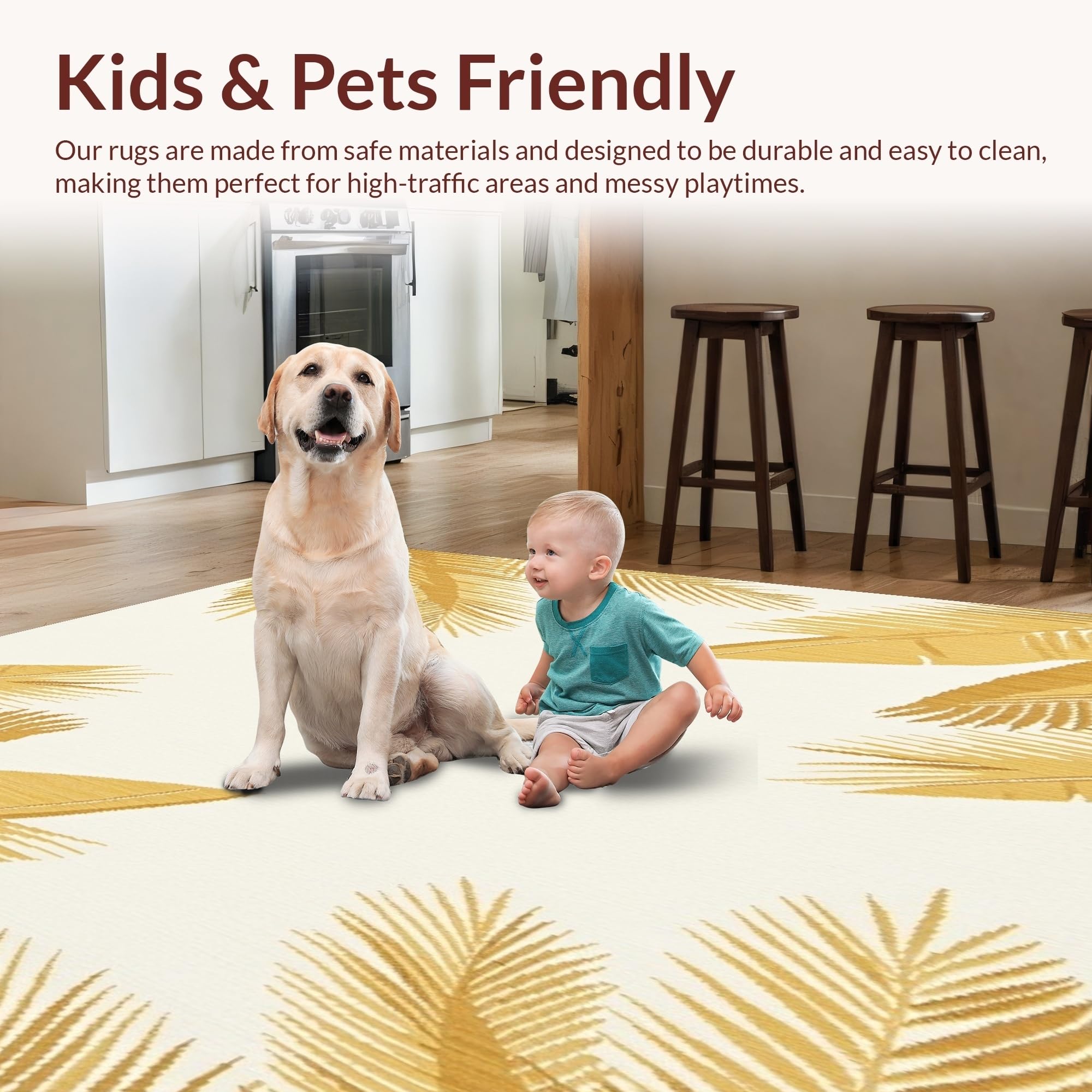 Ultra Soft Area Rug, Non Slip, Stain Resistant, Washable Area Rugs for Living Room, Bedroom, Artistic Tropical Leaf Beige with a Unique Visual Appeal(Beige) Overview:
