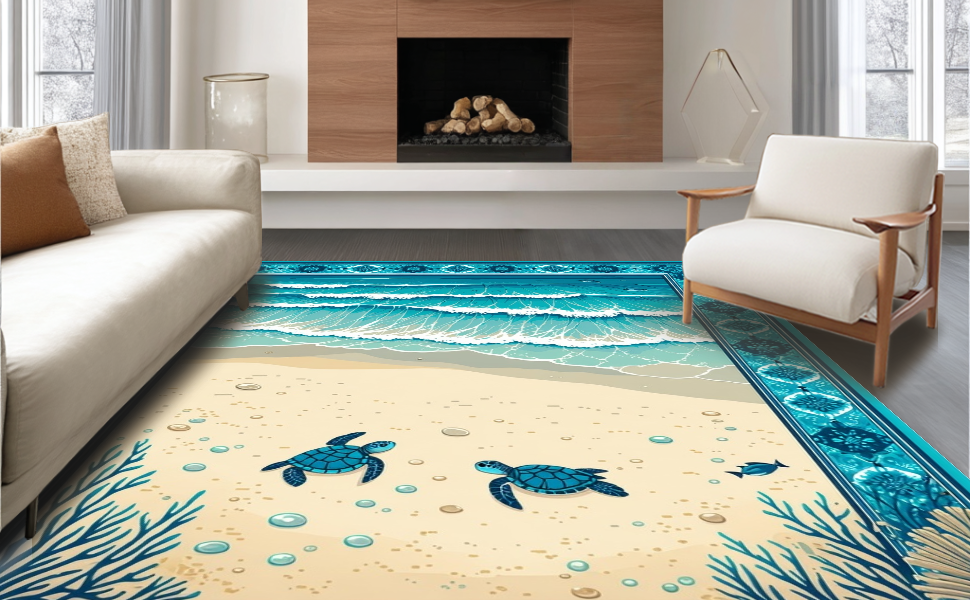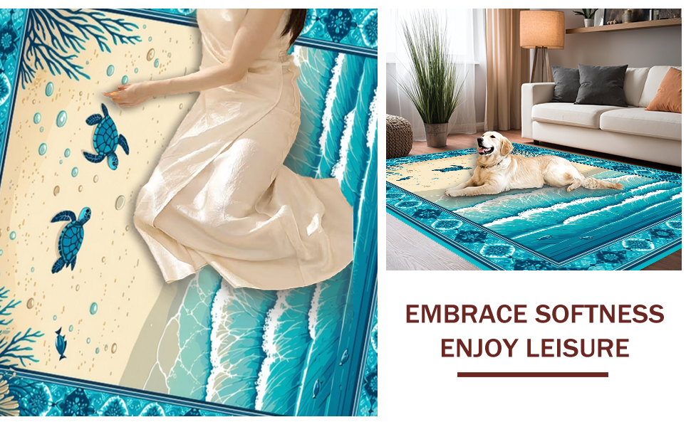Ultra Soft Area Rug, Non Slip, Stain Resistant, Washable Area Rugs for Living Room, Bedroom, Artistic Underwater Scene Decor(Blue) Overview: