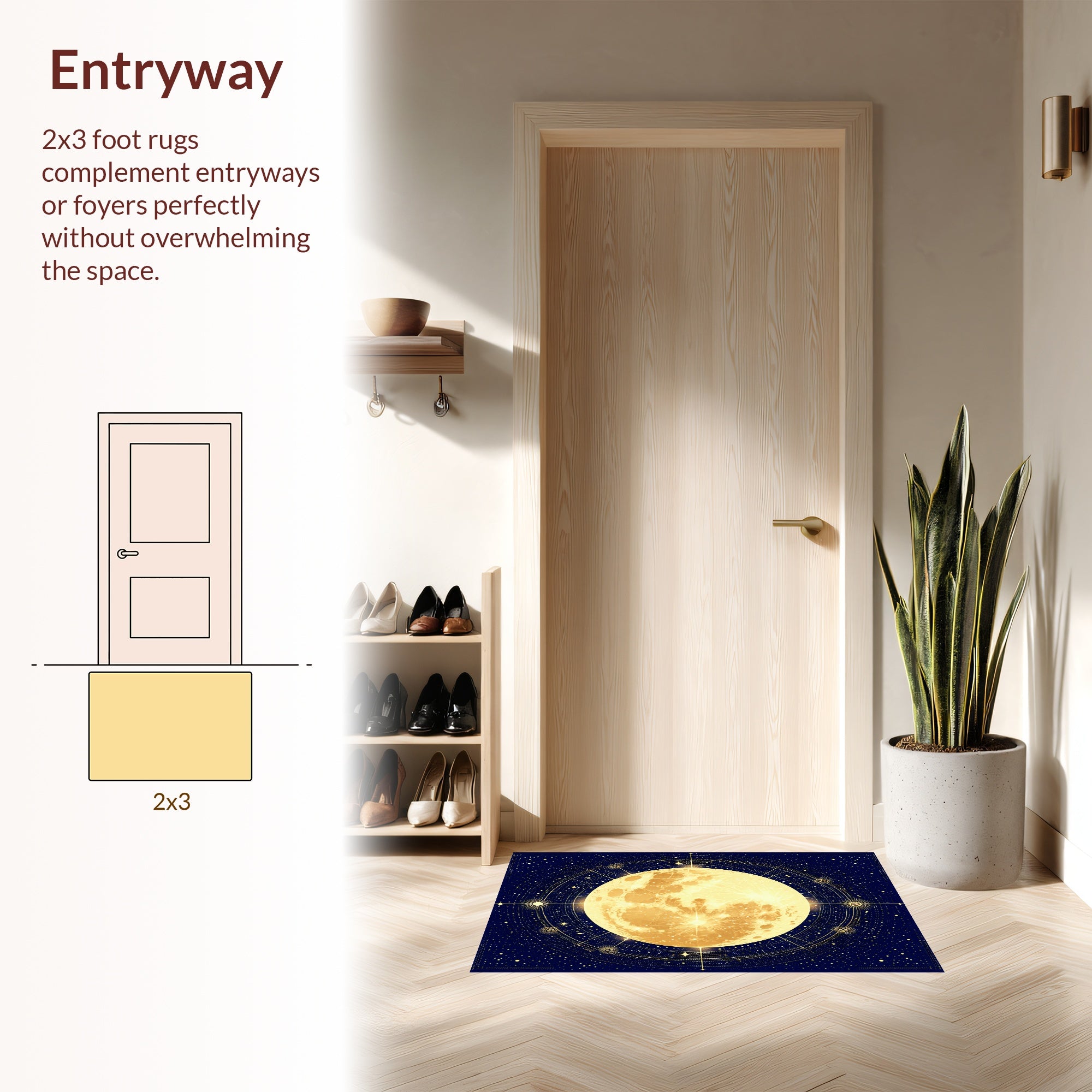 Flatwoven High Traffic Area Rug, Astrology Sun and Moon, Non Slip, Stain Resistant, Washable Area Rugs for Living Room, Bedroom (Gold) Overview: