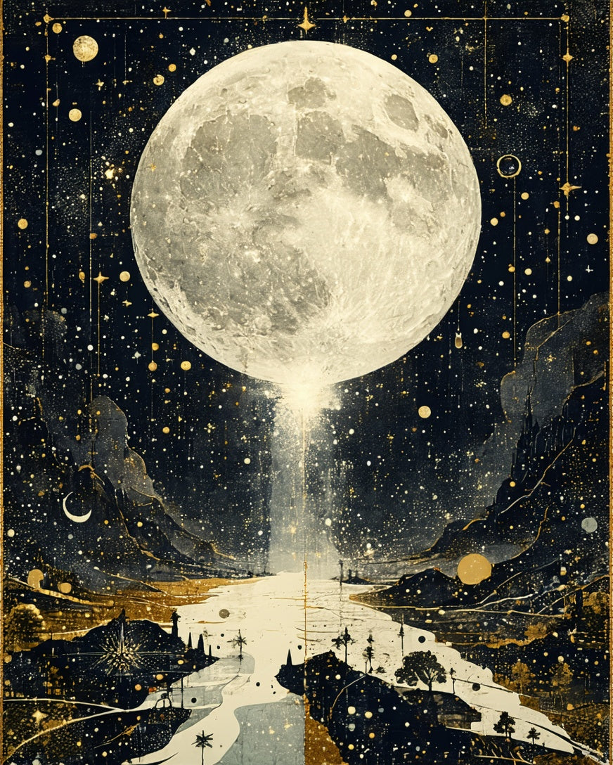 Astrology Tarot Pathway Lunar Eclipse Surreal Starry Night Motif(Gray)