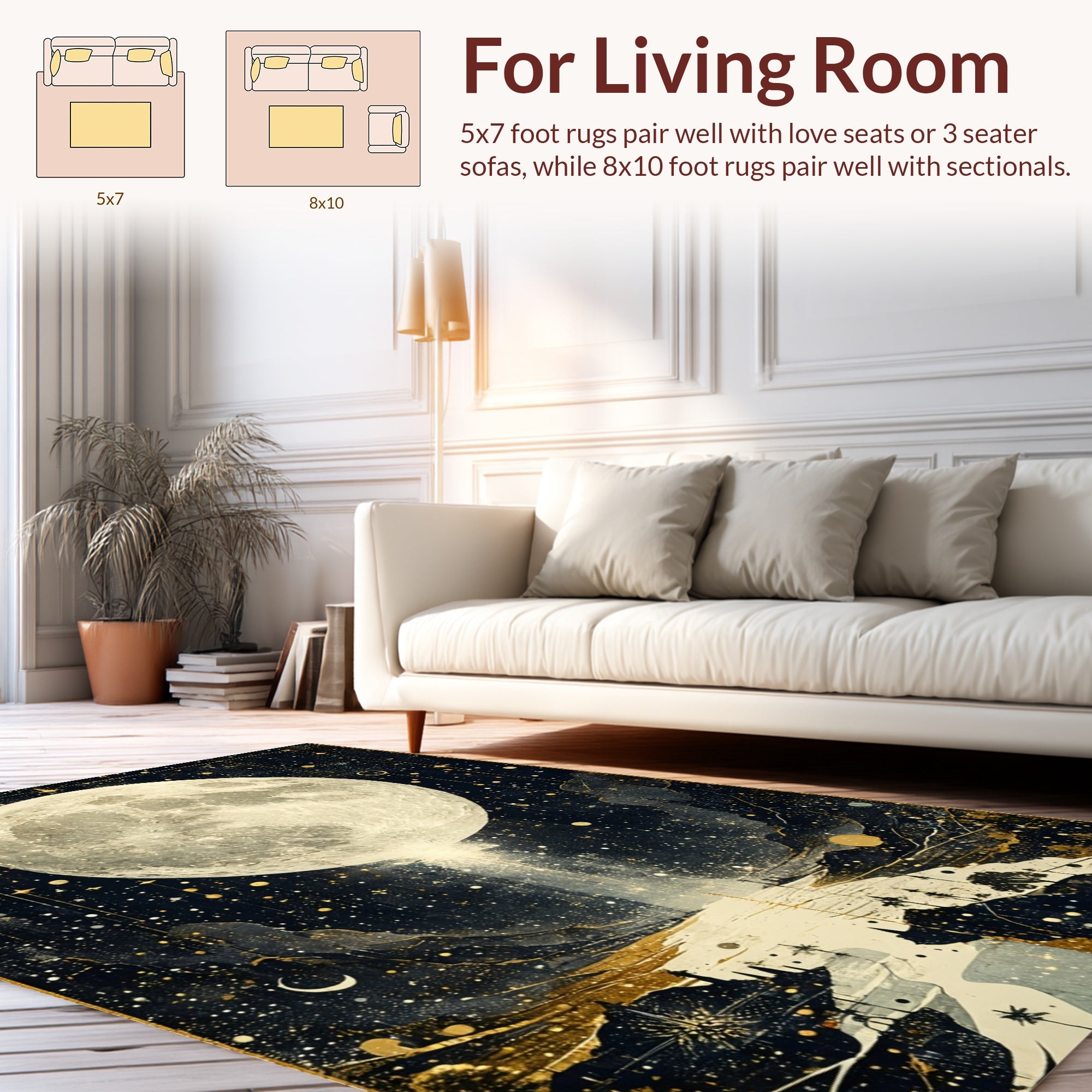 Flatwoven High Traffic Area Rug, Astrology Tarot Pathway Lunar Eclipse Surreal Starry Night Motif, Non Slip, Stain Resistant, Washable Area Rugs for Living Room, Bedroom (Gray) Overview:
