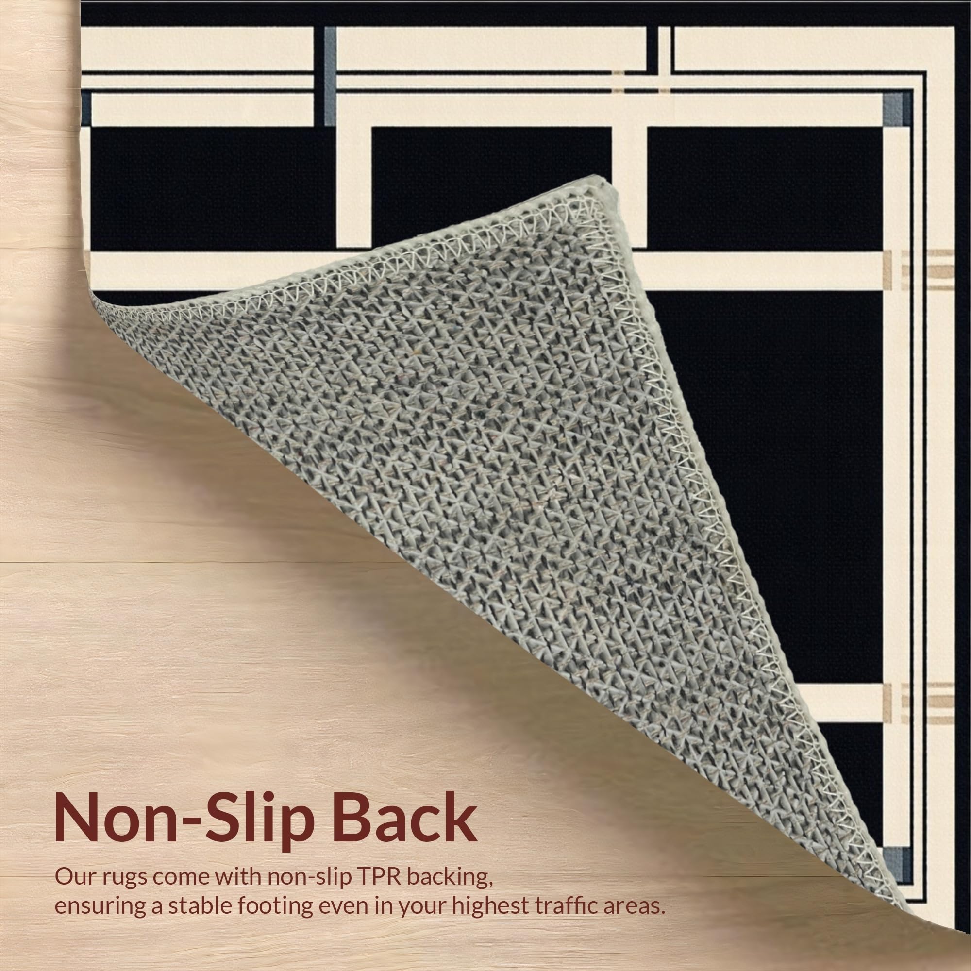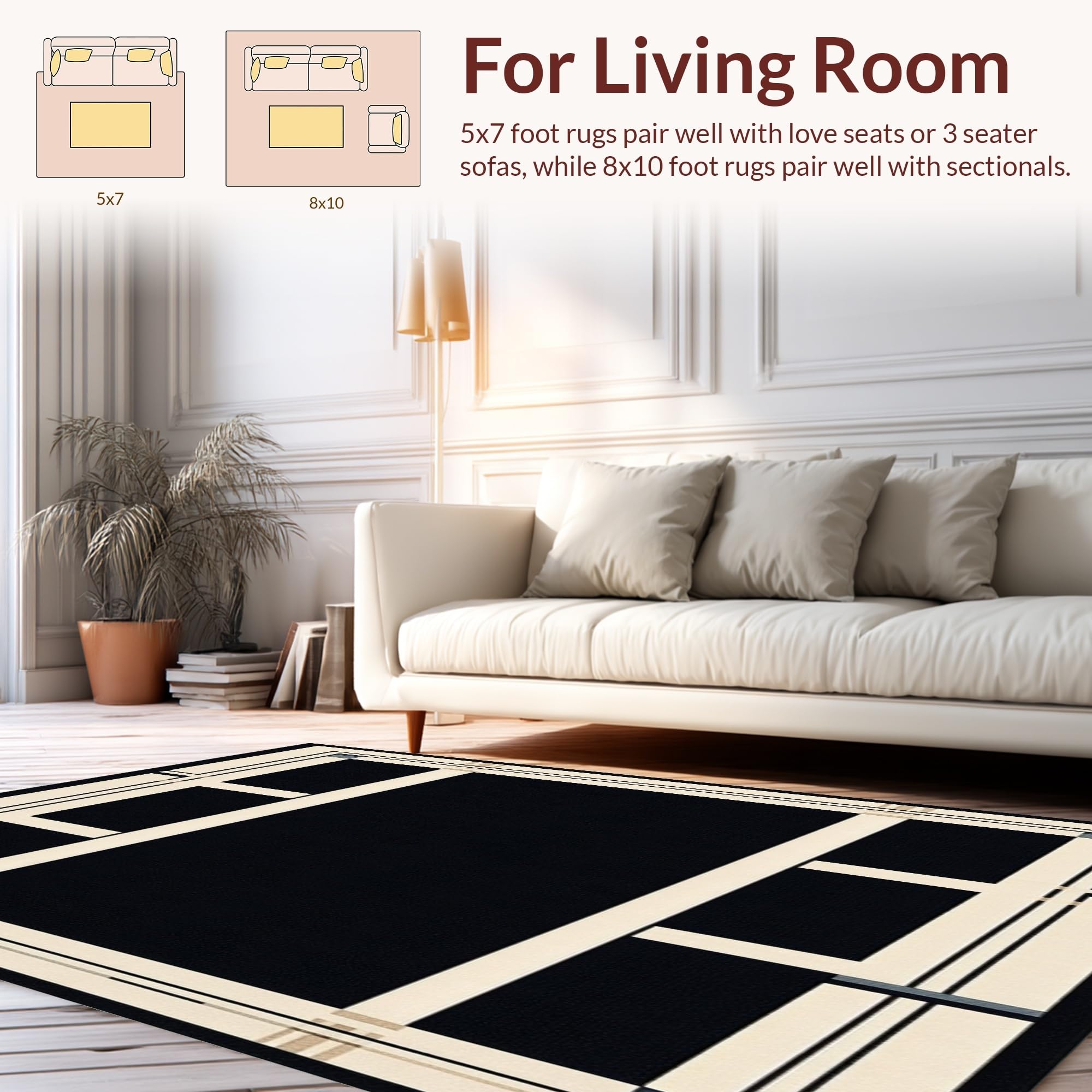 Ultra Soft Area Rug, Non Slip, Stain Resistant, Washable Area Rugs for Living Room, Bedroom, Athens Echoes Geometric Bordered Area Charcoal And Beige Tones(Black) Overview: