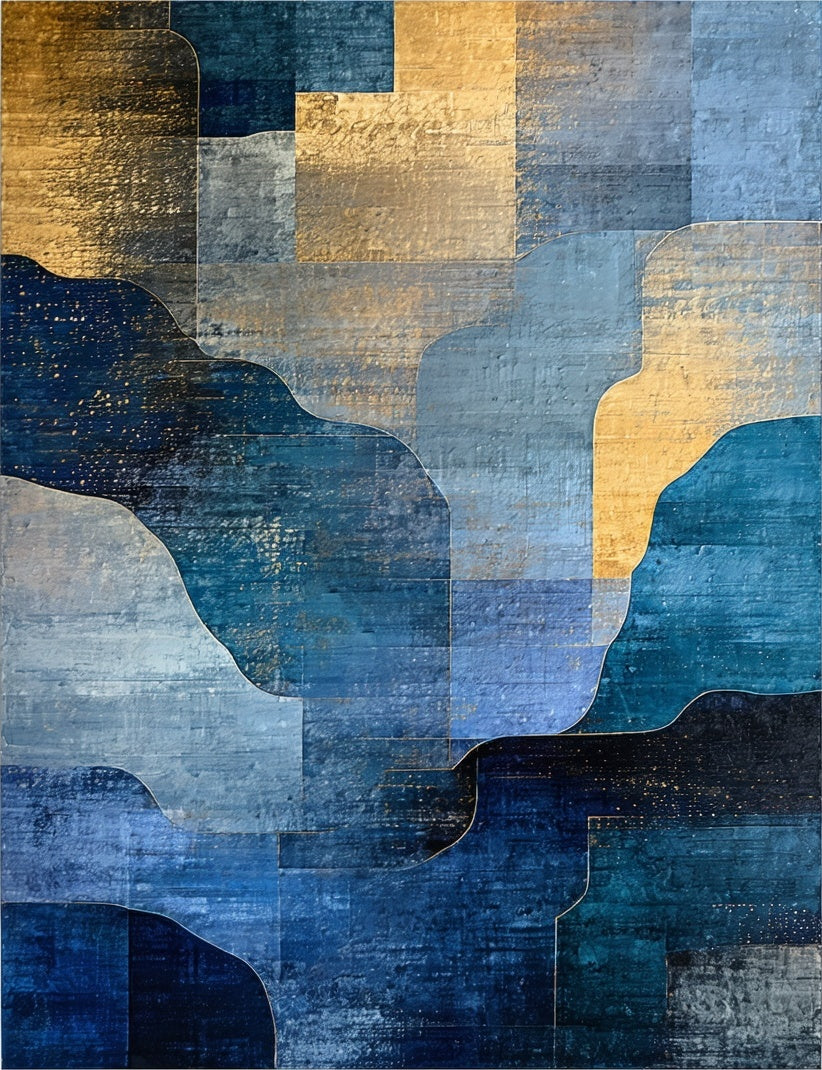 Flow with Abstract Colorfields and Geometric Blue Gold Accents(Blue)